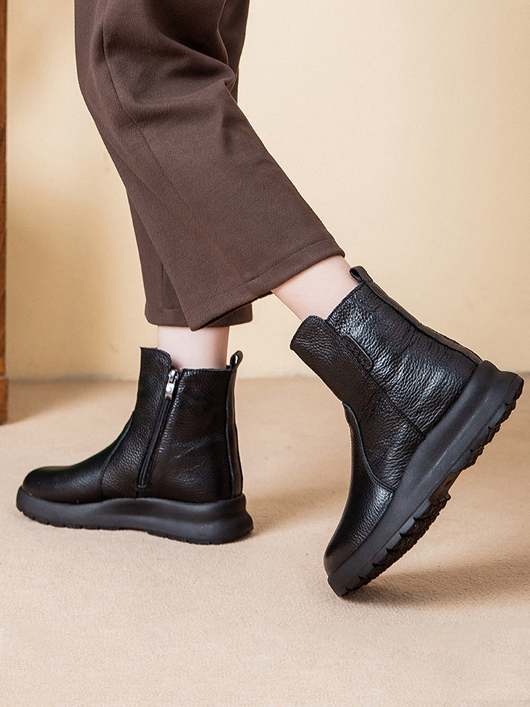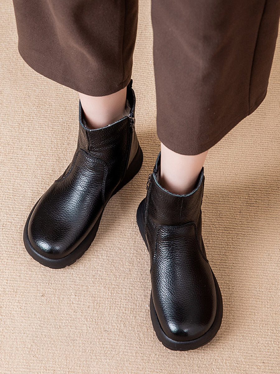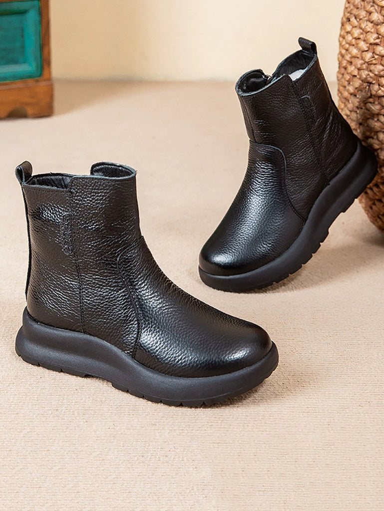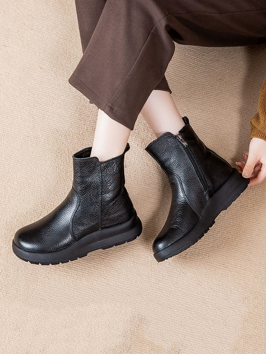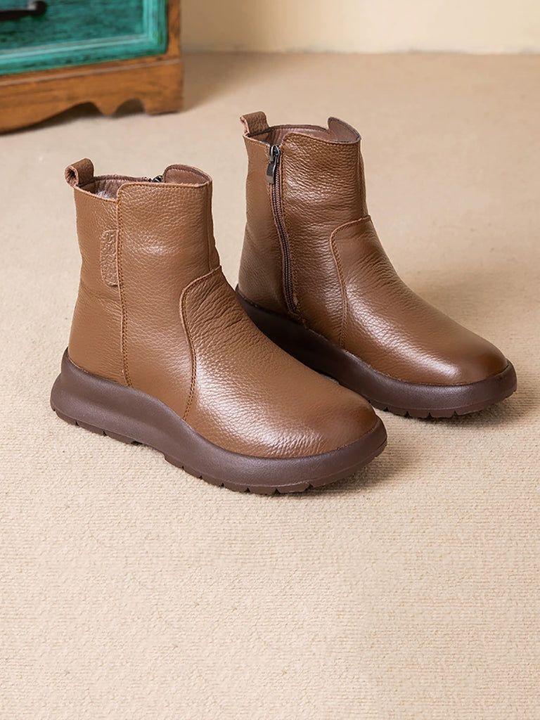 女士冬季真皮羊毛內襯靴