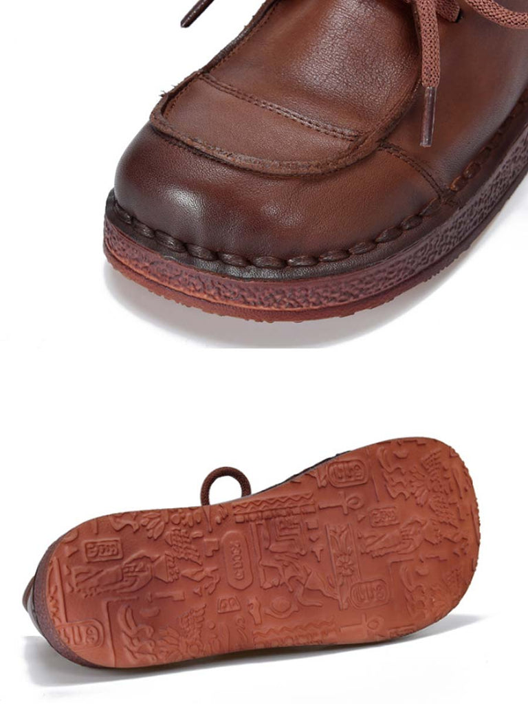 女士秋季復古軟皮中跟鞋
