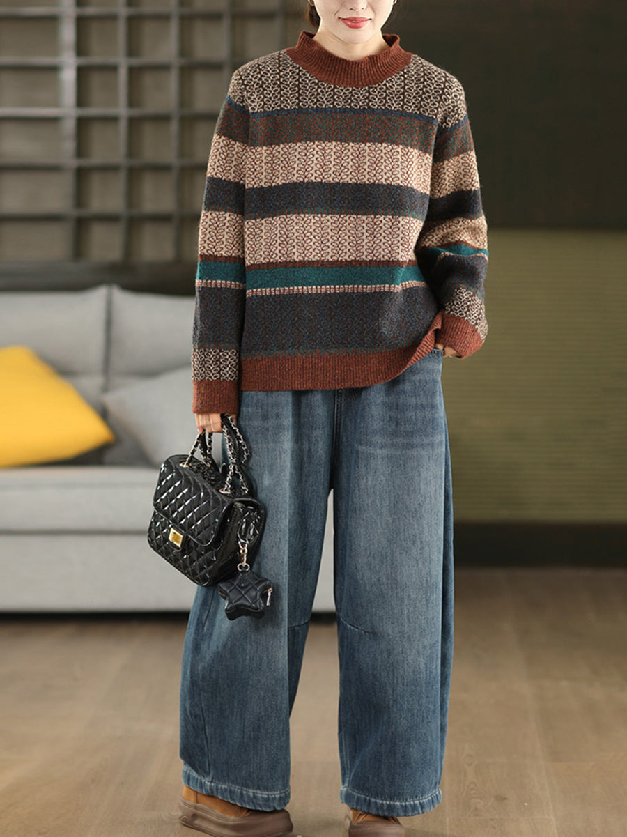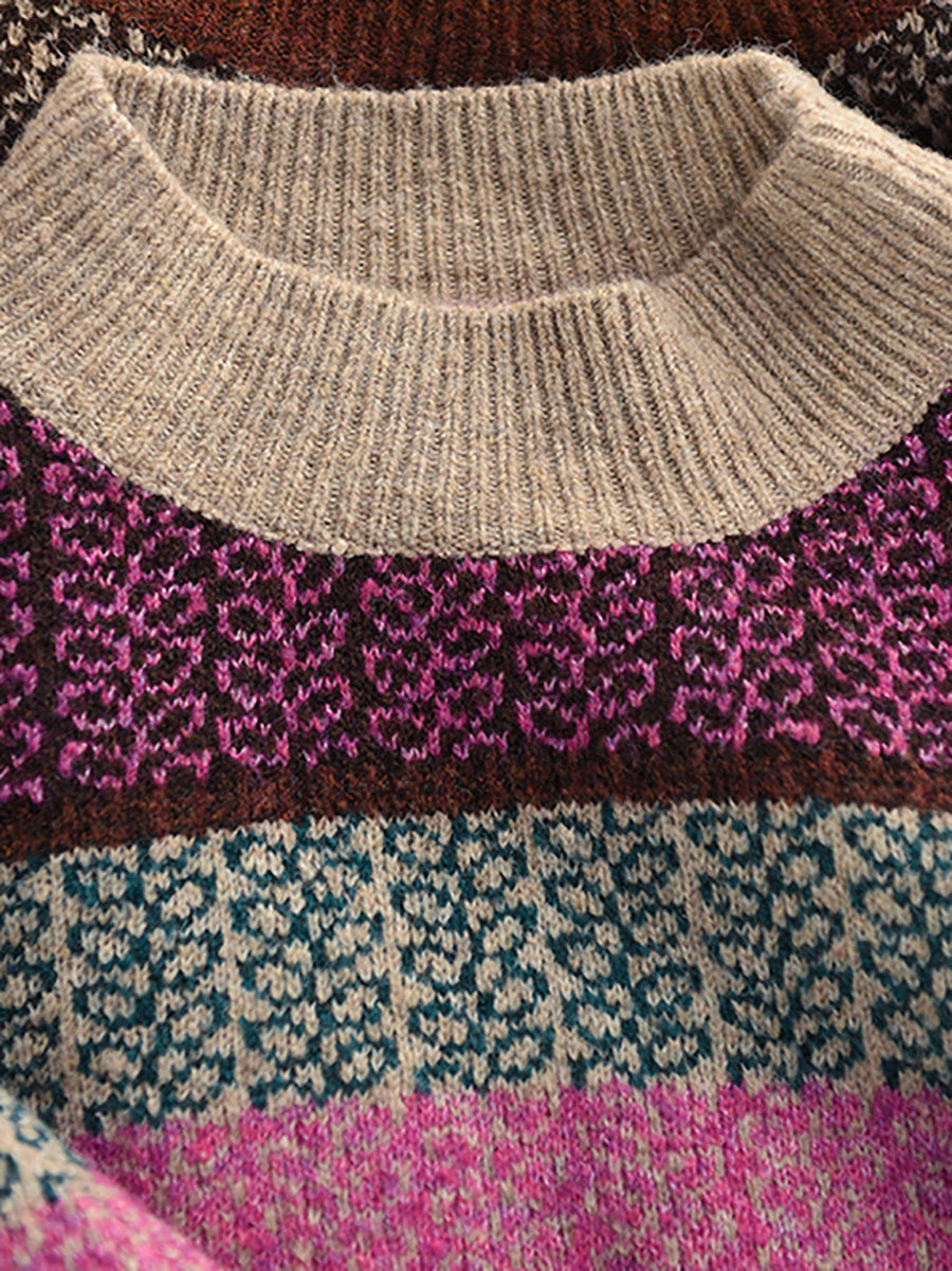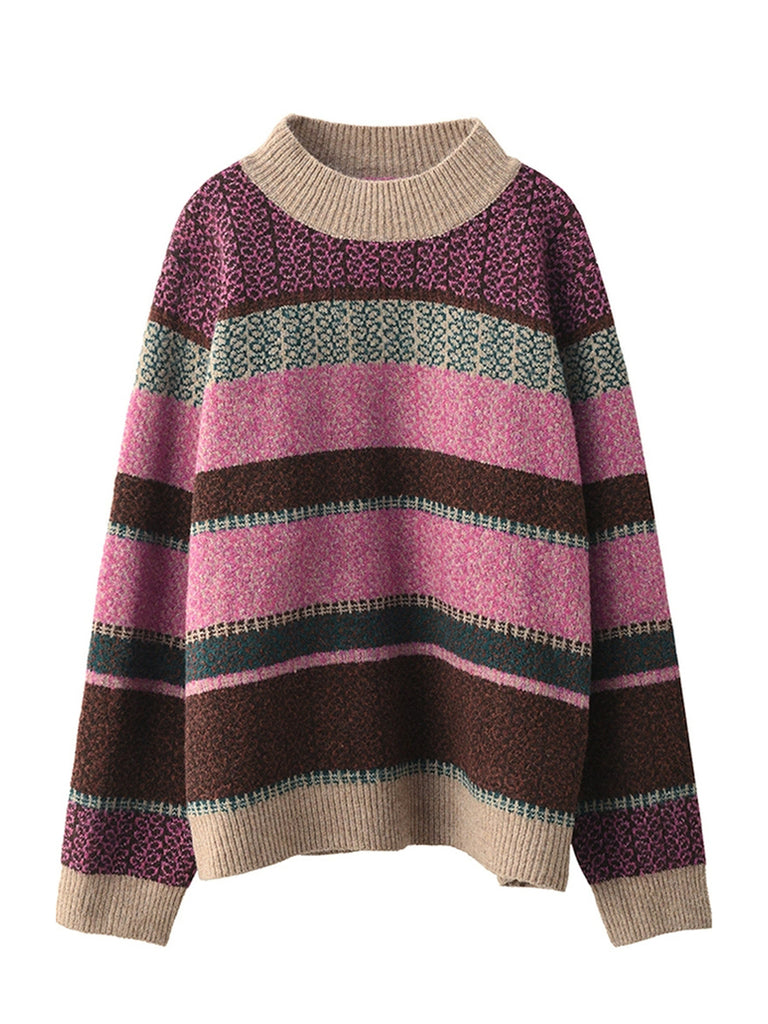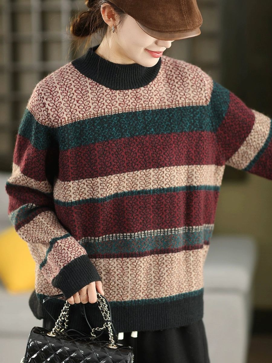 這款毛衣採用55%腈綸和45%棉的優質混紡面料製成,在換季時節提供最佳的保暖性和透氣性。半高領設計展現經典優雅,而全長常規袖則帶來百搭的穿搭選擇。藝術感十足的條紋圖案,使其成為秋冬季衣櫥中兼具舒適性和獨特視覺效果的理想疊穿單品。