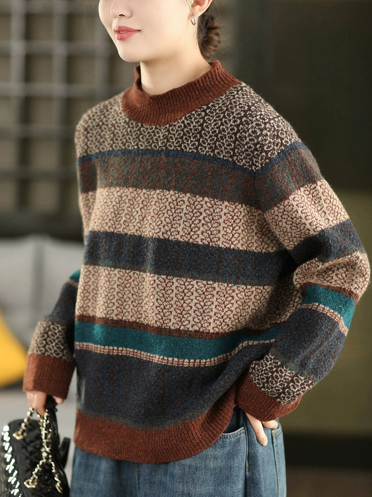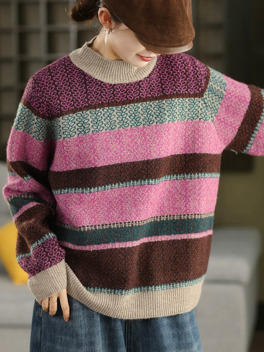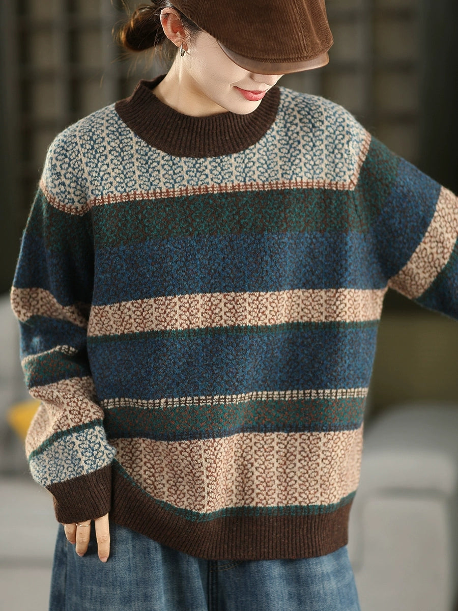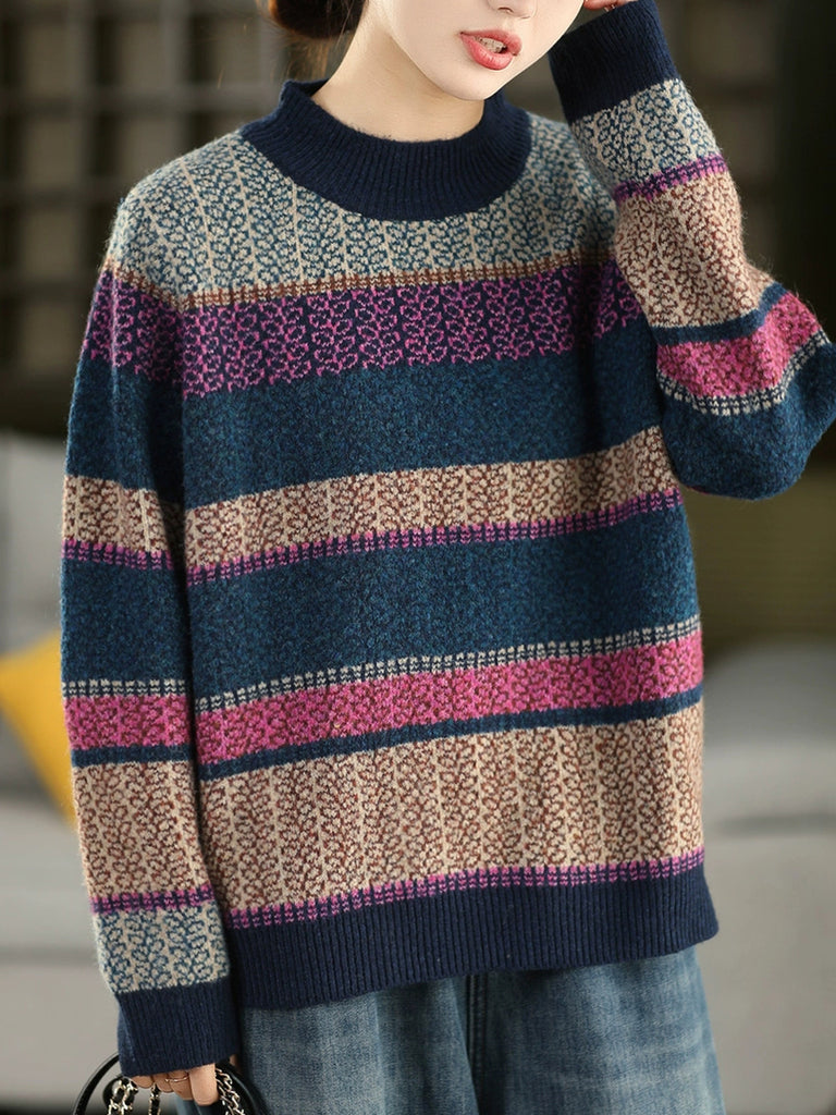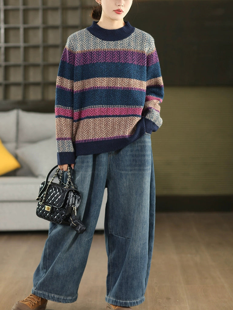 這款毛衣採用55%腈綸和45%棉的優質混紡面料製成,在換季時節提供最佳的保暖性和透氣性。半高領設計展現經典優雅,而全長常規袖則帶來百搭的穿搭選擇。藝術感十足的條紋圖案,使其成為秋冬季衣櫥中兼具舒適性和獨特視覺效果的理想疊穿單品。