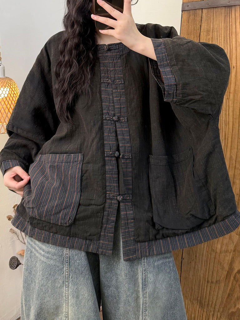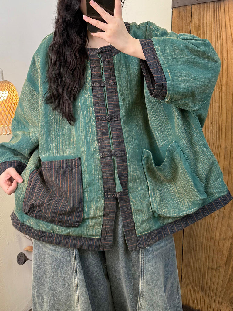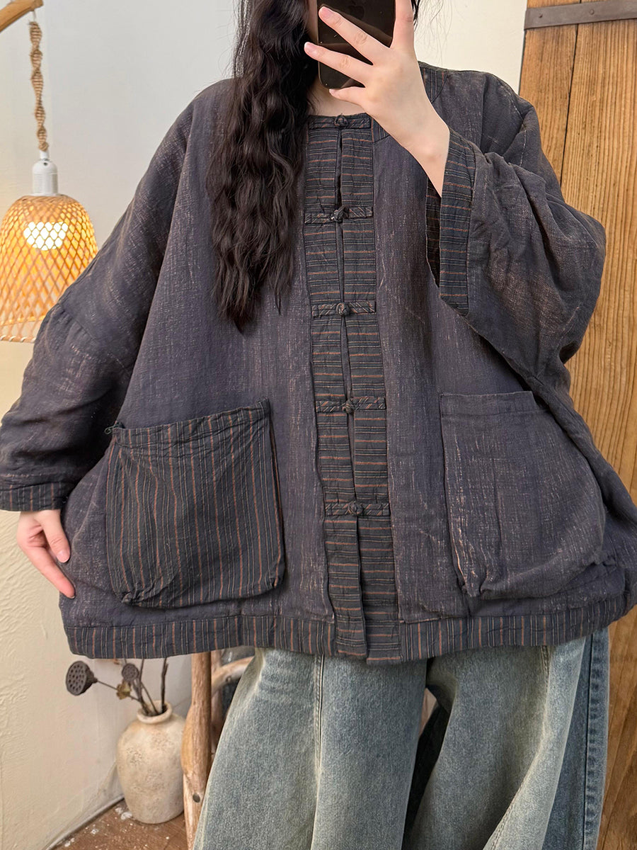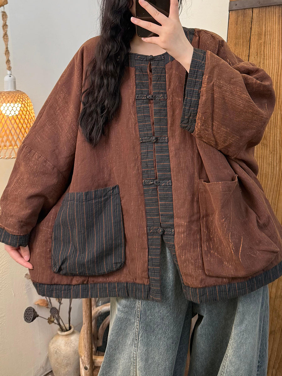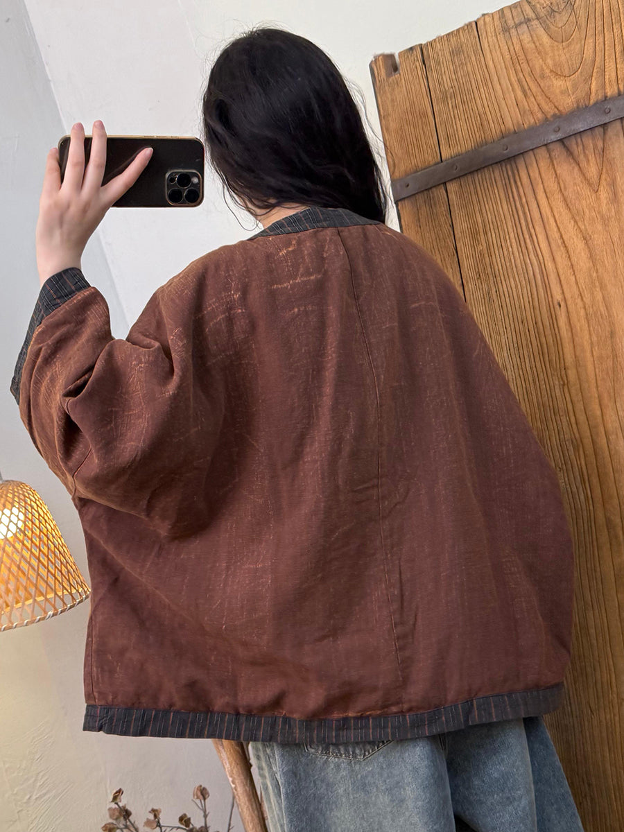 女士復古冬季條紋拼接圓領羽絨服