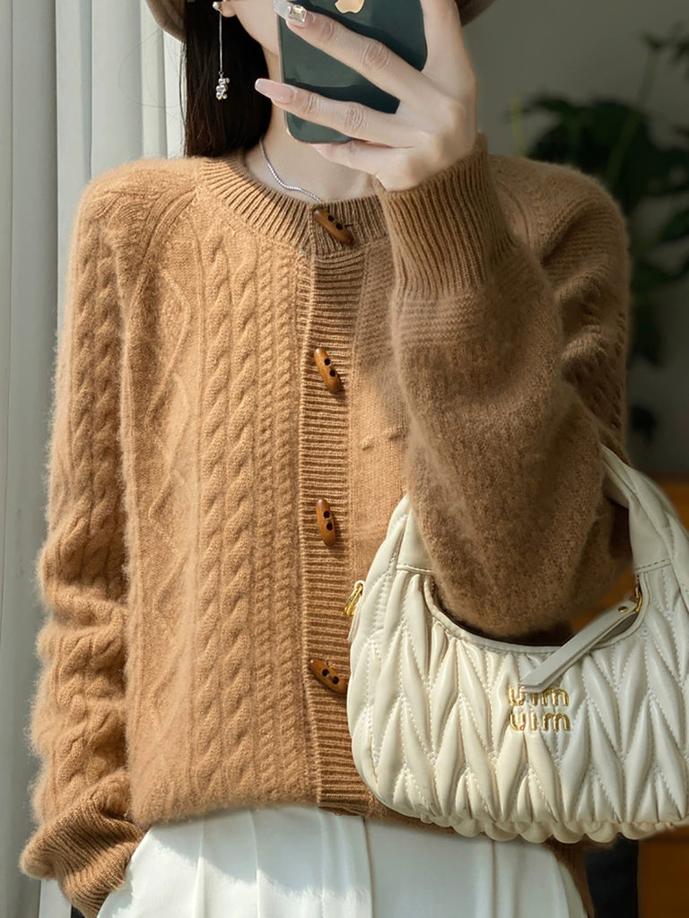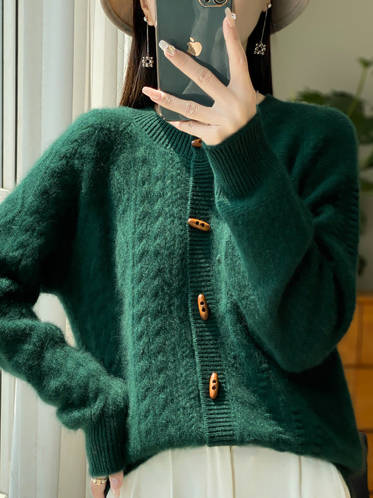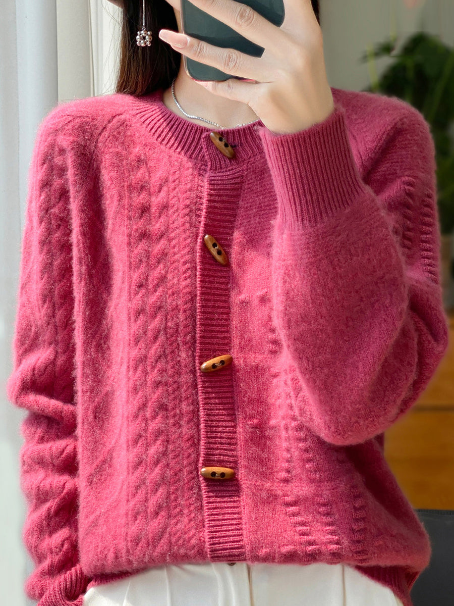 女士冬季純色圓領羊毛衫