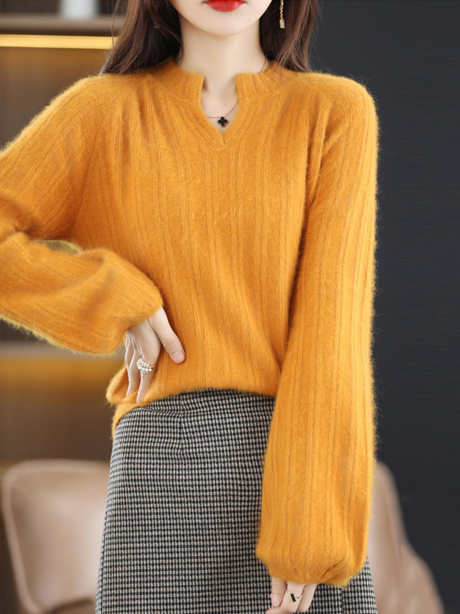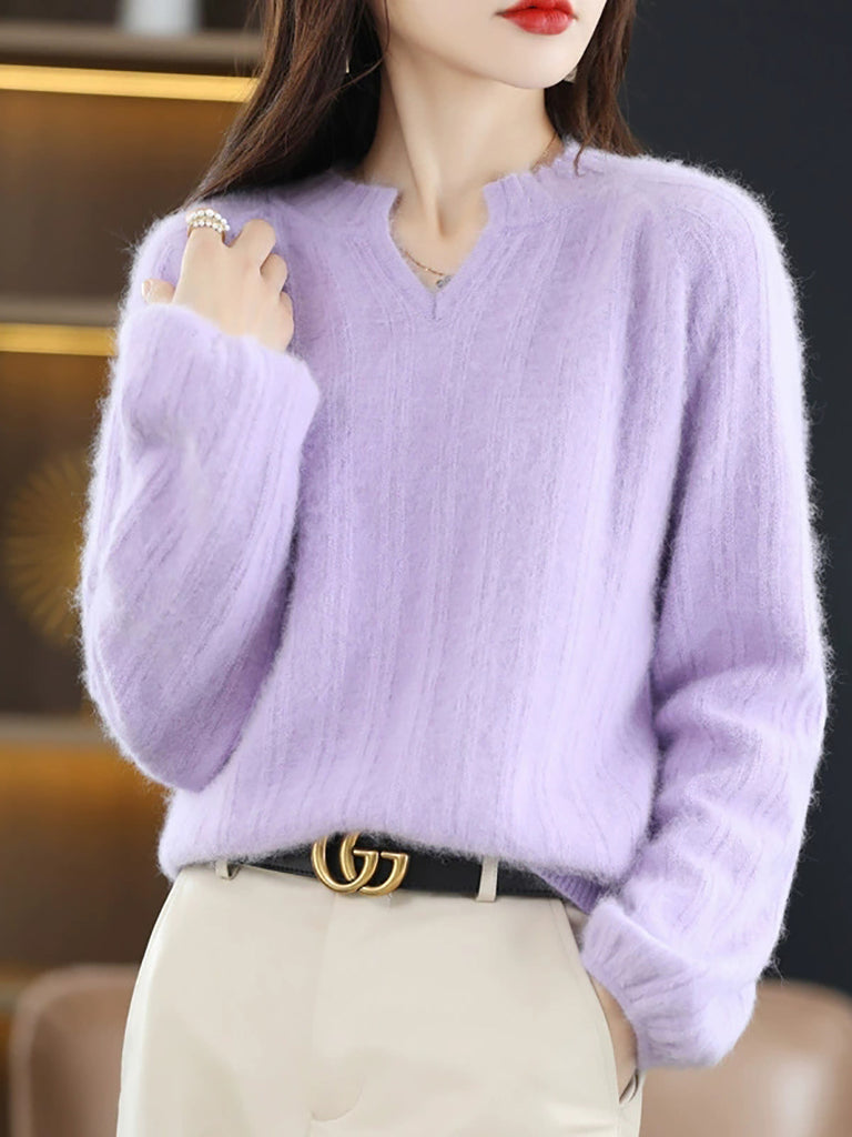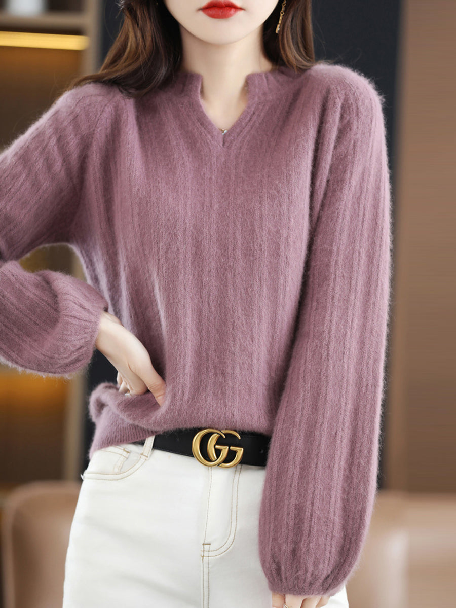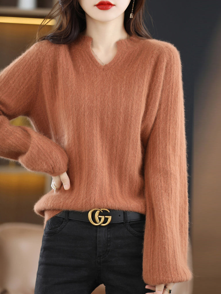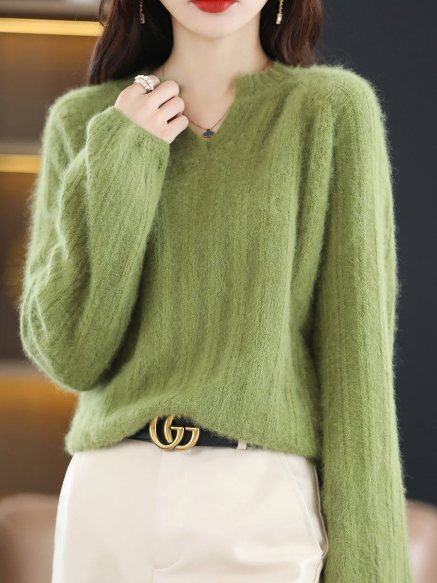 女士冬季純色V領毛衣