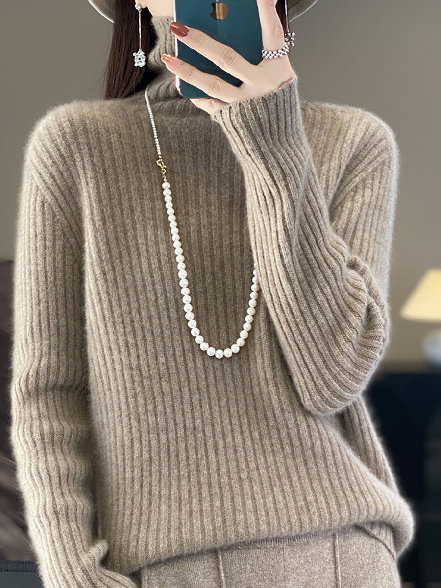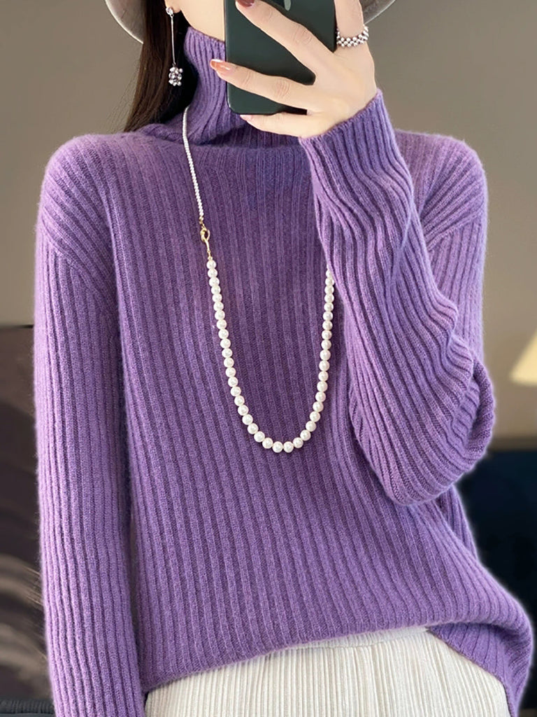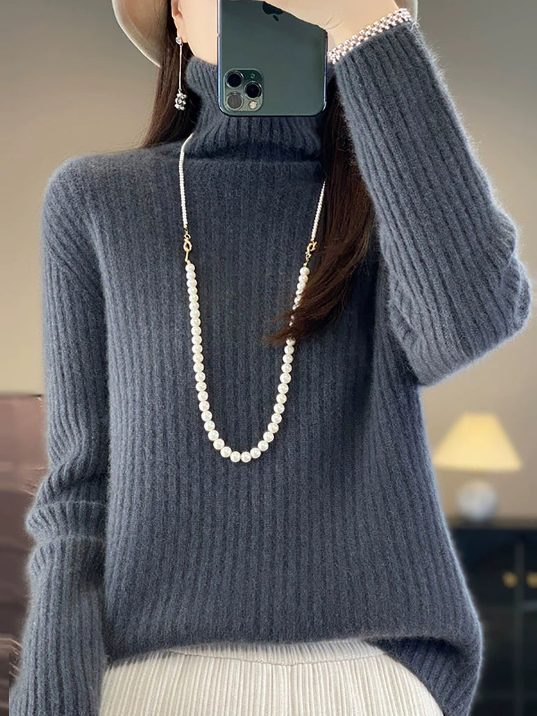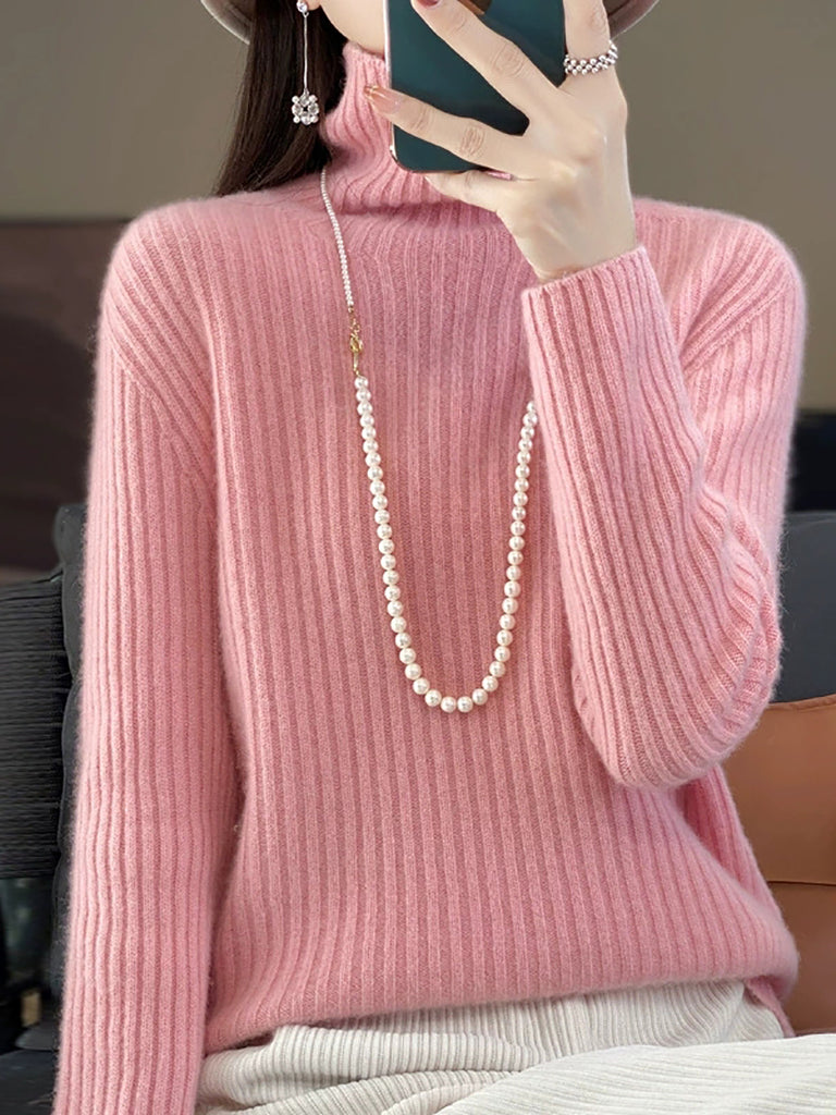 女士冬季純色羊毛高領毛衣