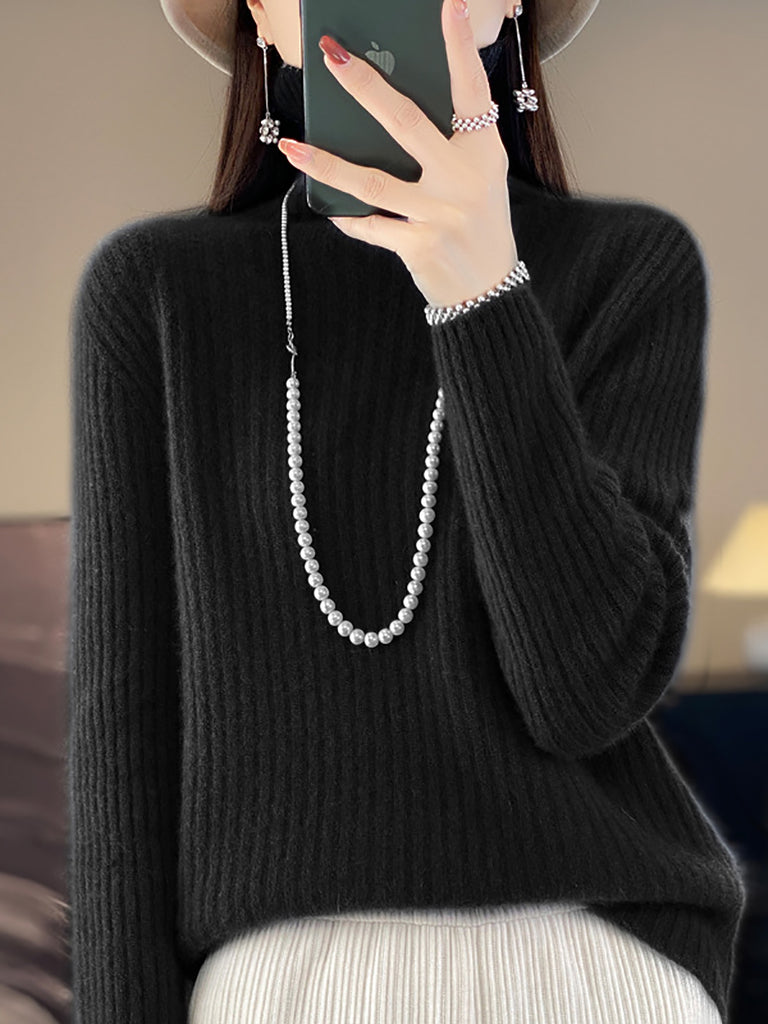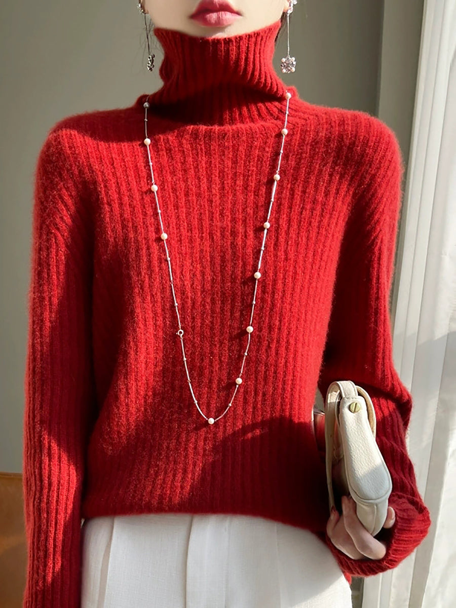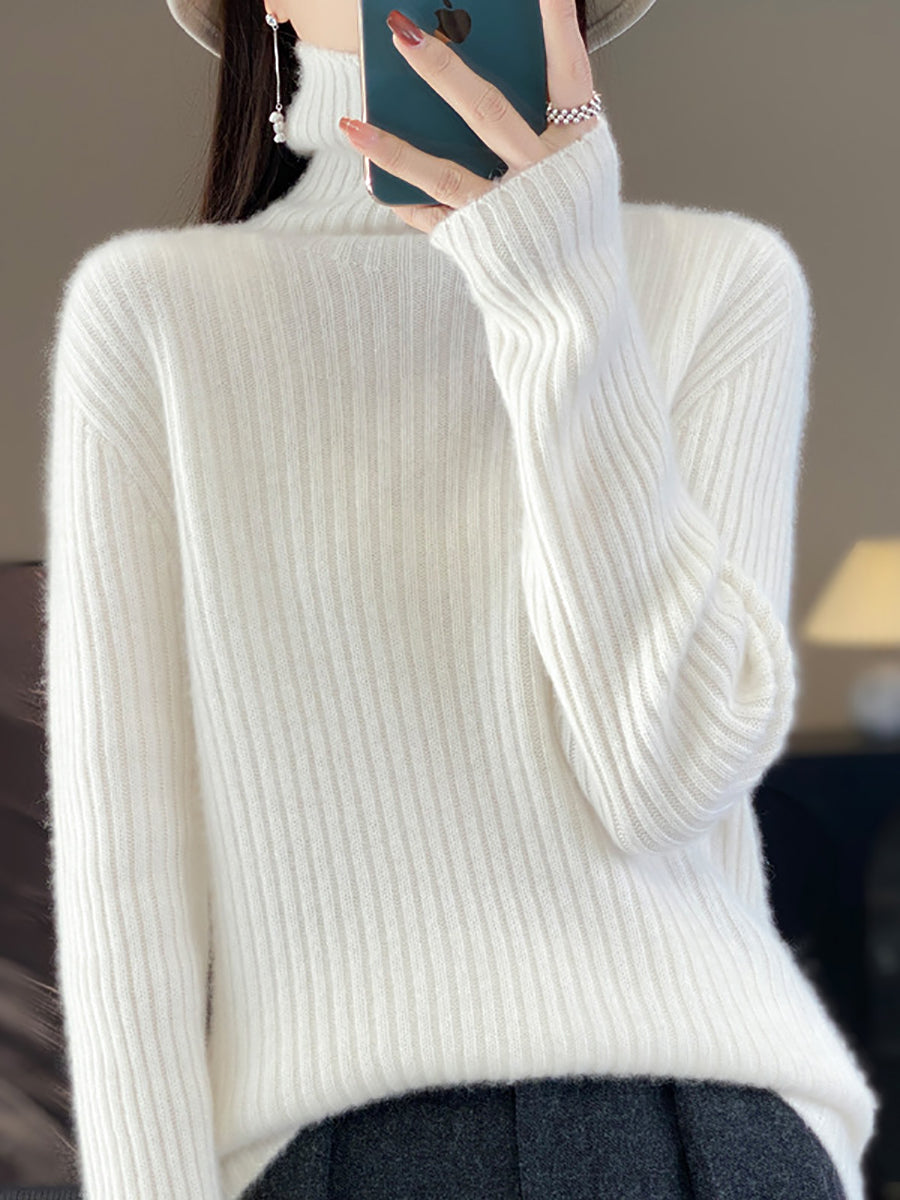 女士冬季純色羊毛高領毛衣