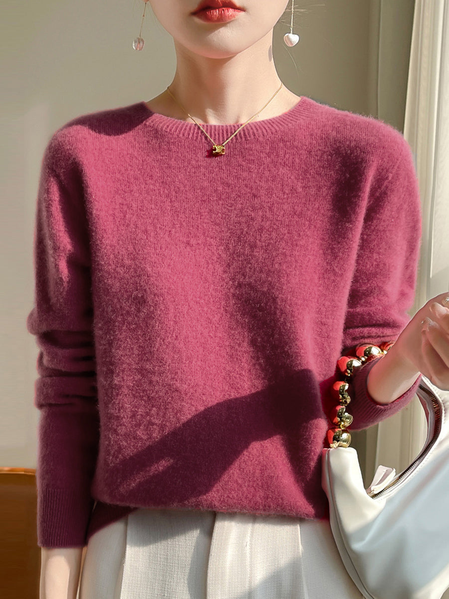 女士秋季休閒純色圓領毛衣