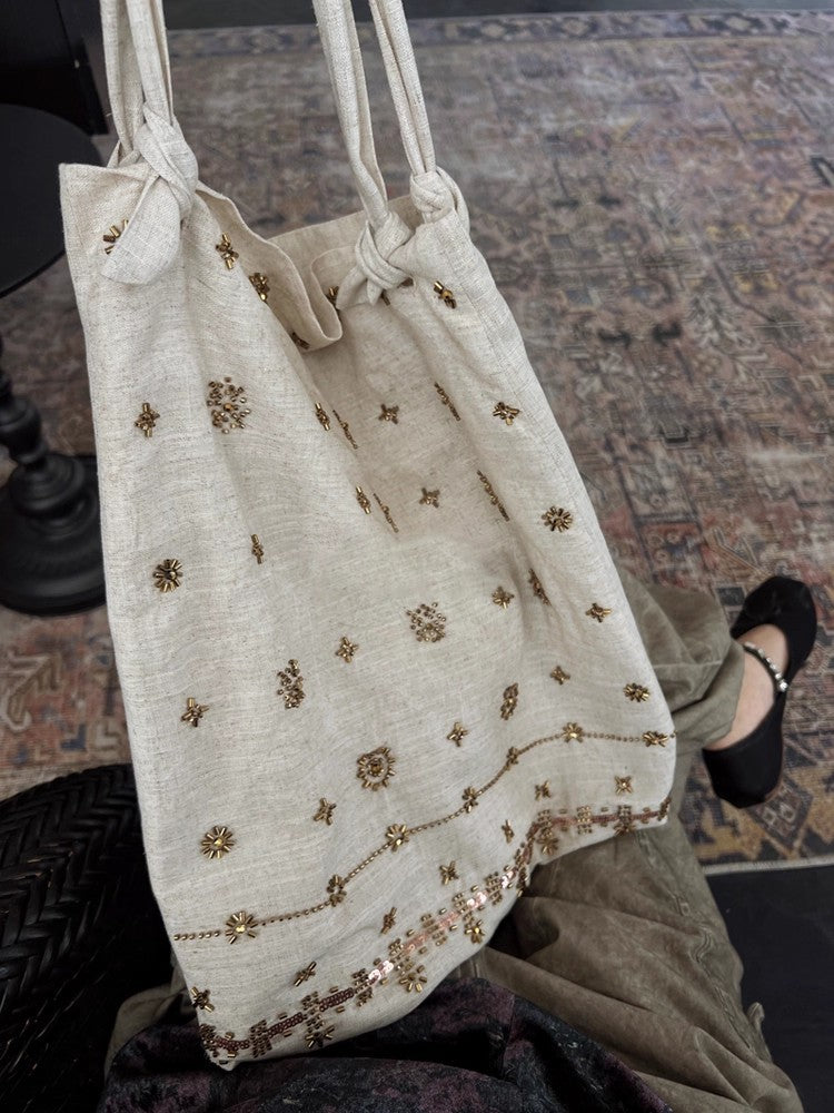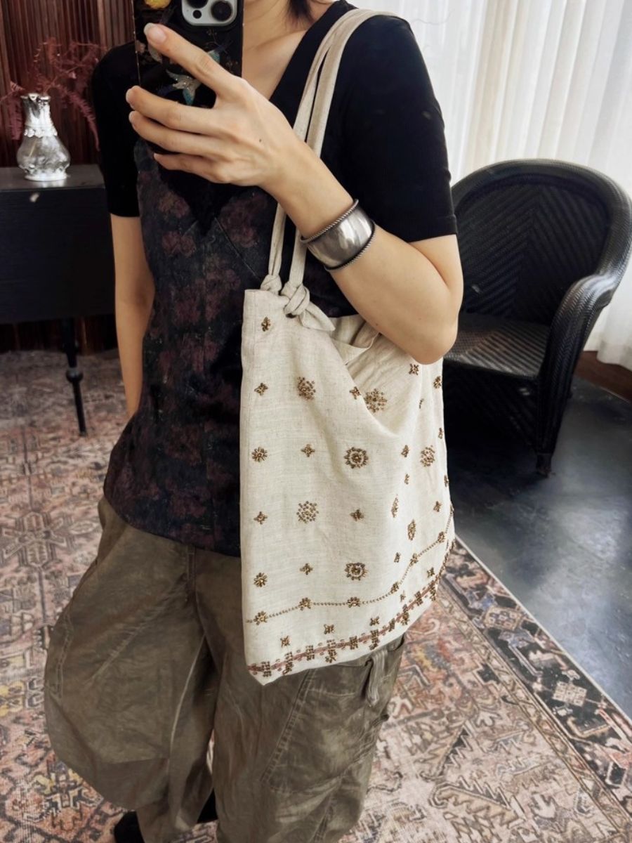 03026 休閒亞麻刺繡帆布包