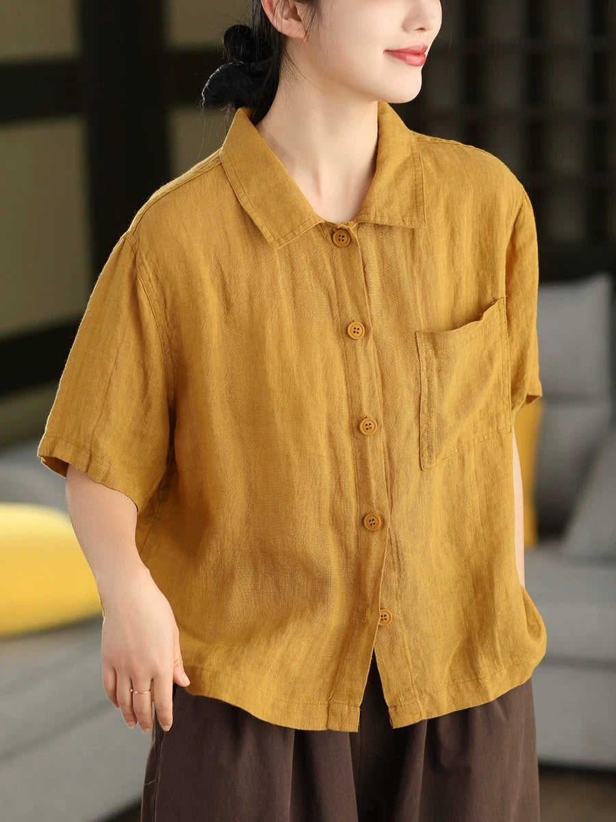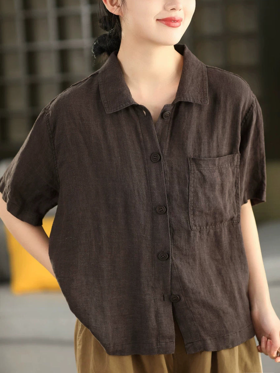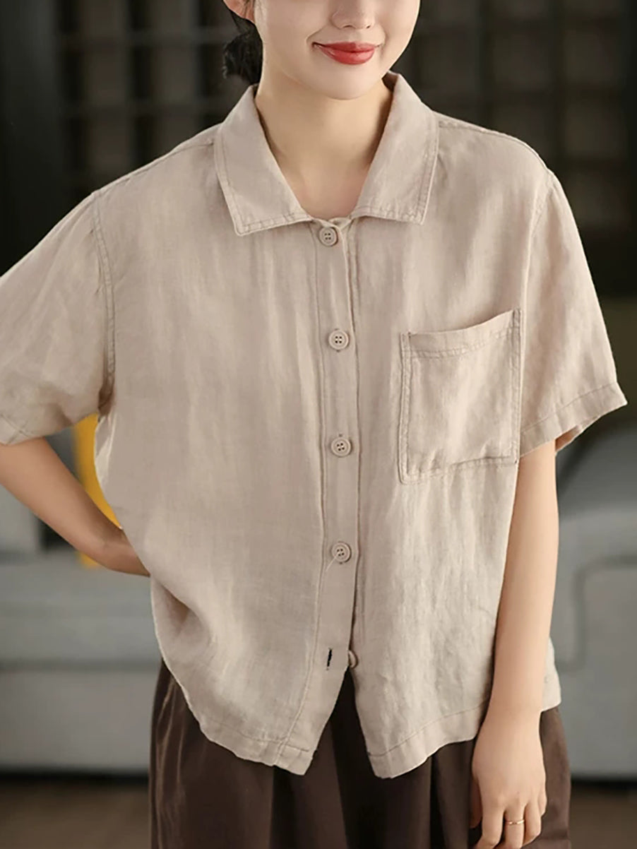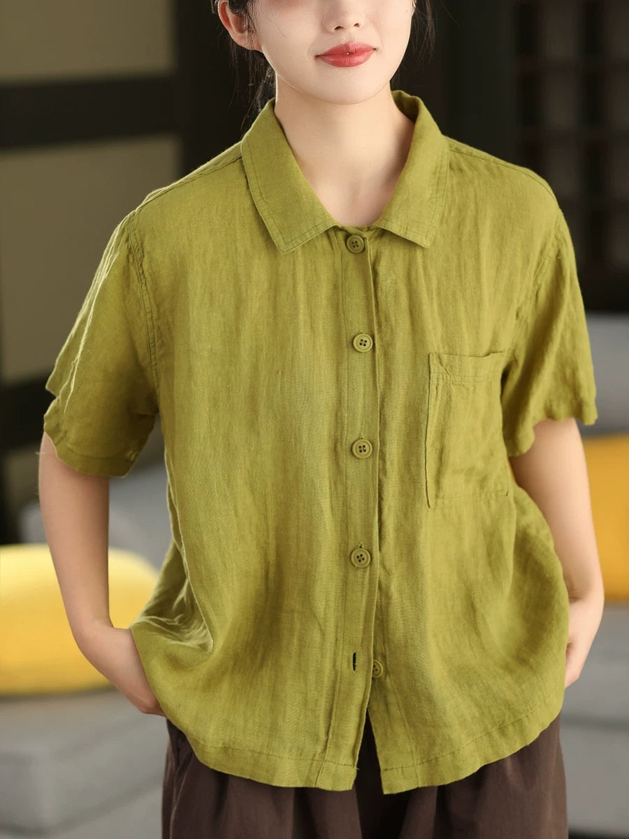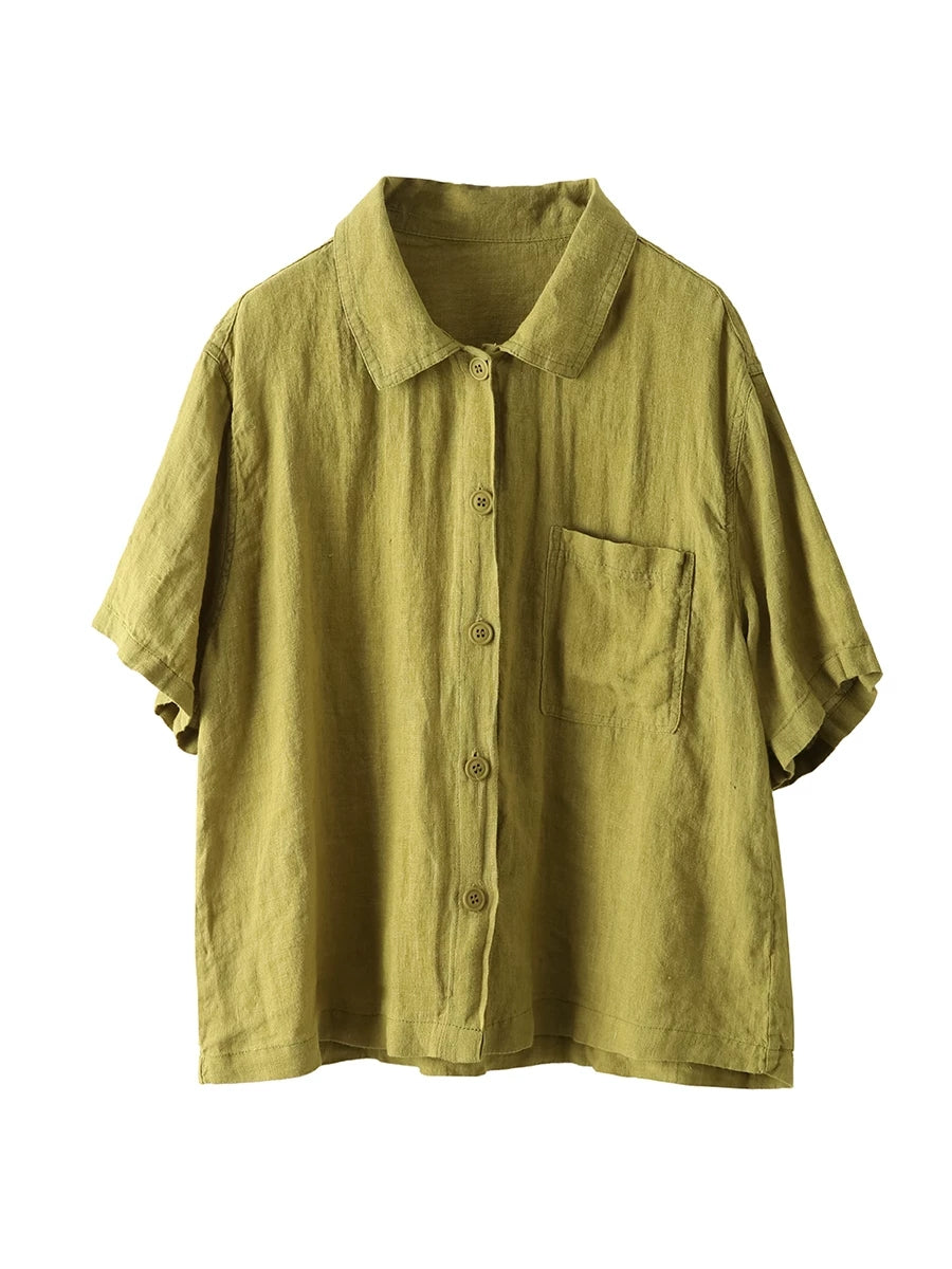 女士夏季藝術純色100%亞麻襯衫