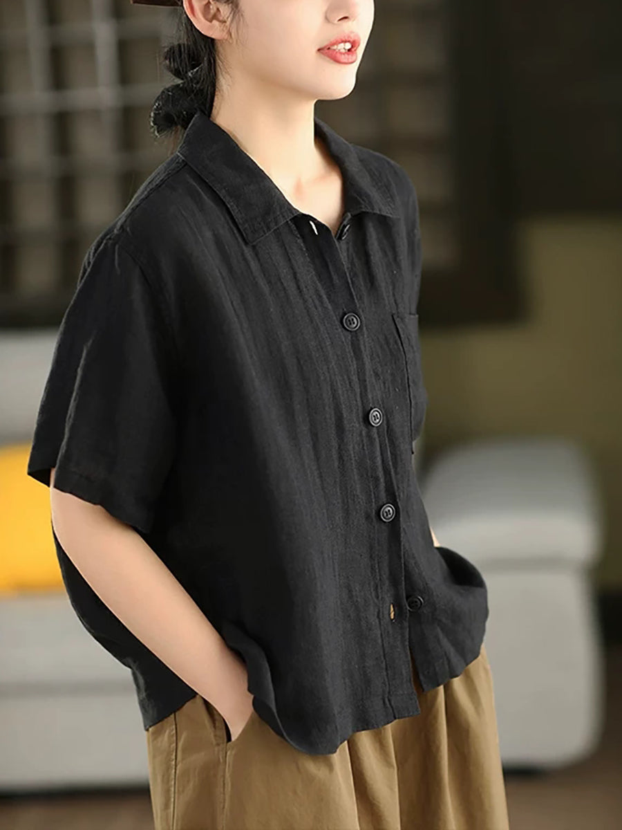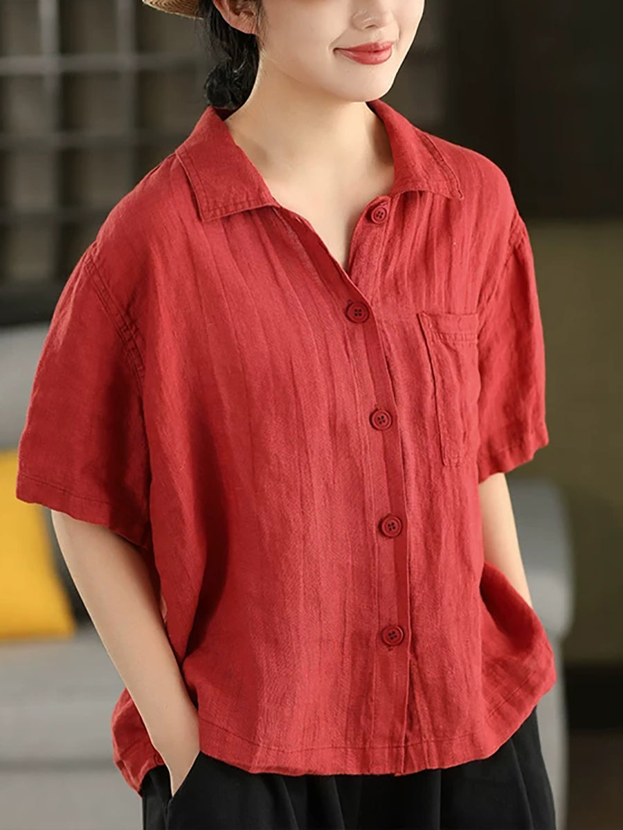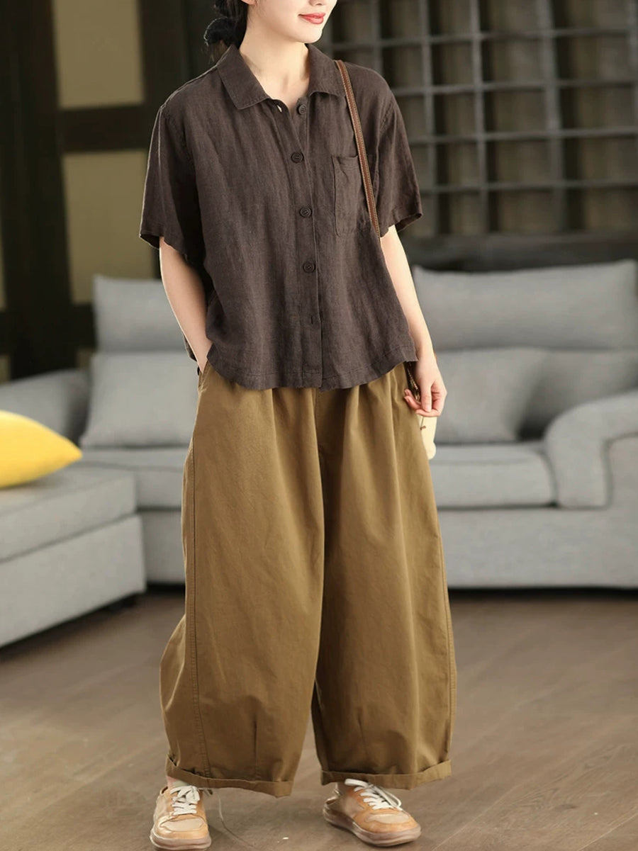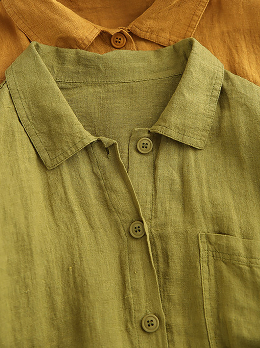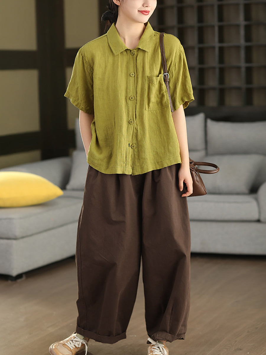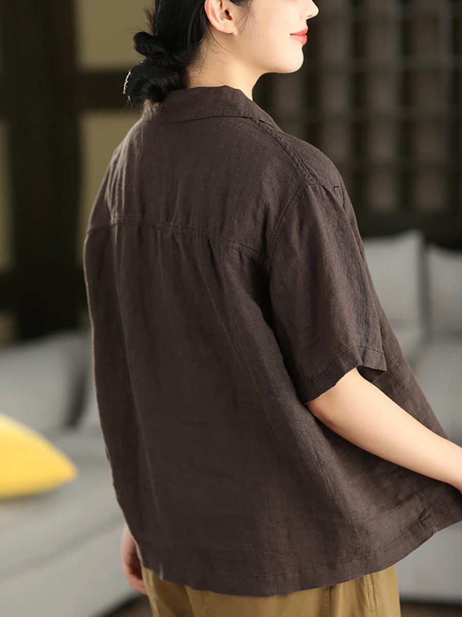 女士夏季藝術純色100%亞麻襯衫
