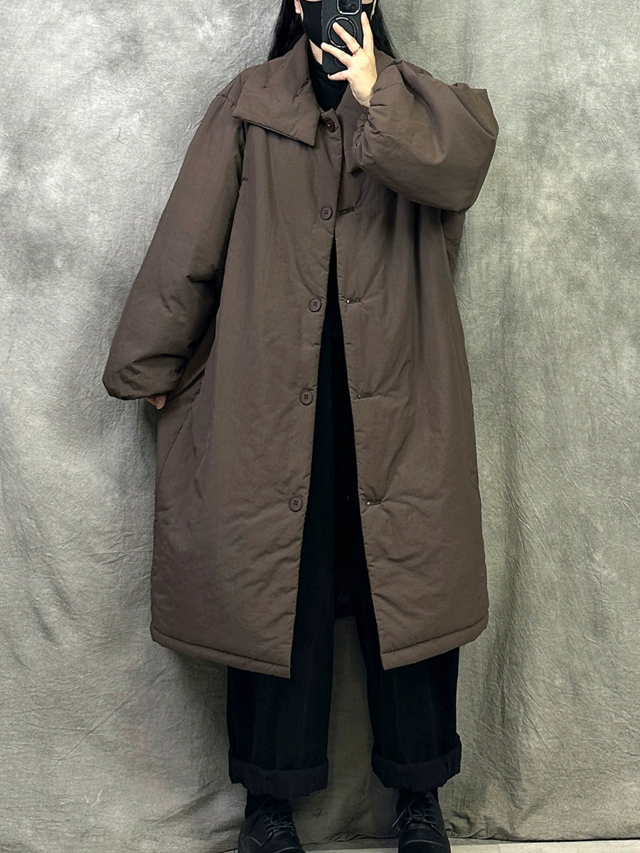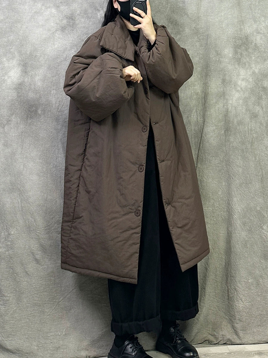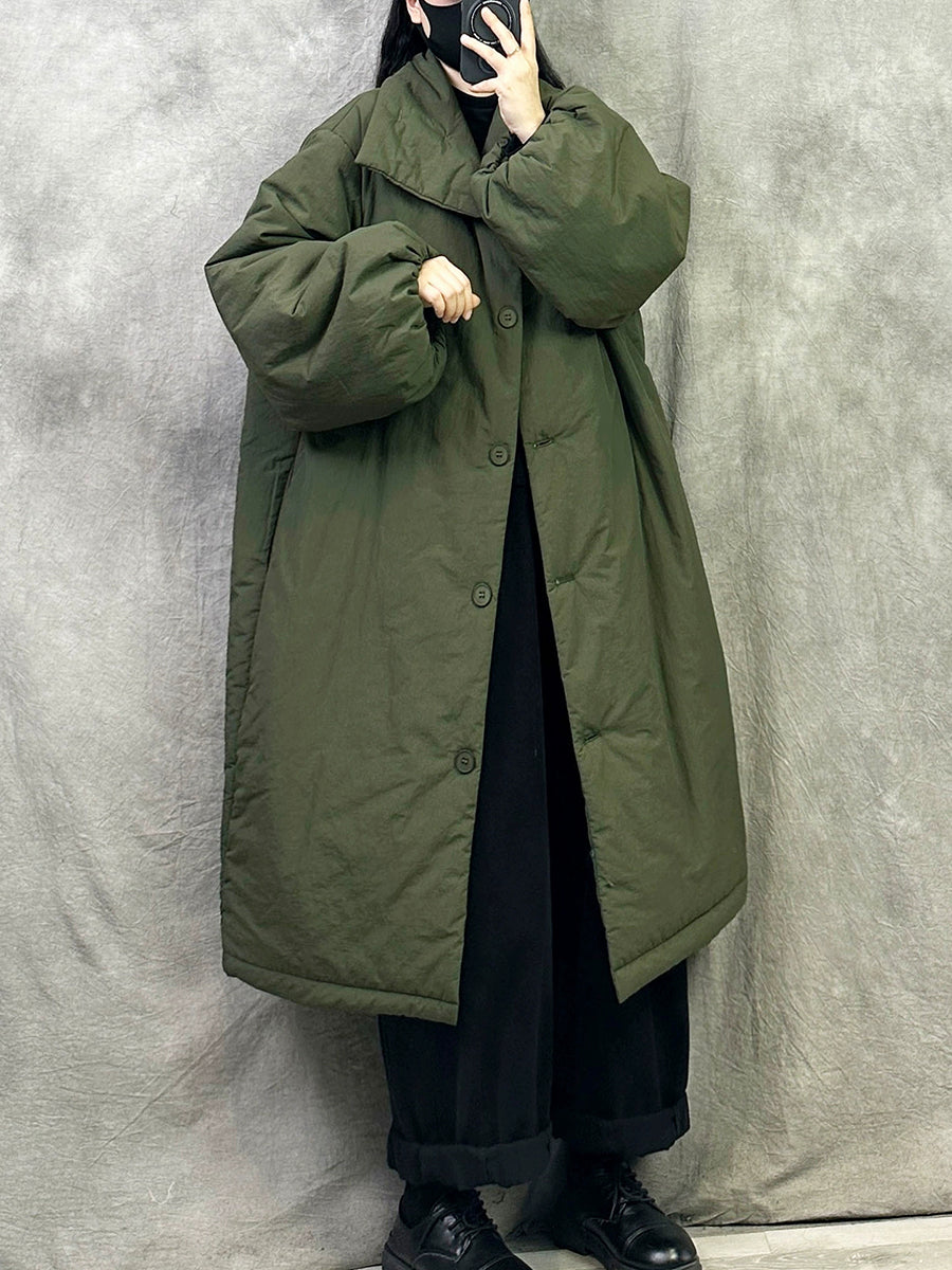 女士冬季純色翻領長羽絨服