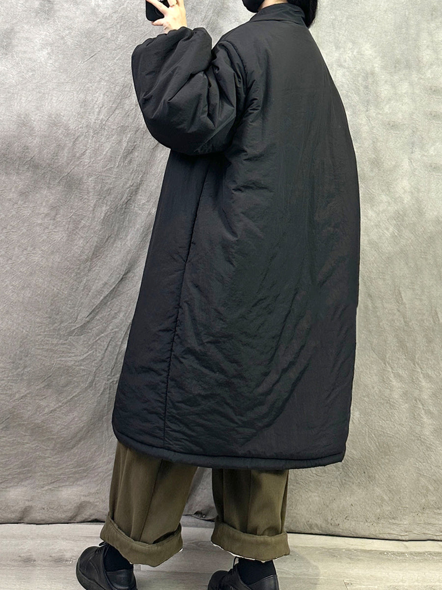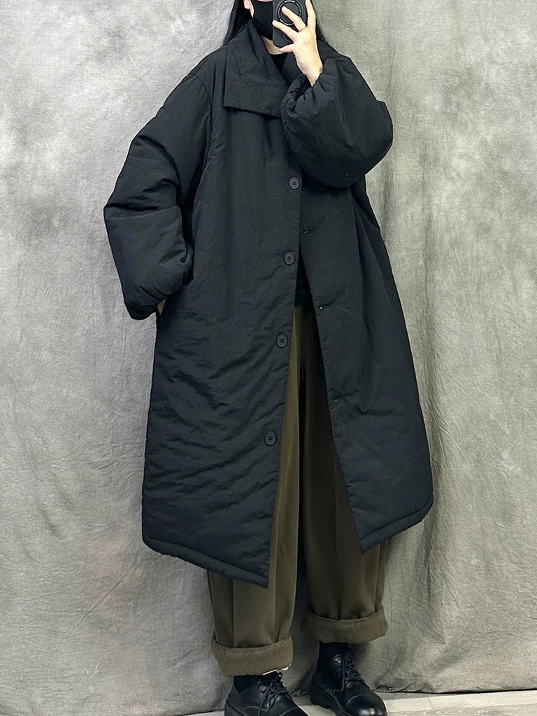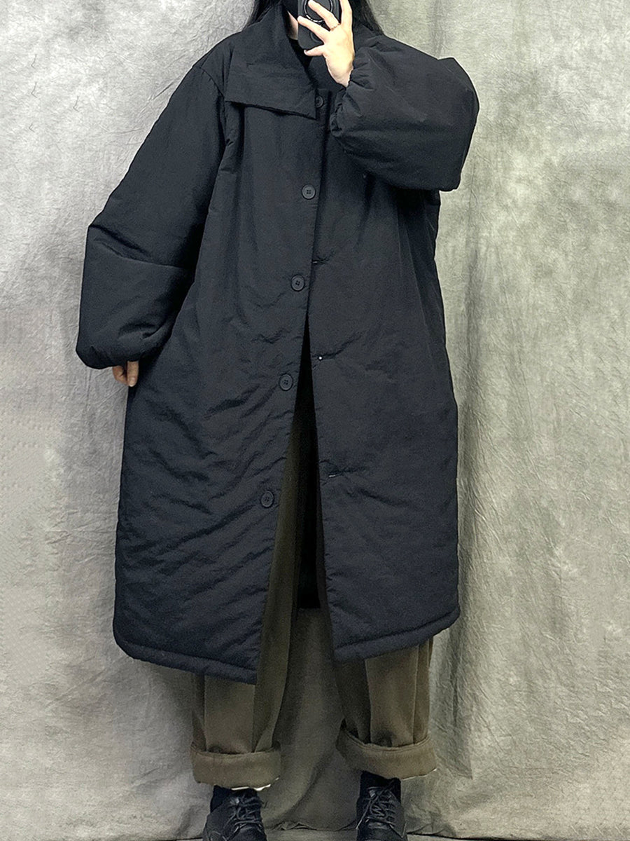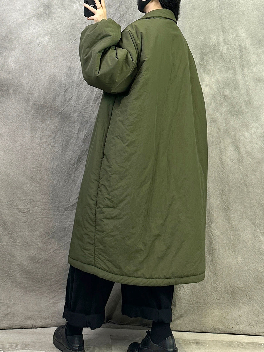 女士冬季純色翻領長羽絨服