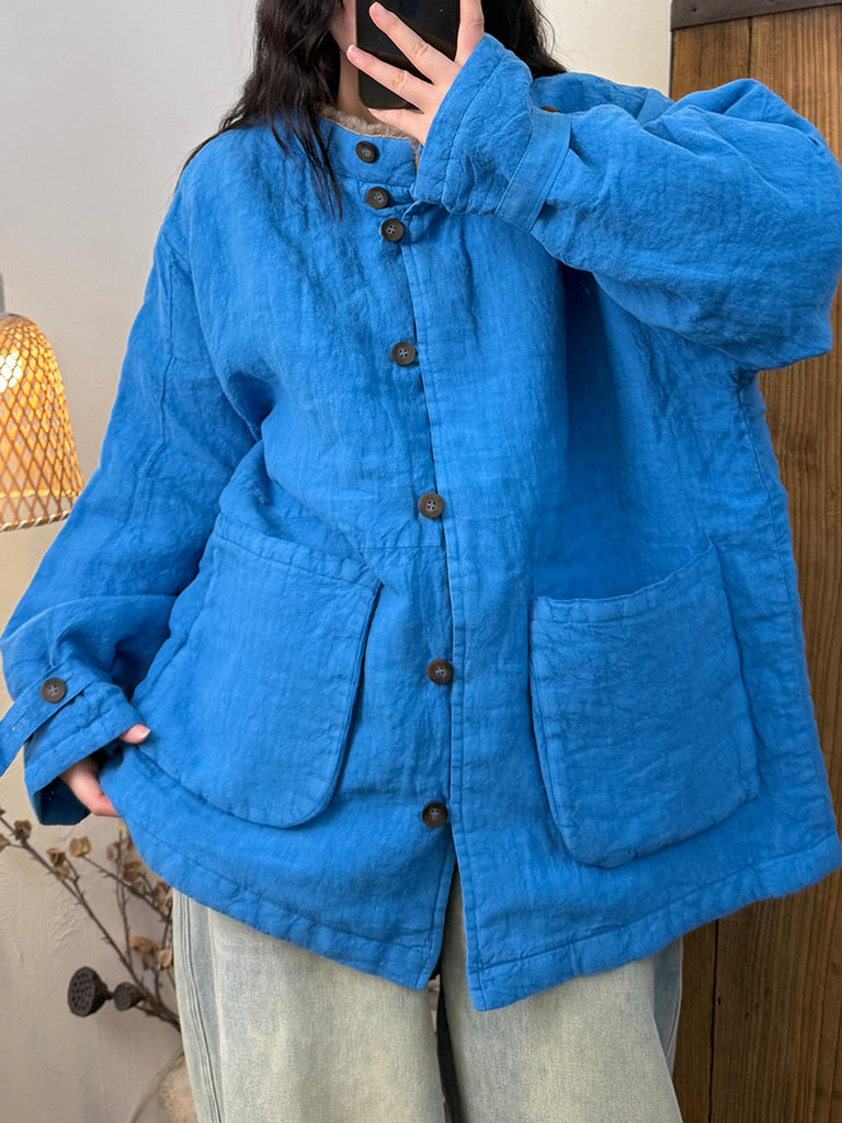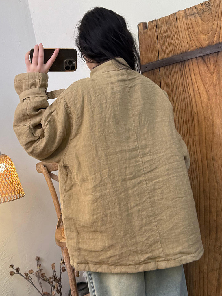 女士復古冬季羊毛亞麻立領外套