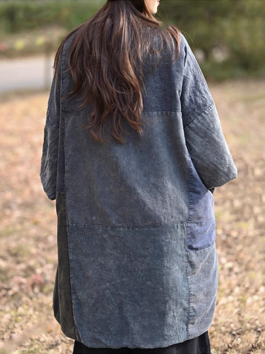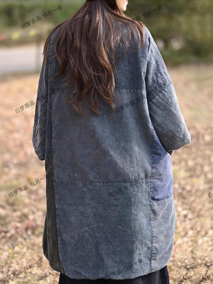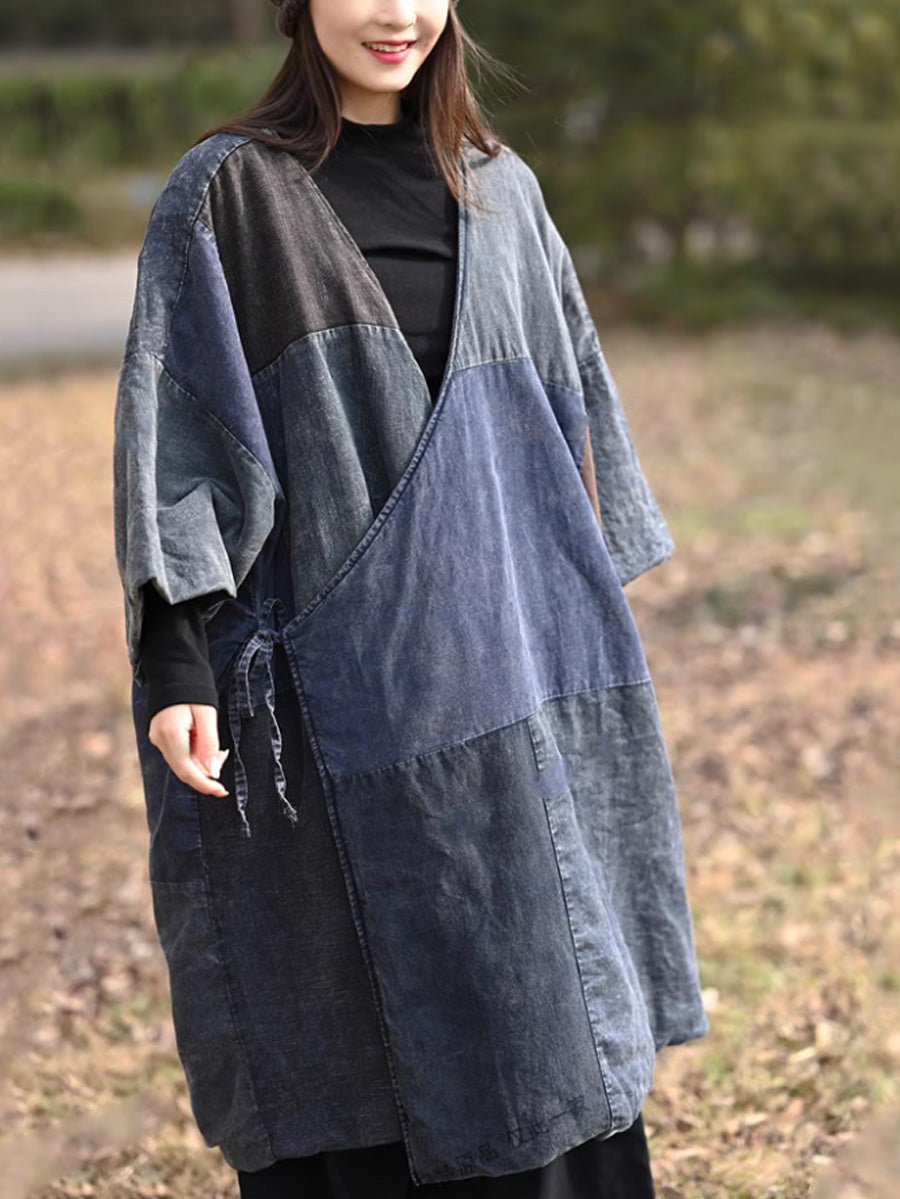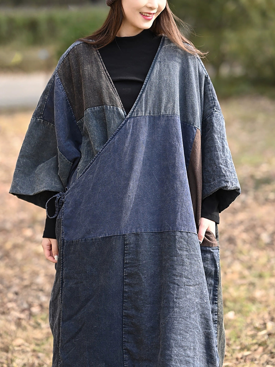 女士復古撞色拼接棉質V領羽絨服