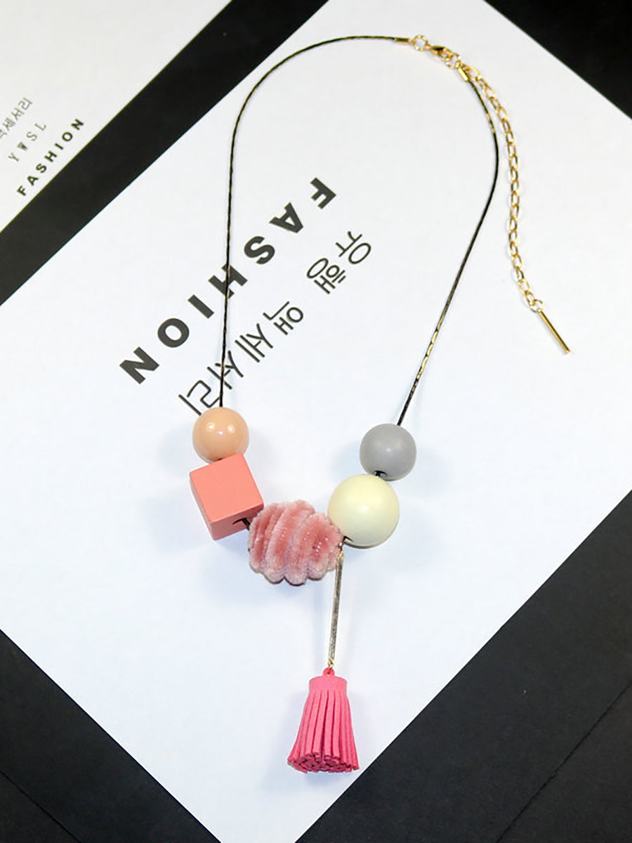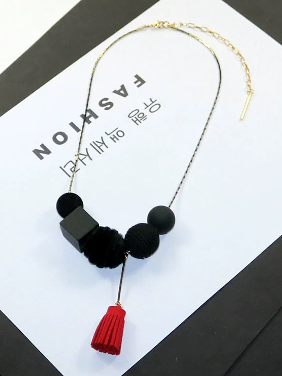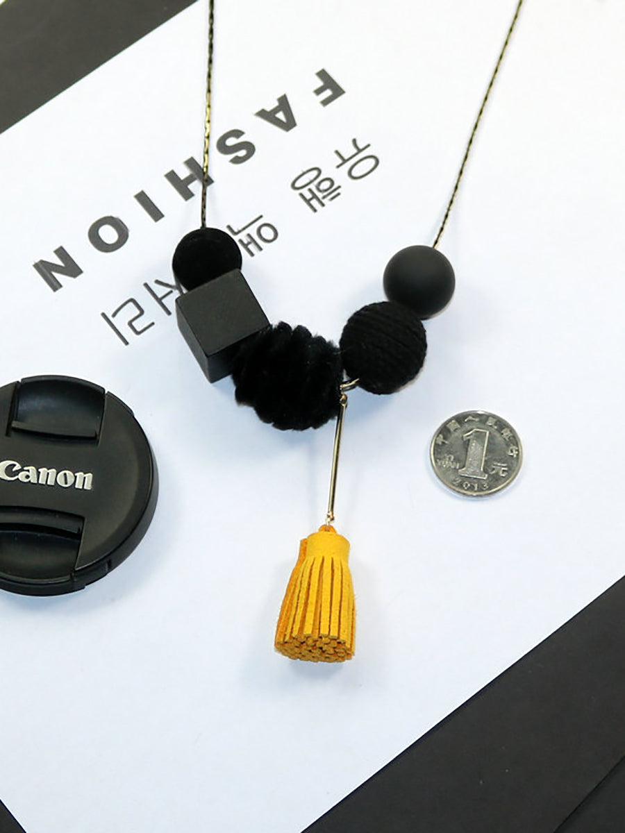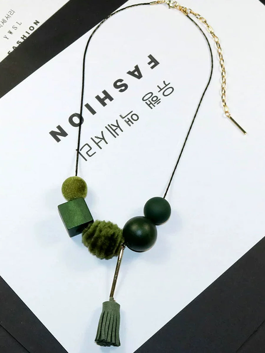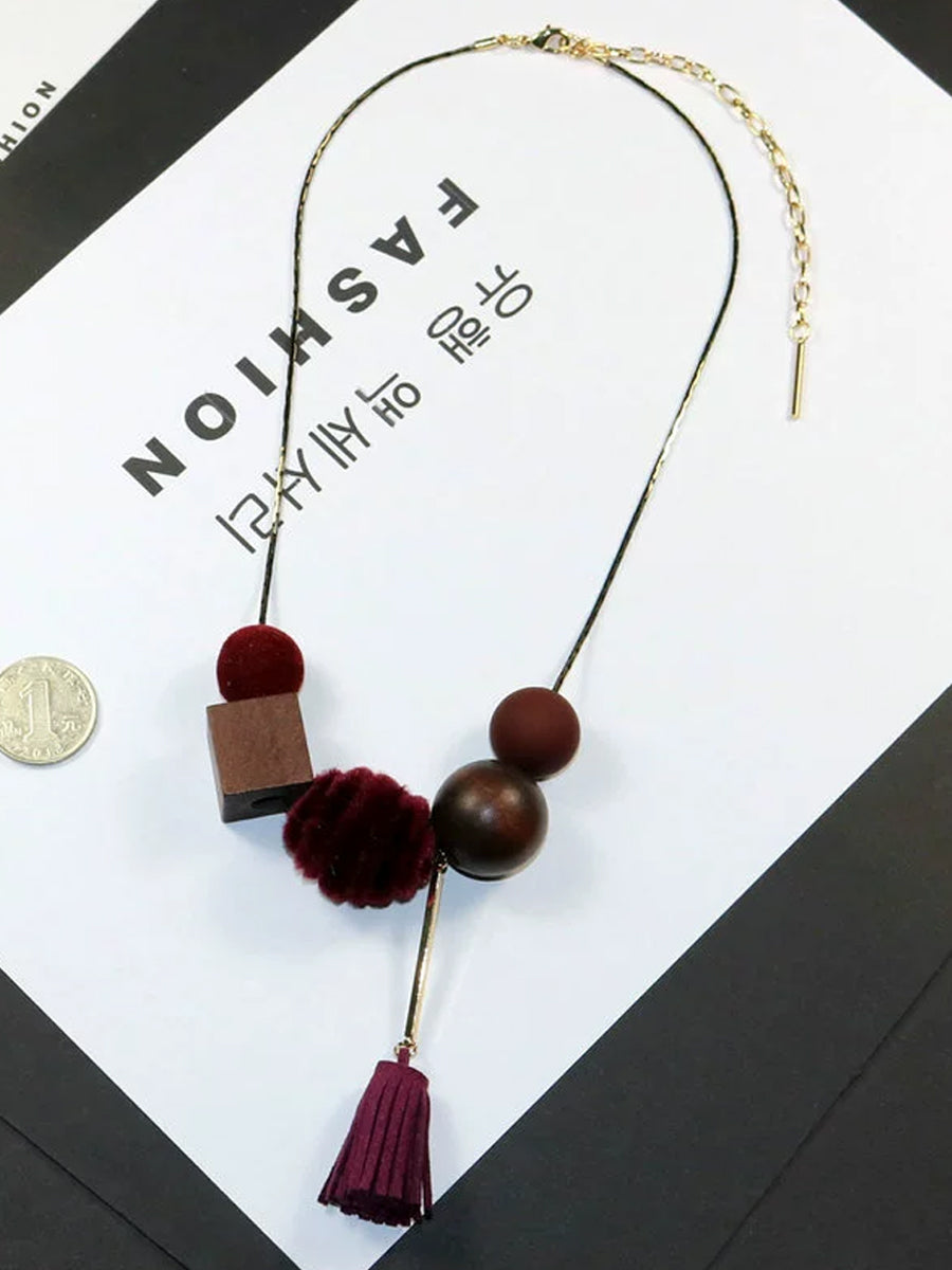女士復古合金木線球項鍊