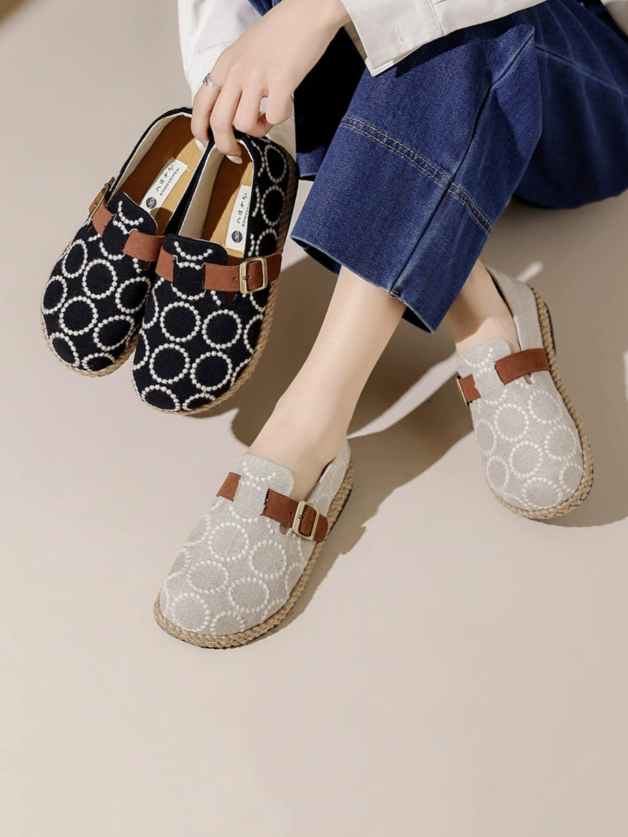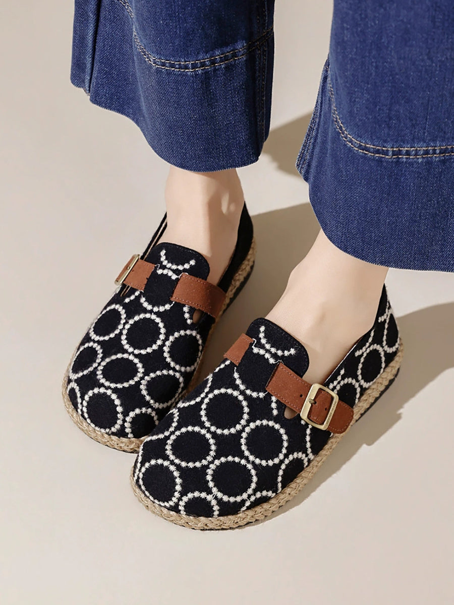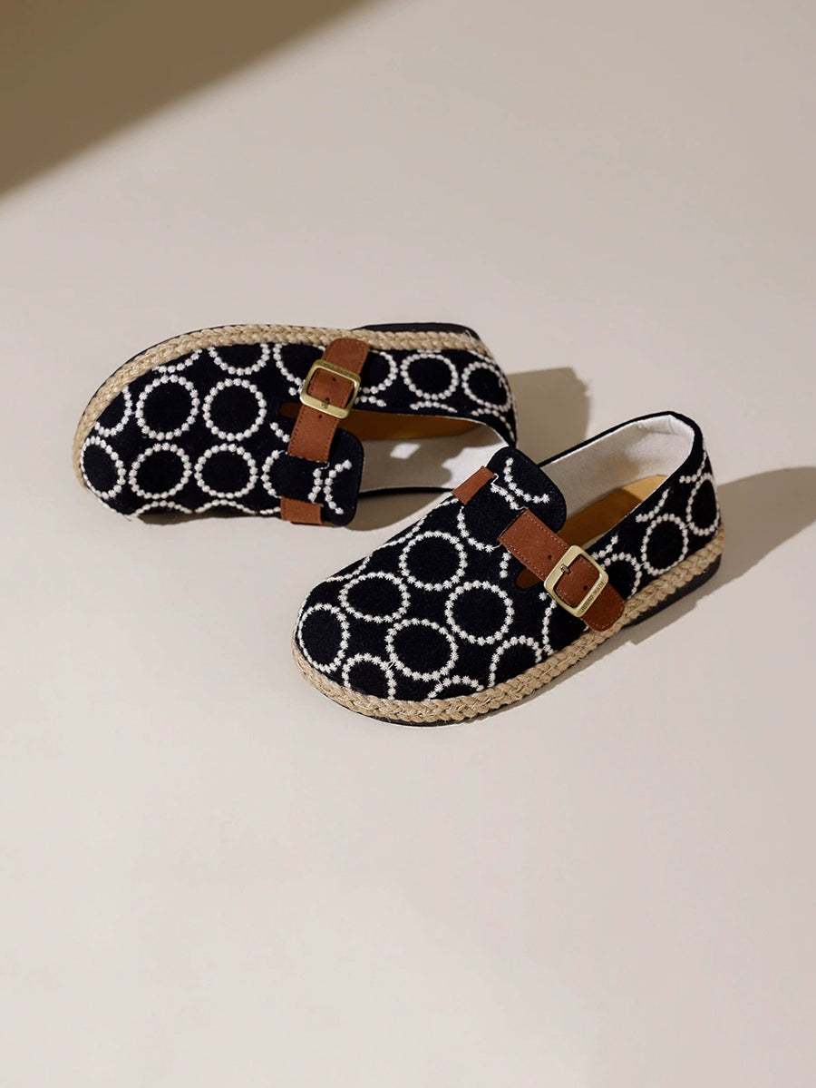 女士復古圓形刺繡平底鞋