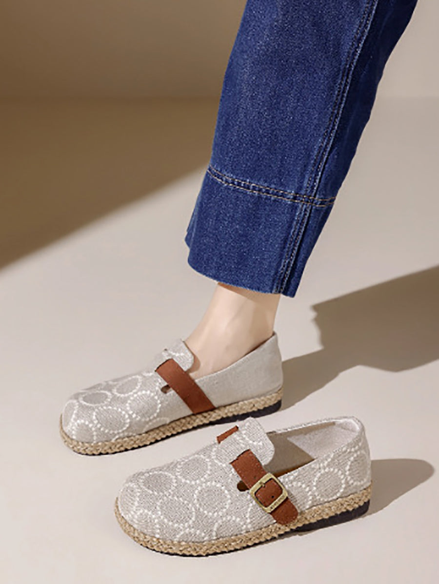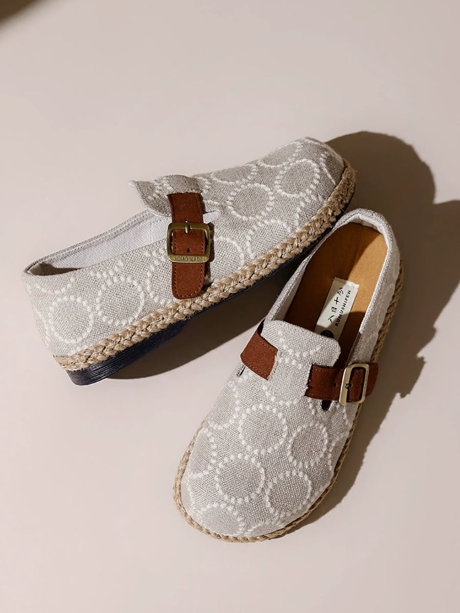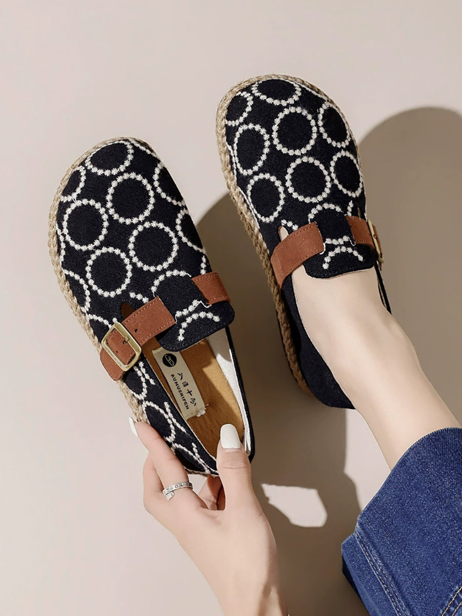 女士復古圓形刺繡平底鞋