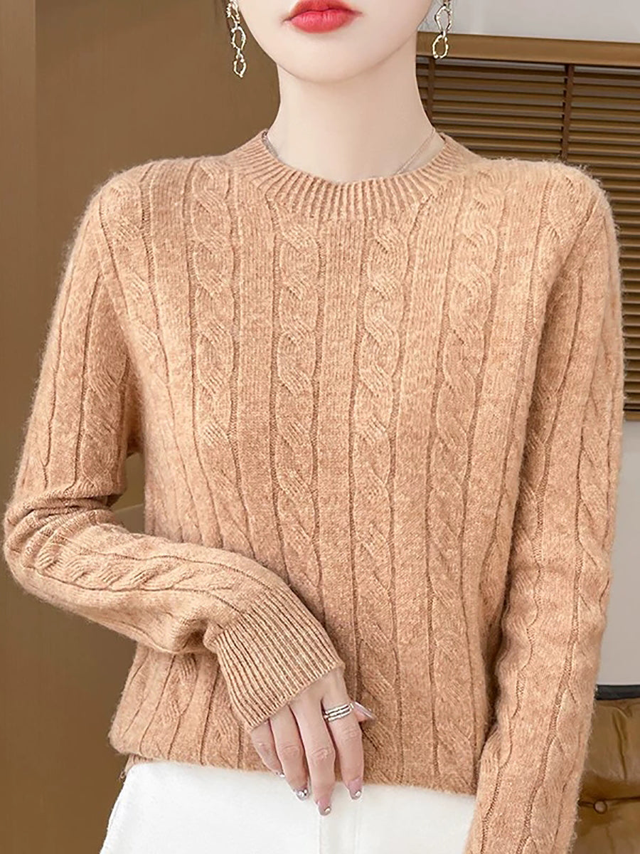 女士休閒春季絞花針織圓領毛衣