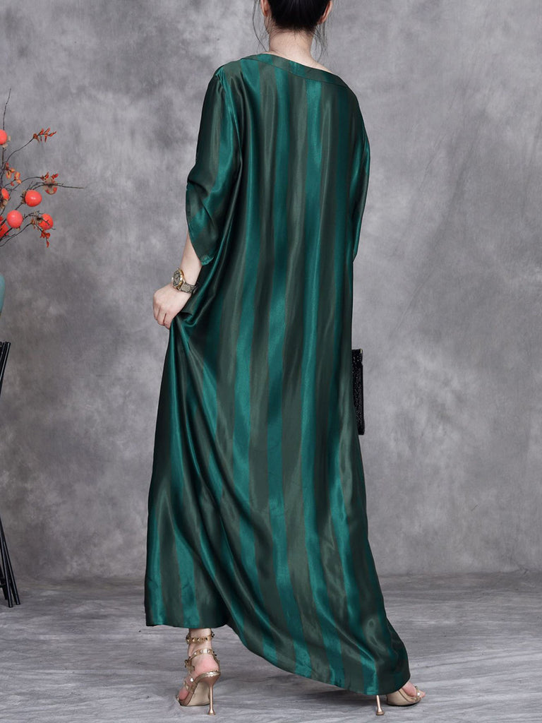 這款女士夏季藝術花朵 V 領長裙採用 100% 絲質製成,具有獨特的拼接圖案和常規全袖。非常適合春夏季節,時尚的 V 領和踝長設計。