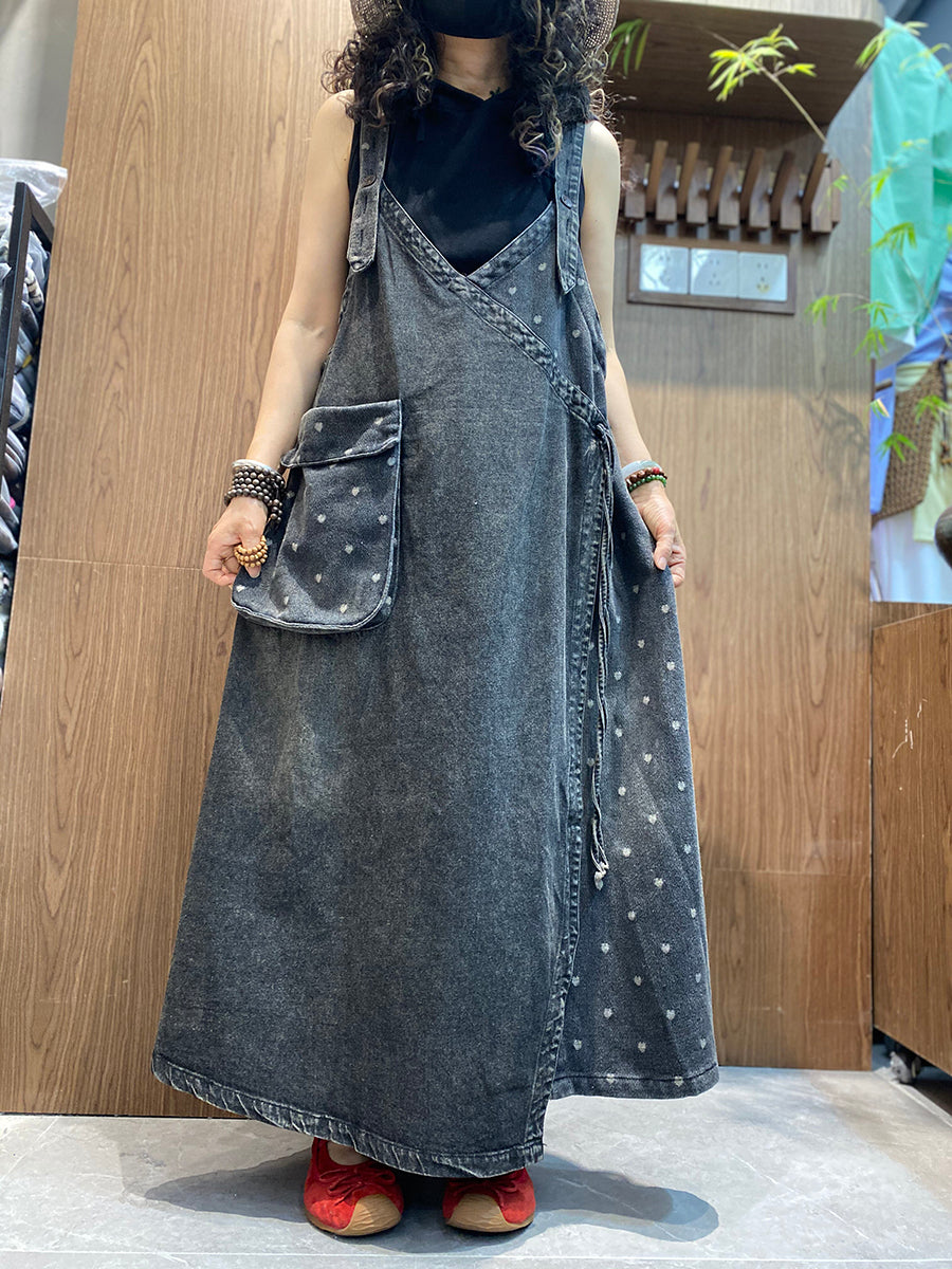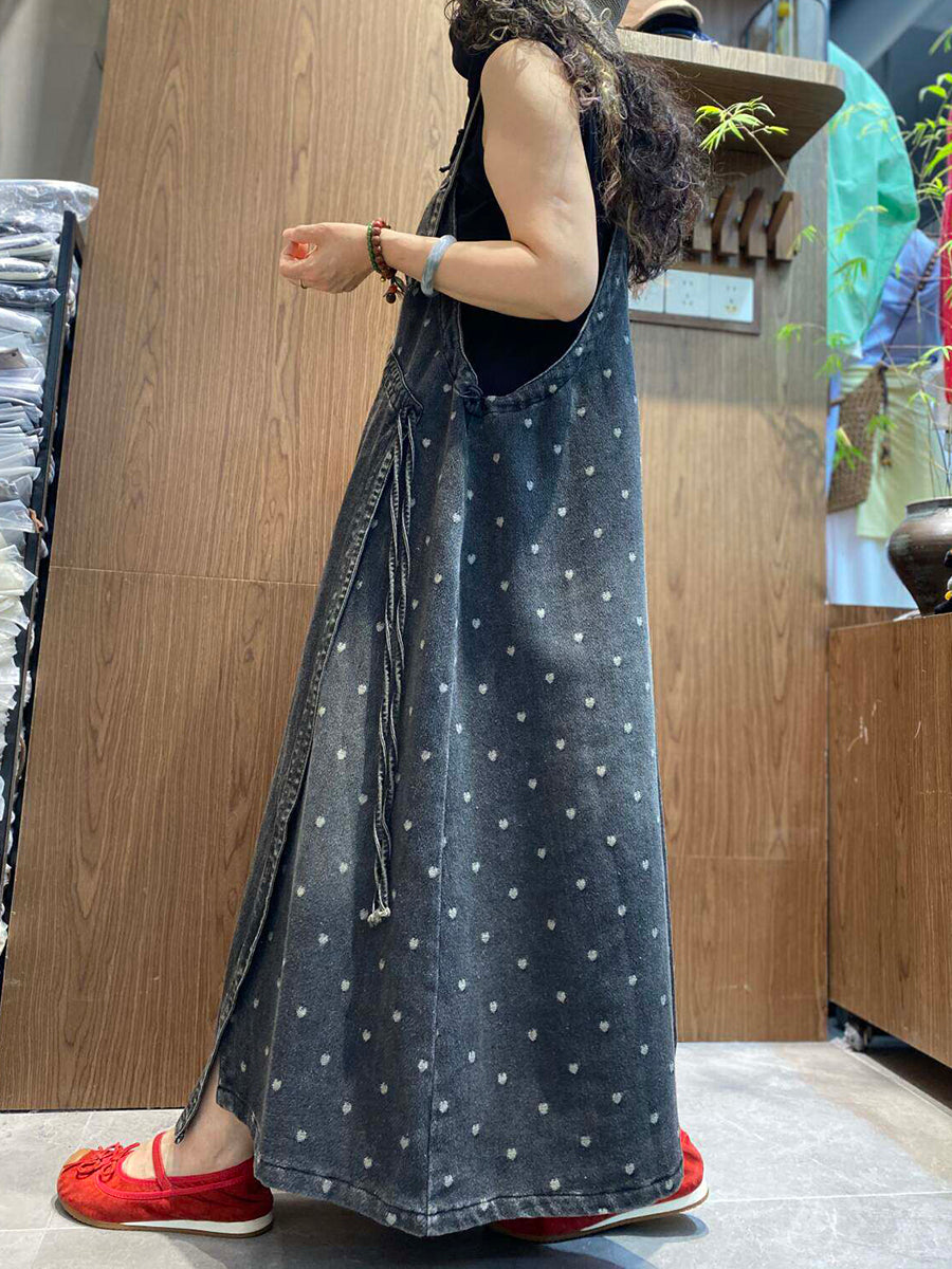 女士夏季復古牛仔愛心背帶裙