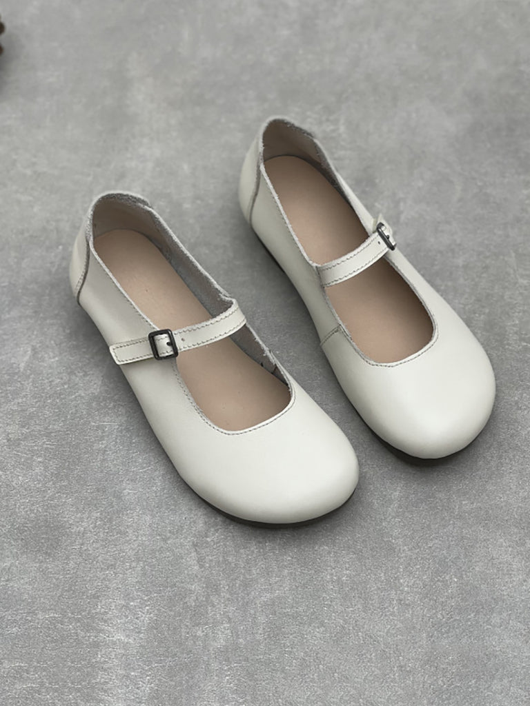 女士休閒真皮低跟瑪莉珍鞋