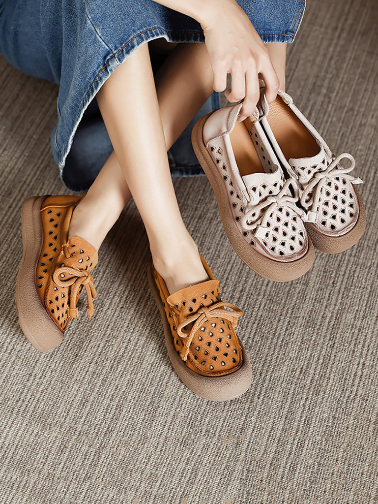 女士夏季真皮鏤空平底鞋
