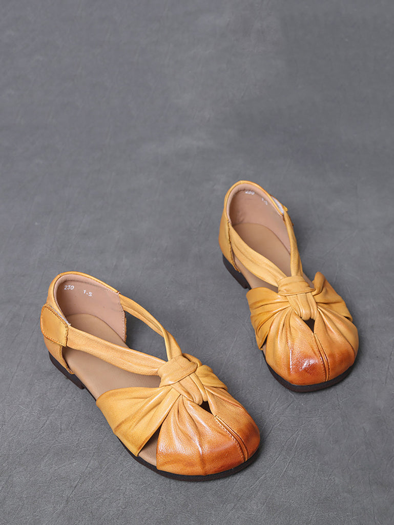 女士夏季復古真皮拼接涼鞋