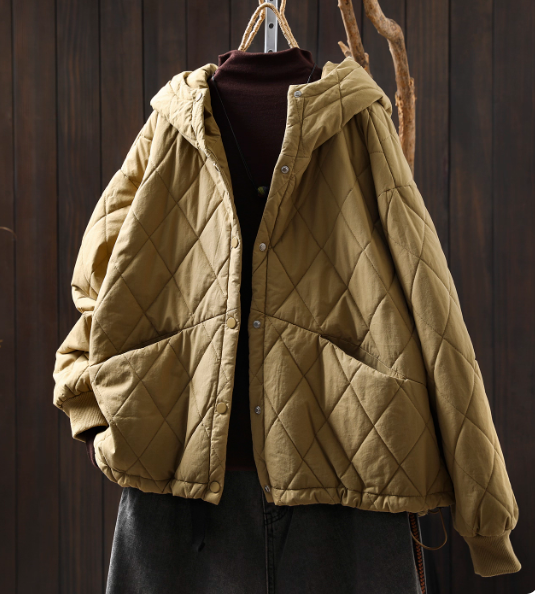 女款秋季休閒純色連帽棉服夾克