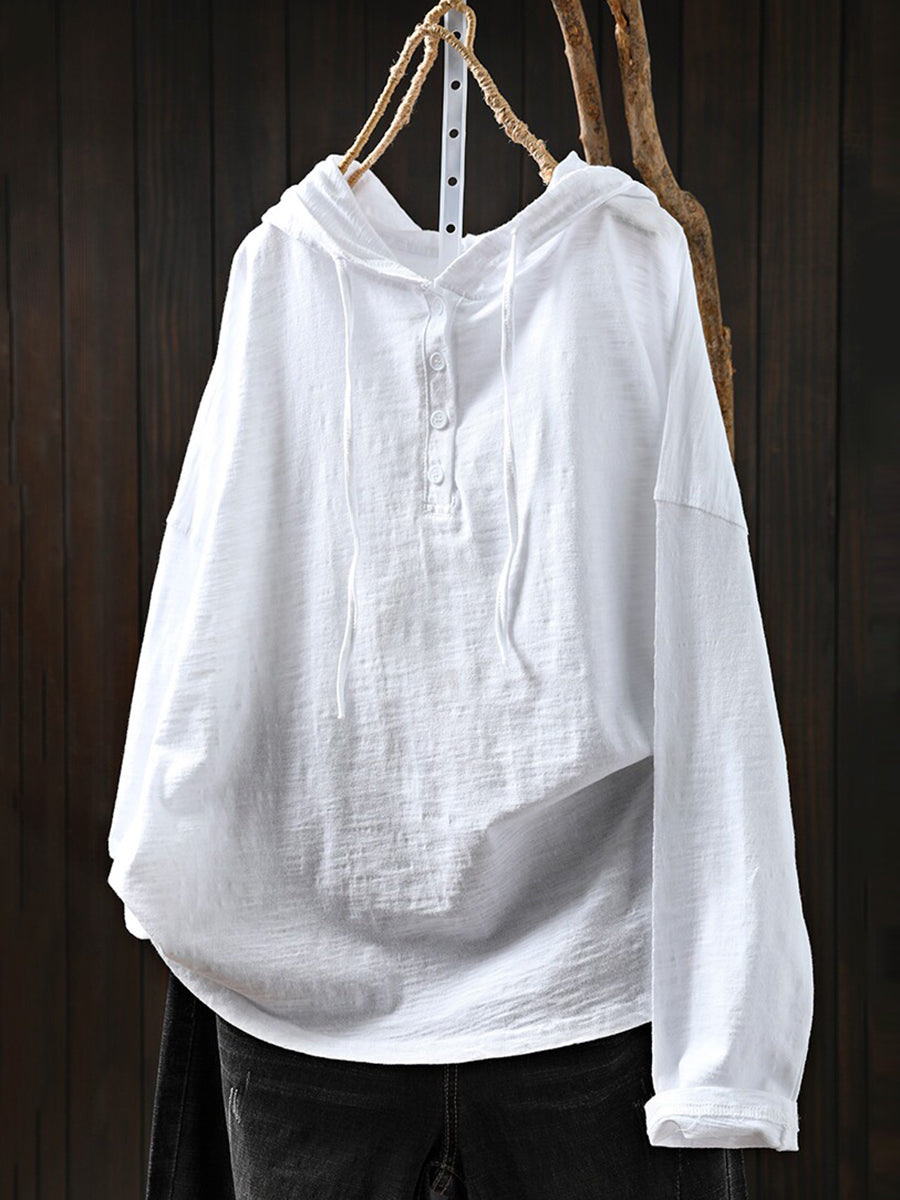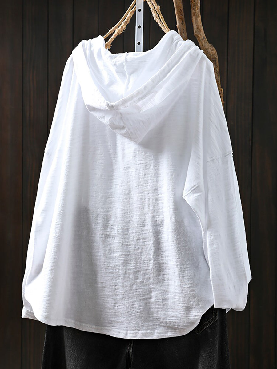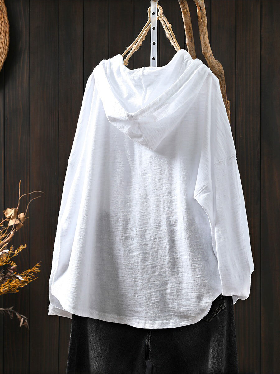 女士夏季休閒純色100%棉連帽衫