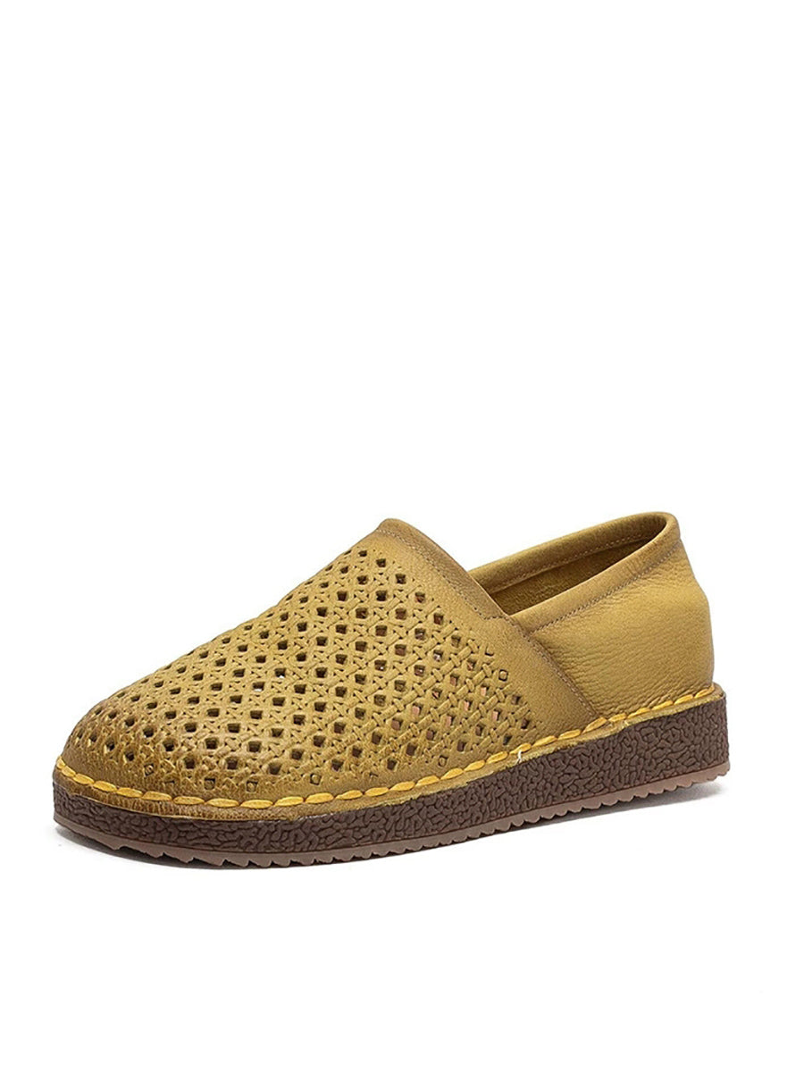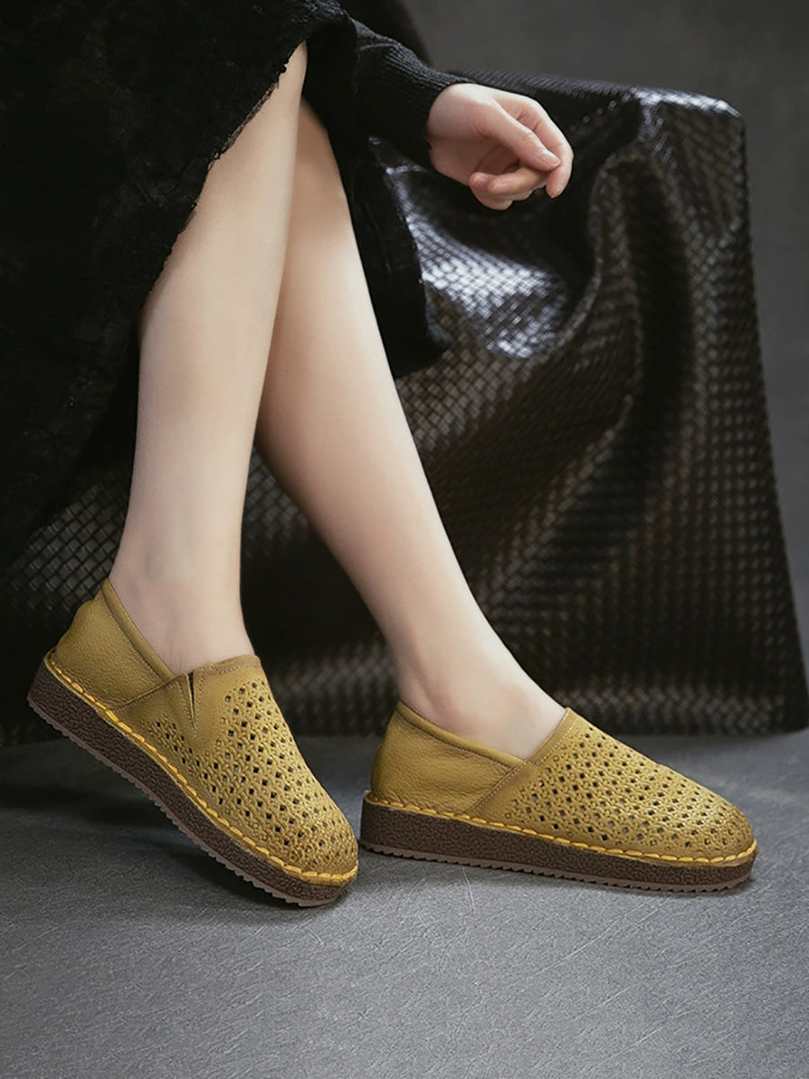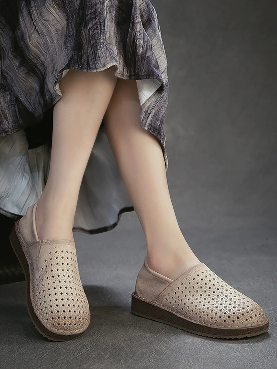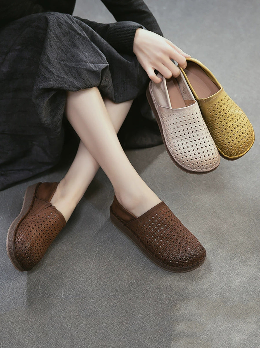 女士夏季軟皮鏤空平底鞋