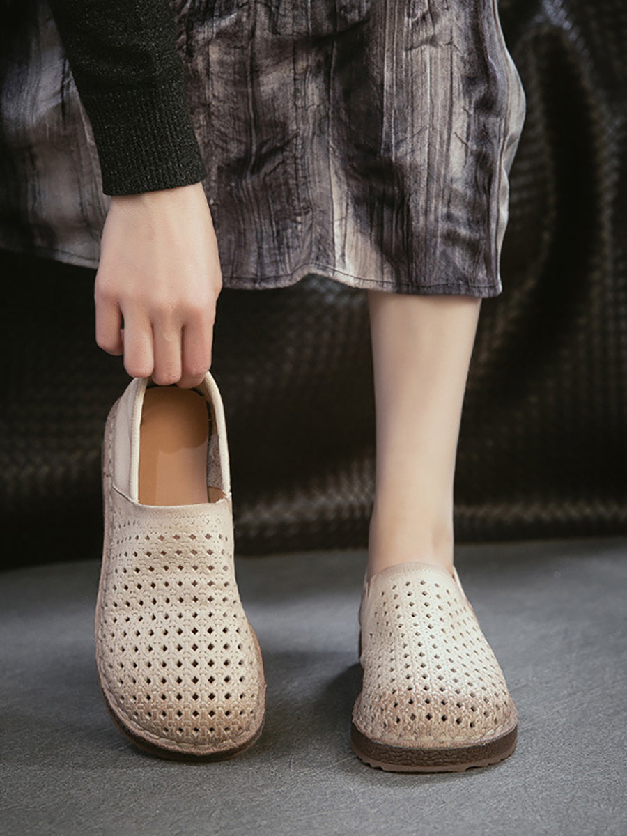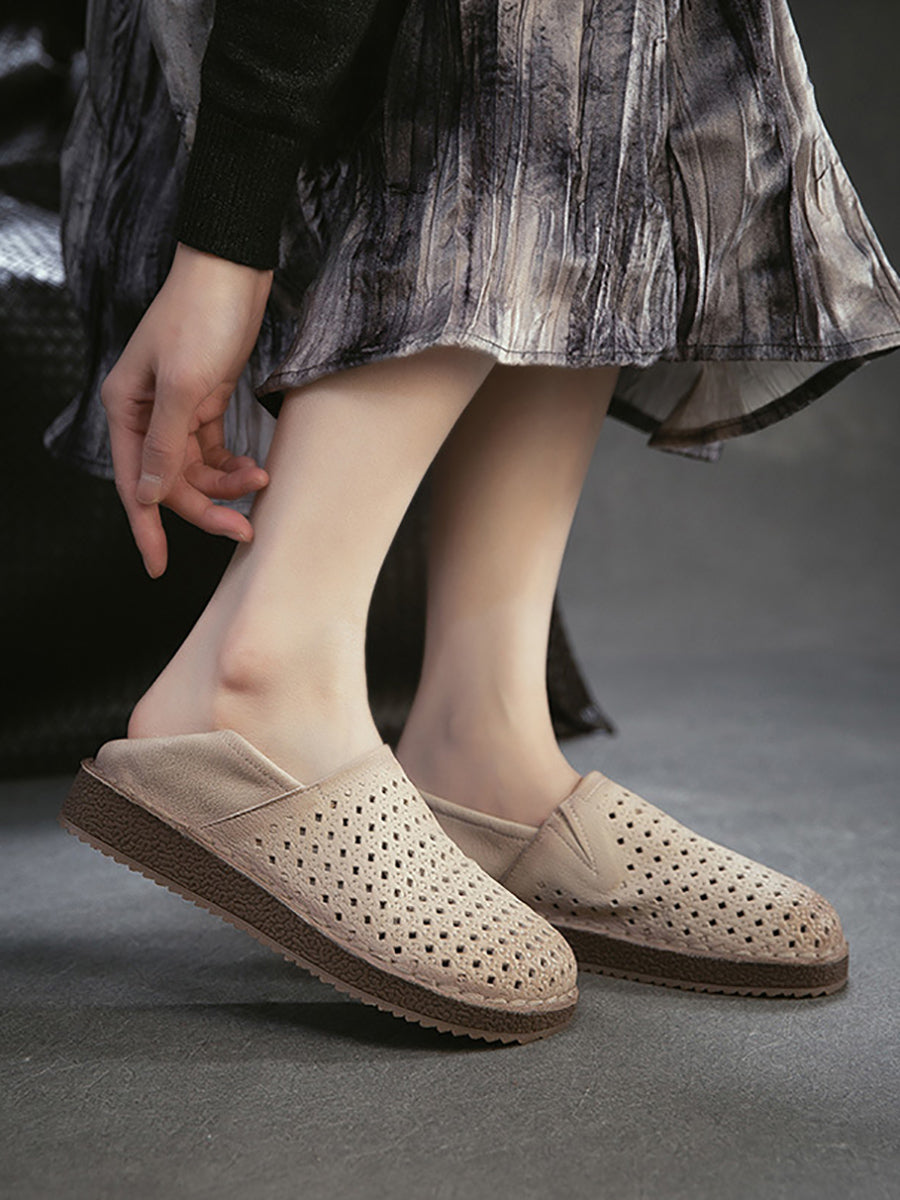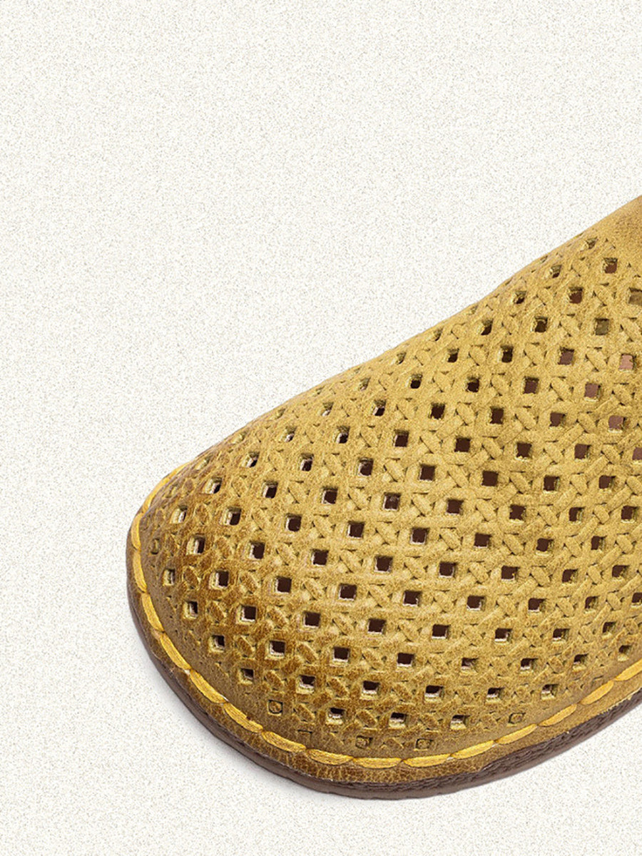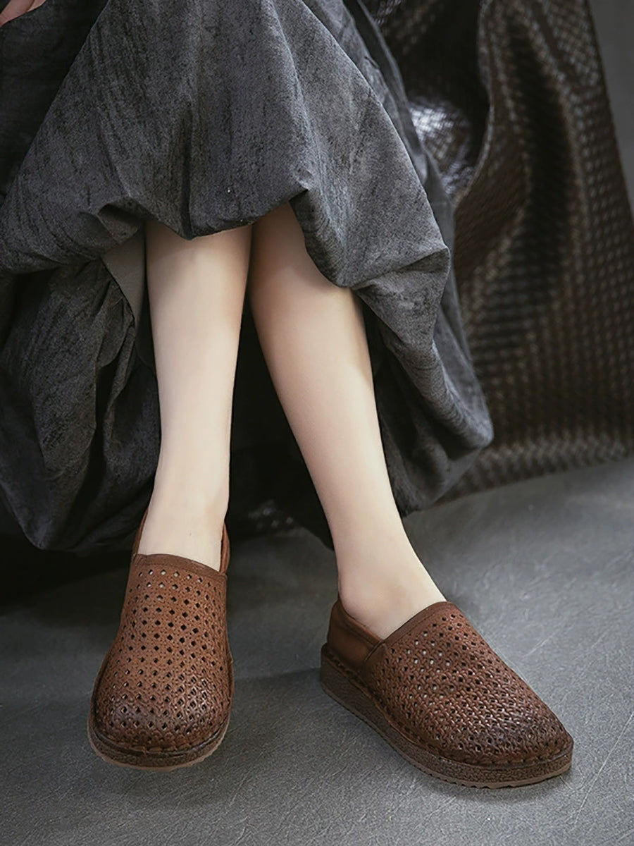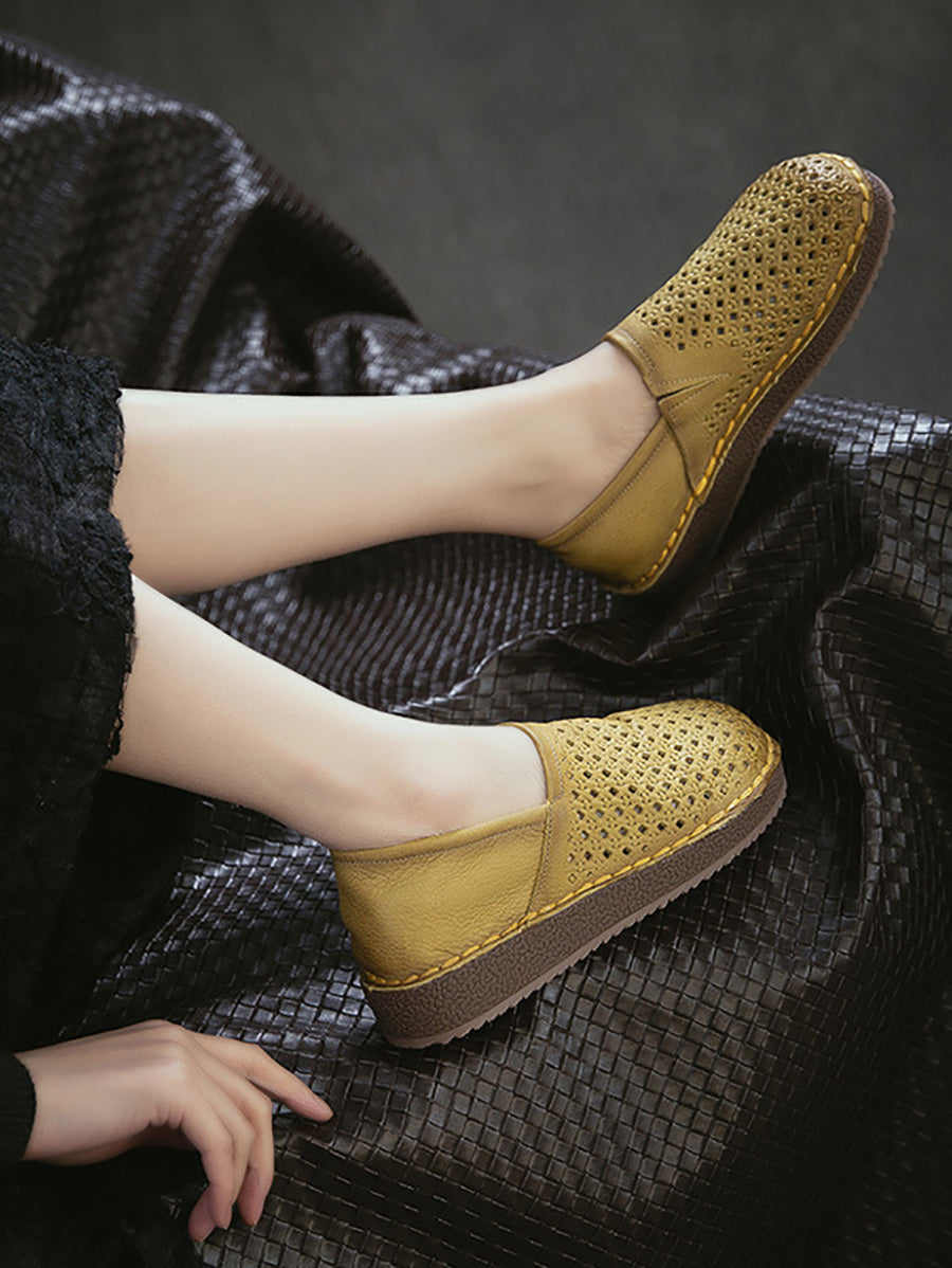 女士夏季軟皮鏤空平底鞋