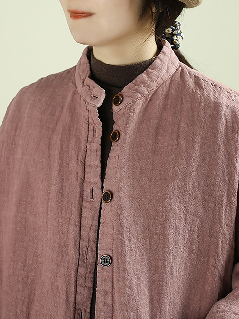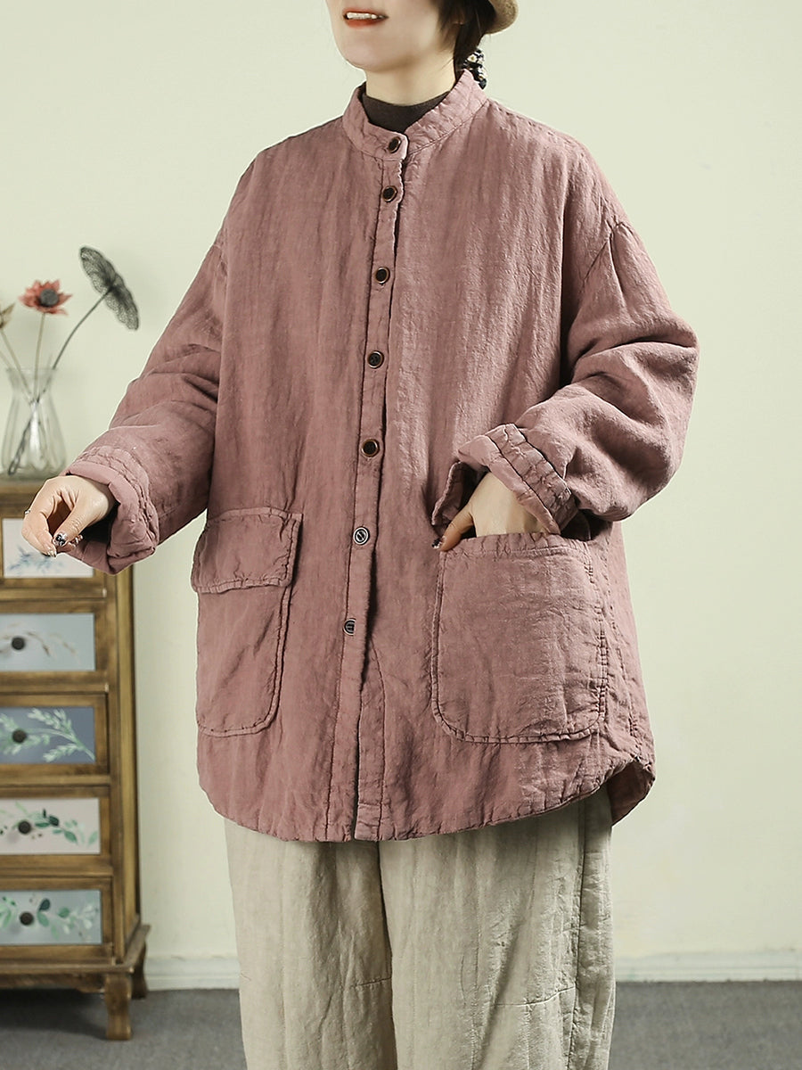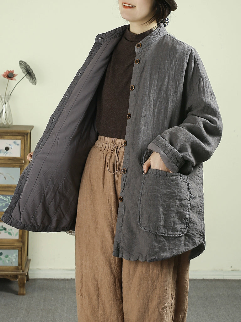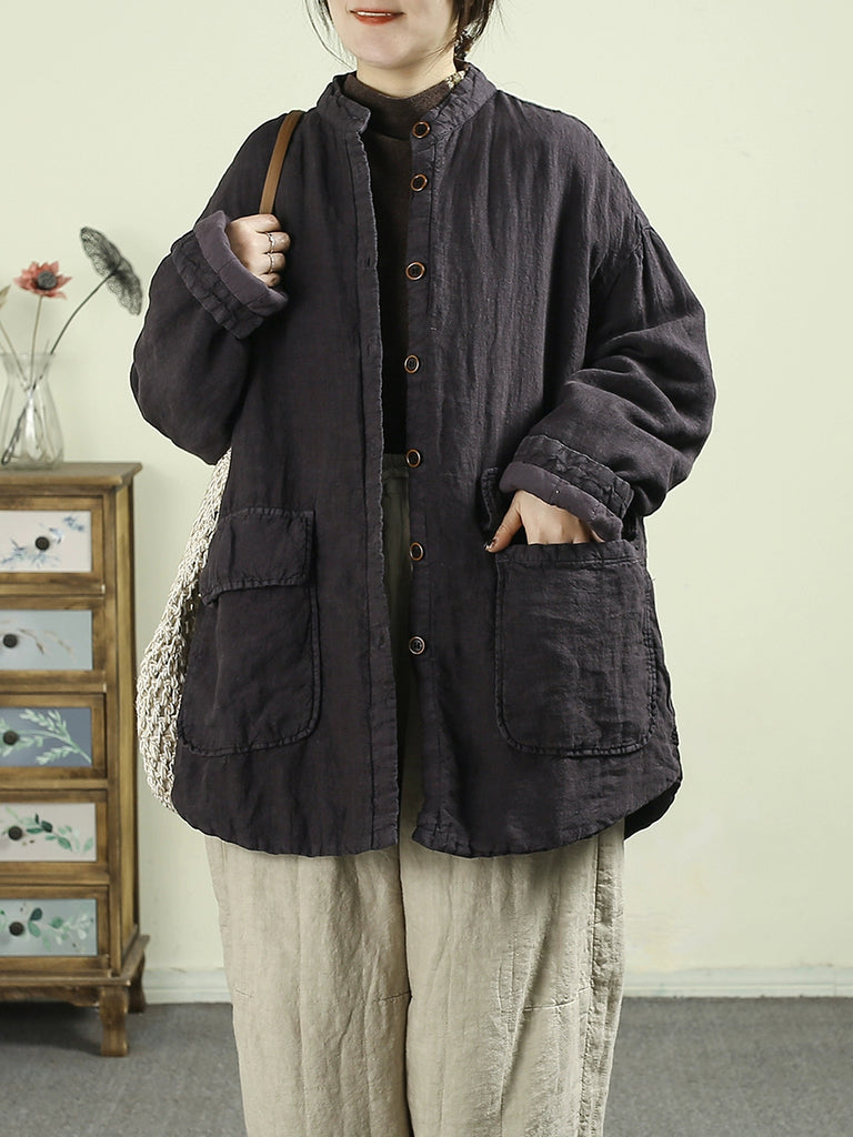 女士冬季民族風純色100%亞麻棉服