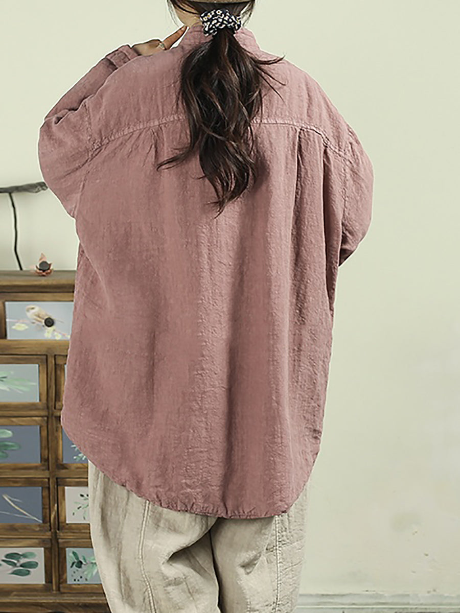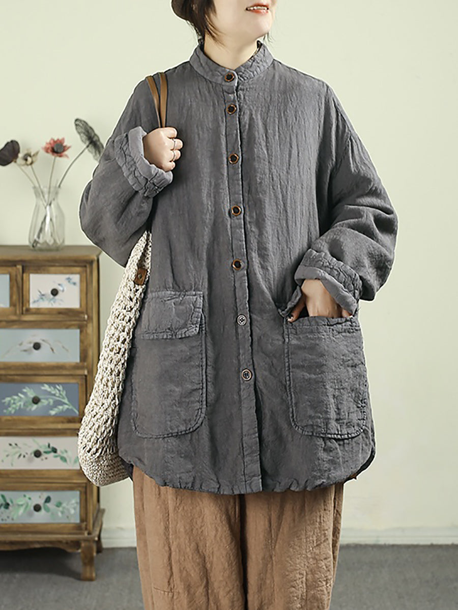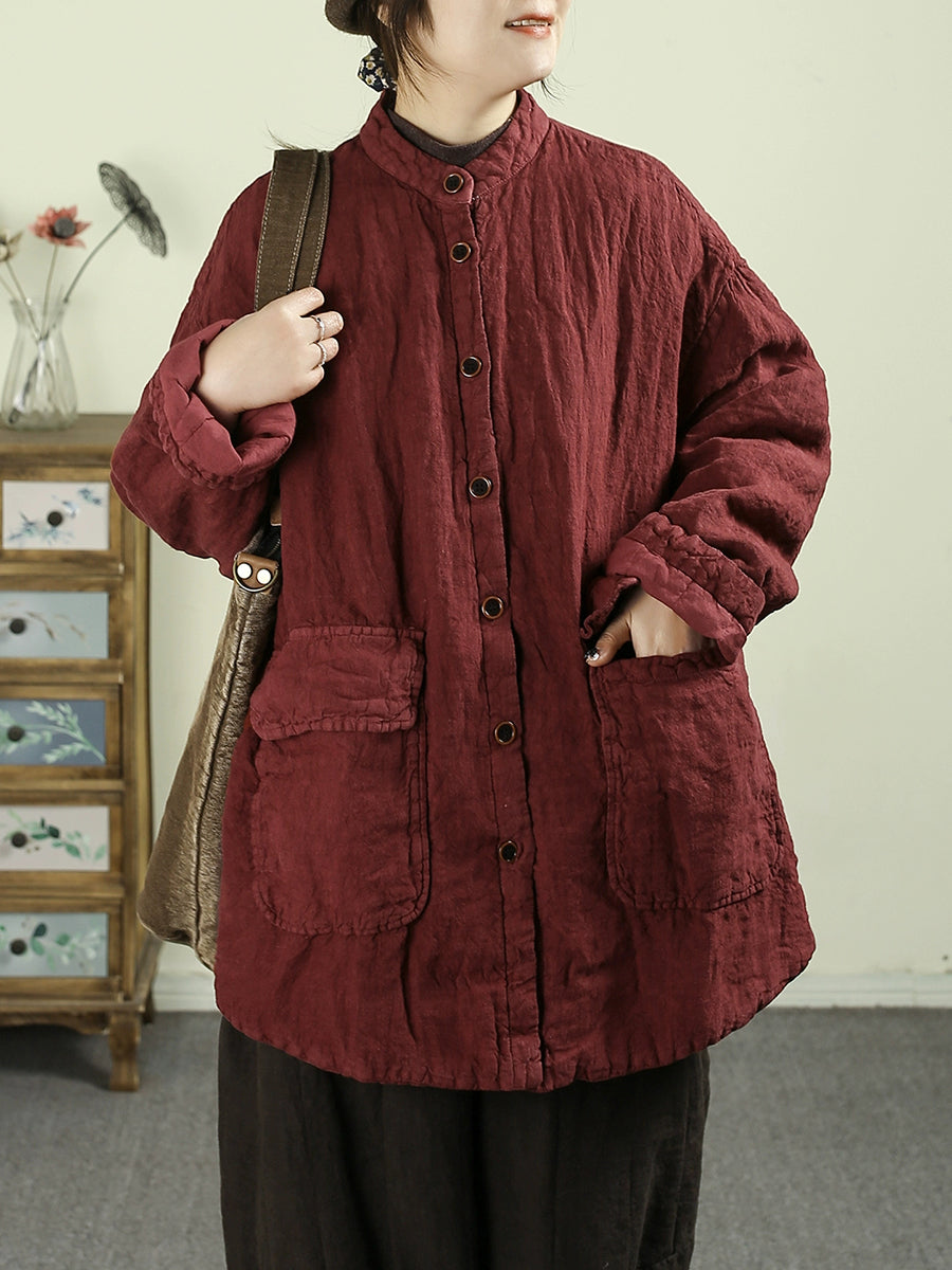 女士冬季民族風純色100%亞麻棉服