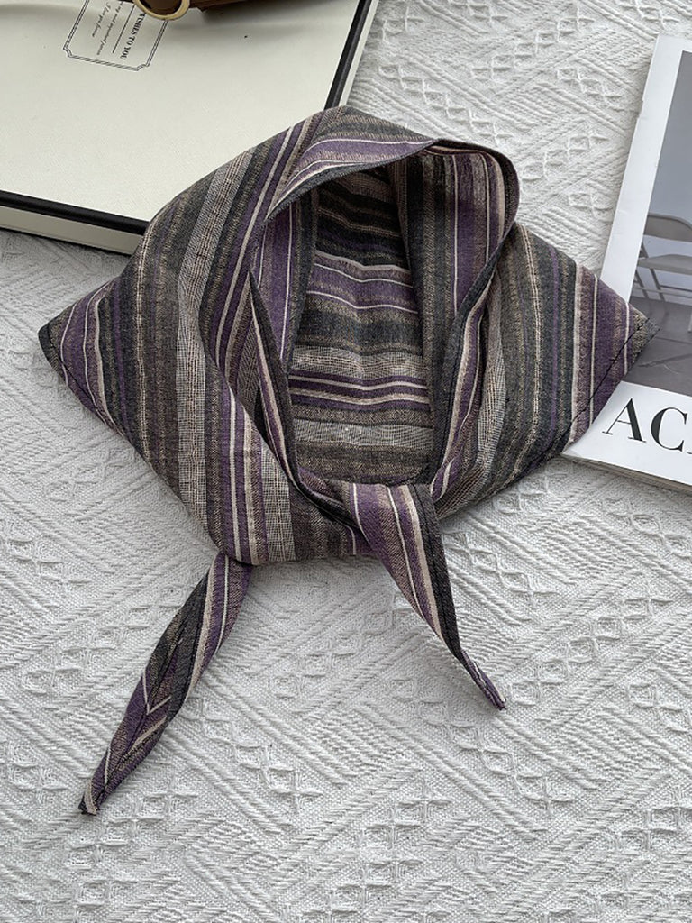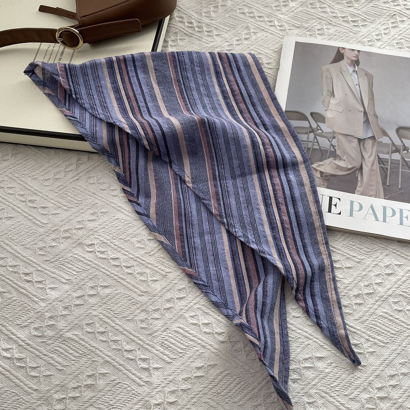 女士復古條紋純棉三角圍巾