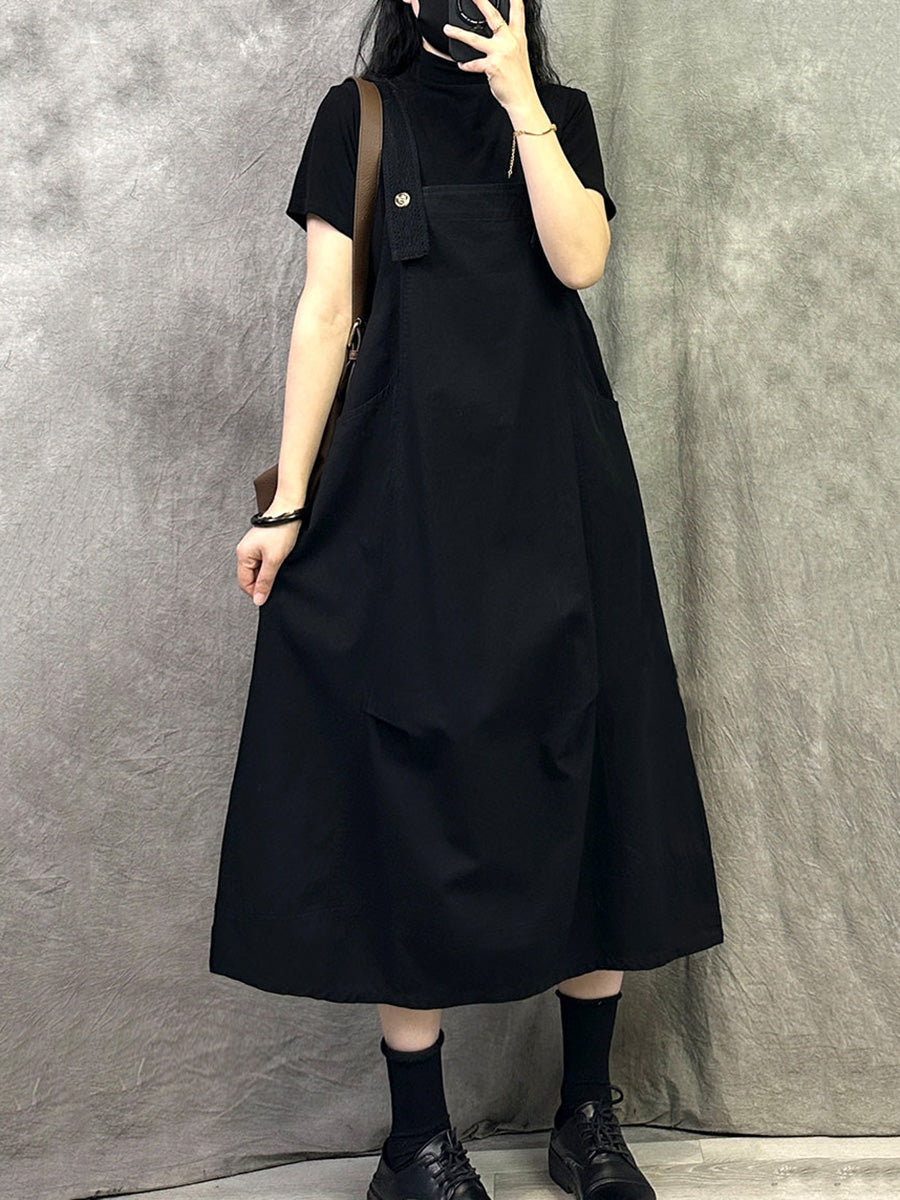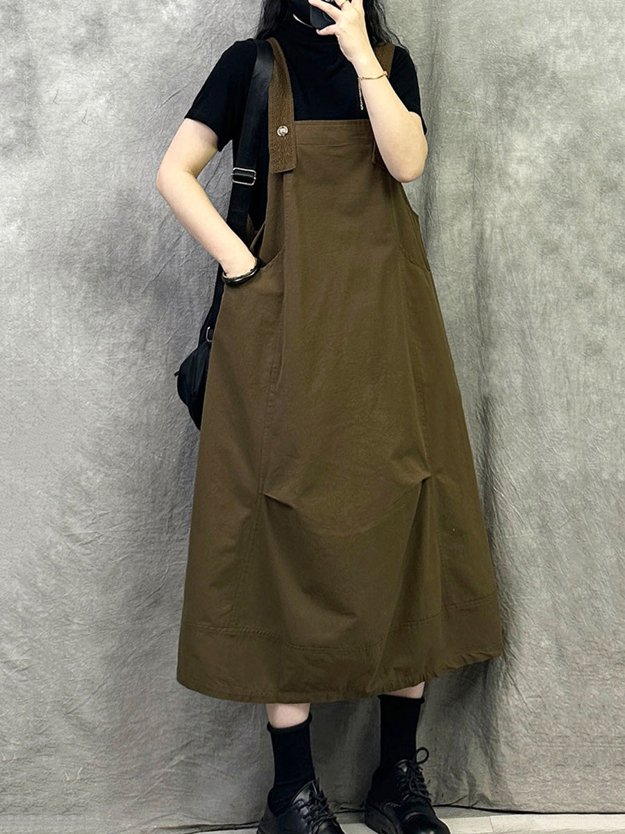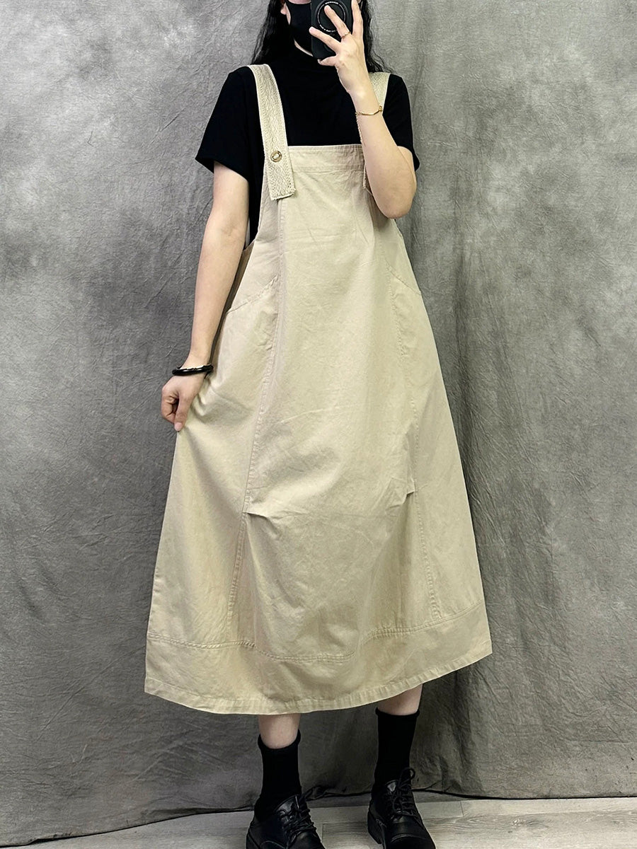 女士休閒純色棉質連身裙