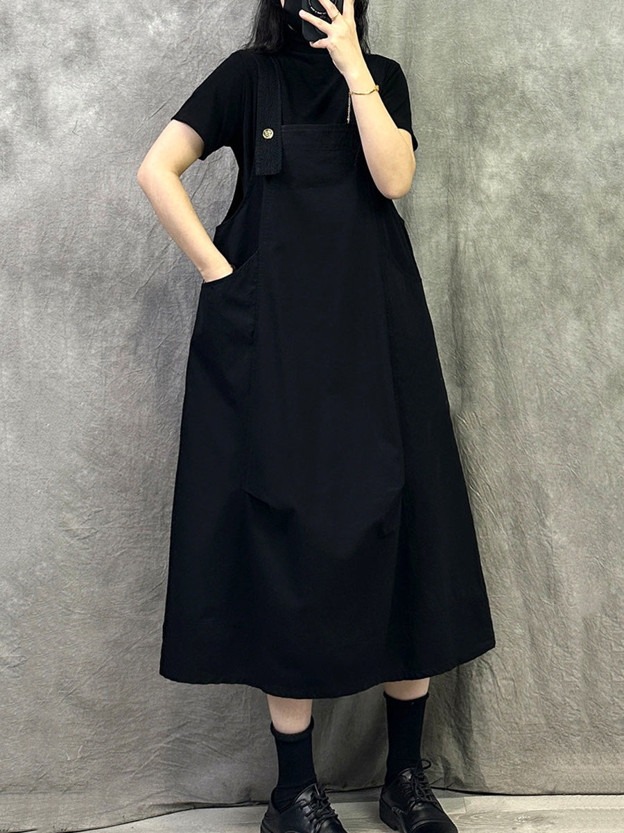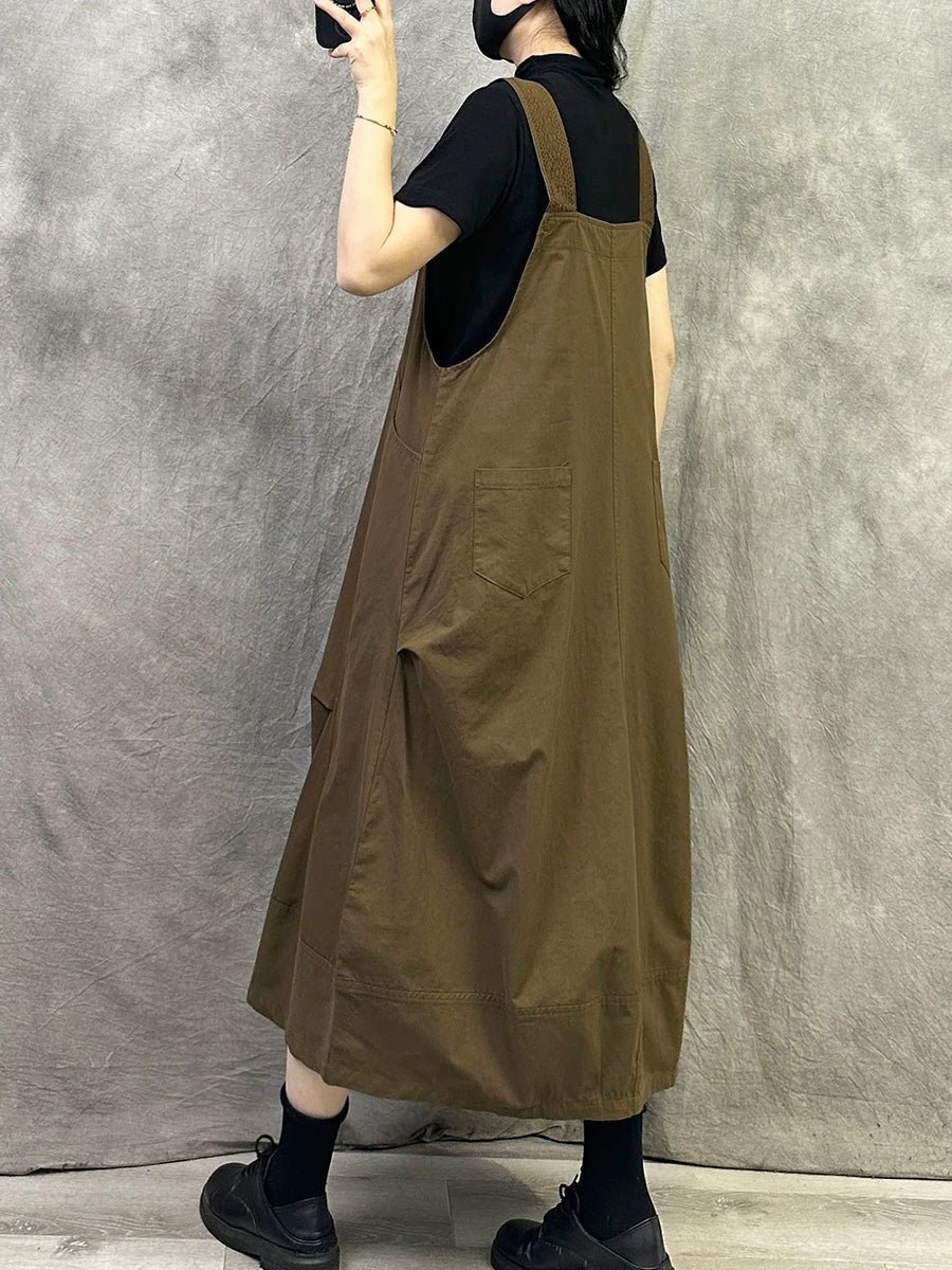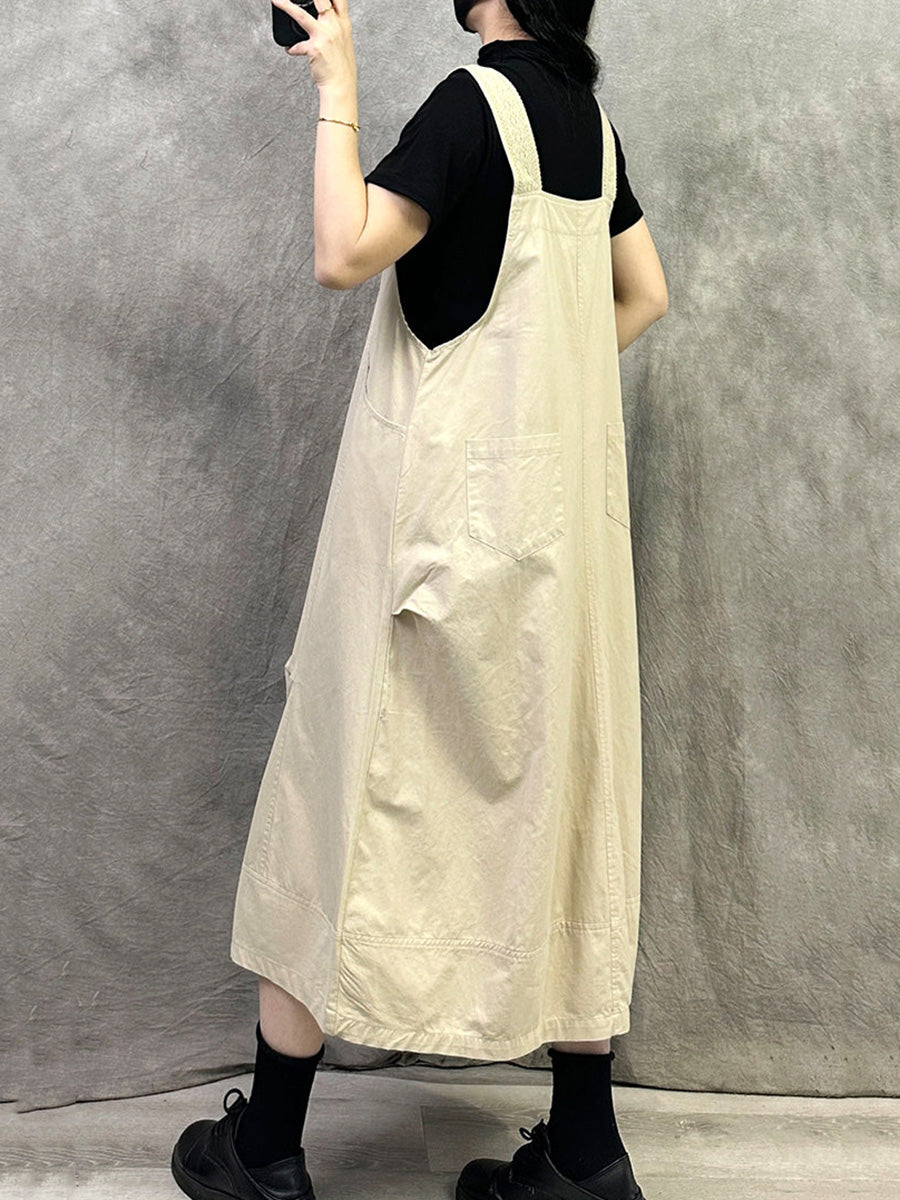 女士休閒純色棉質連身裙