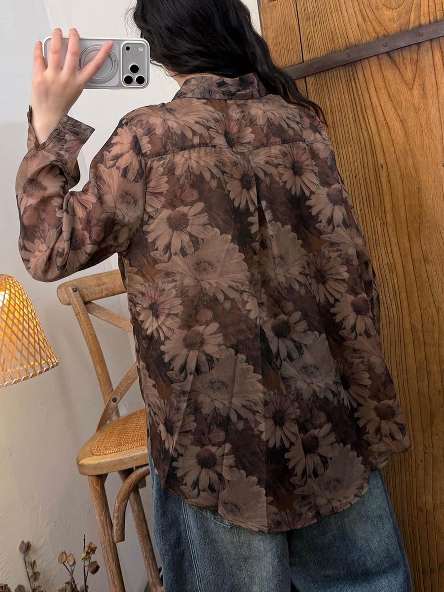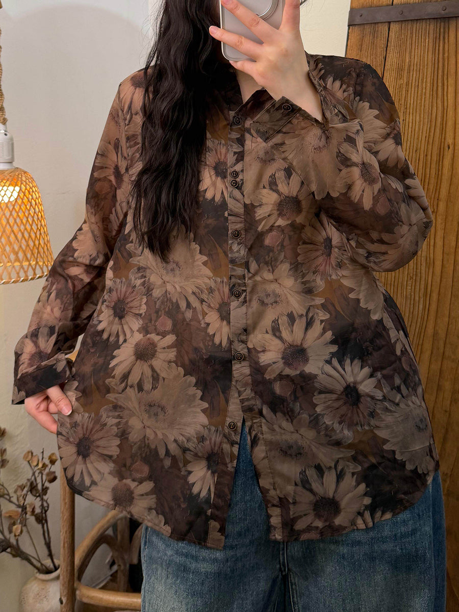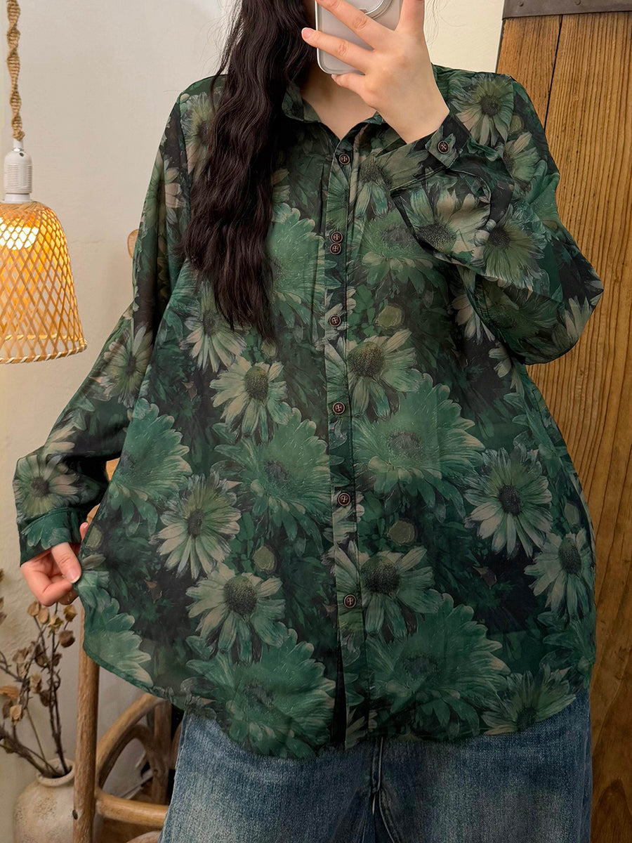 女士夏季藝術風花朵翻領襯衫