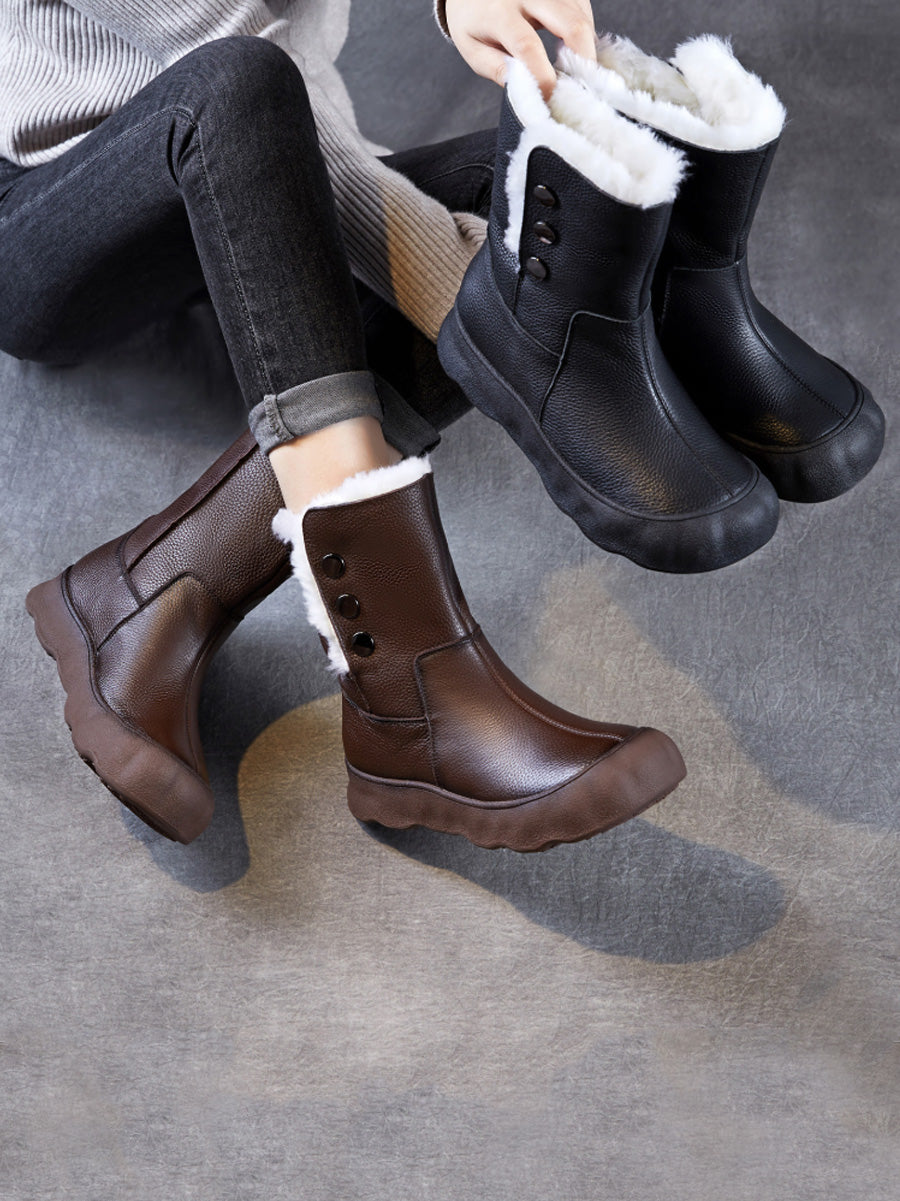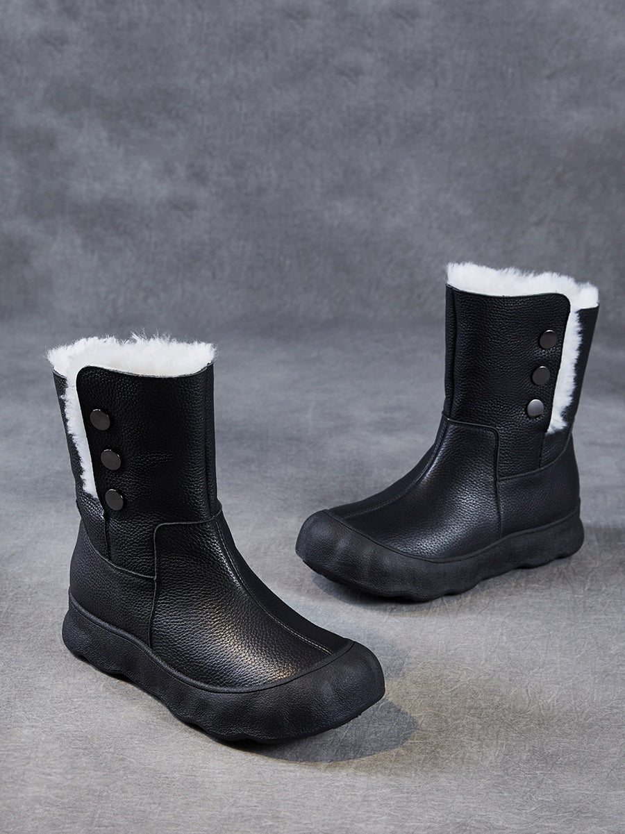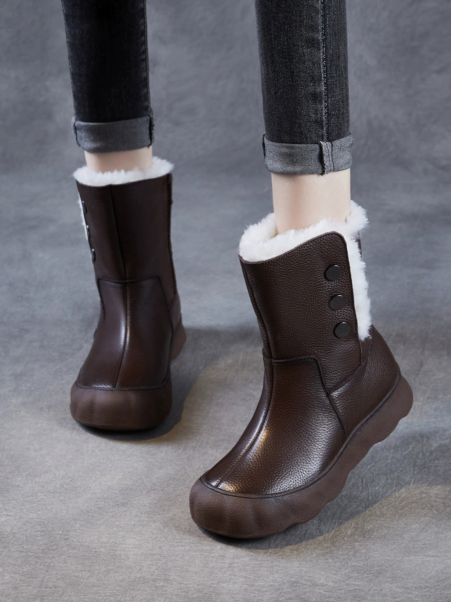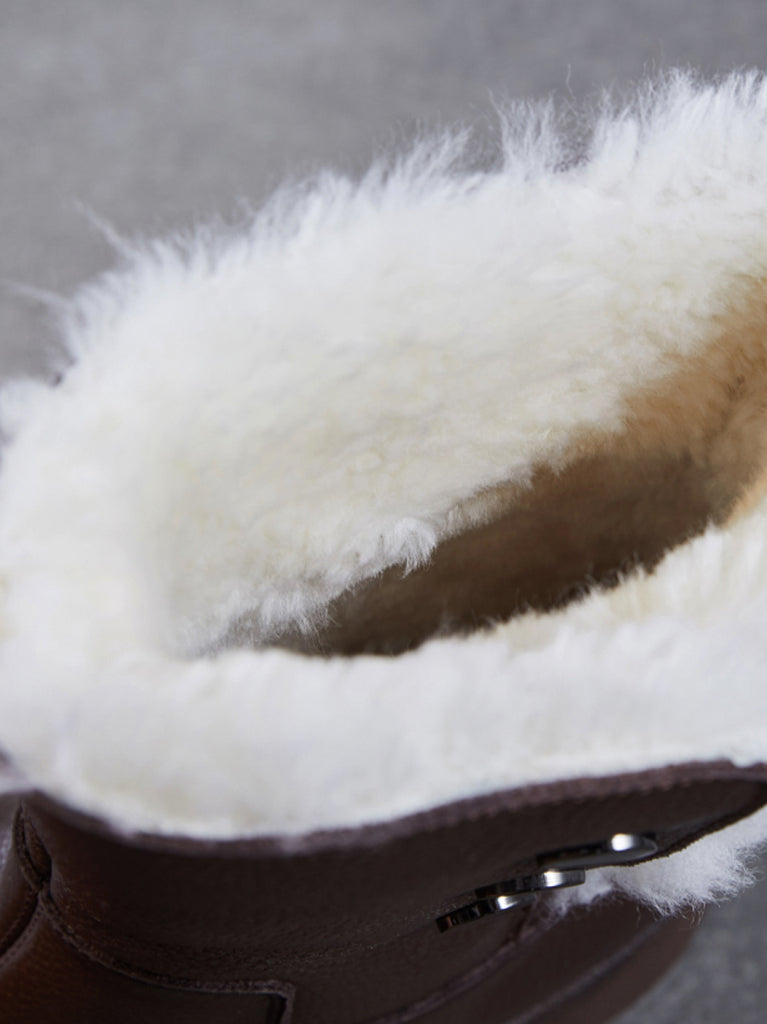 女士冬季真皮羊毛內襯中跟靴