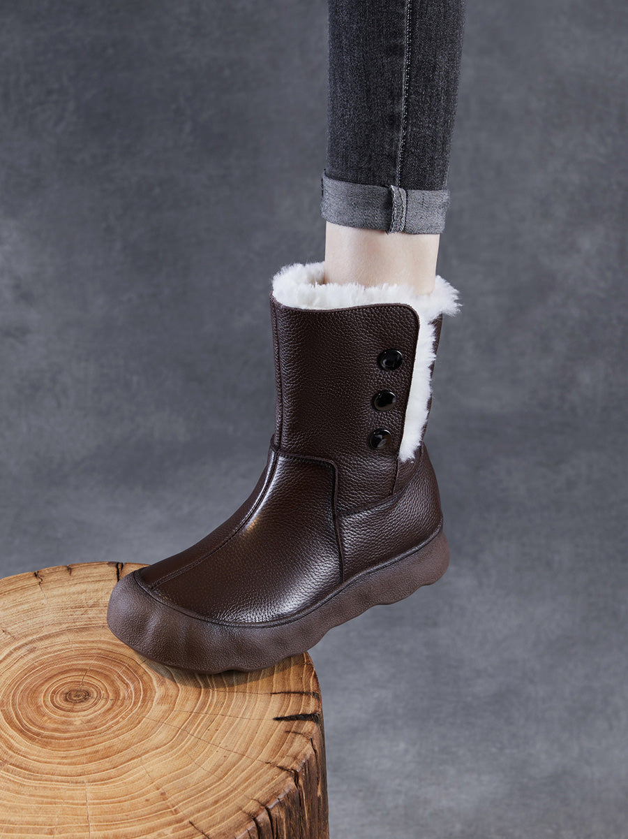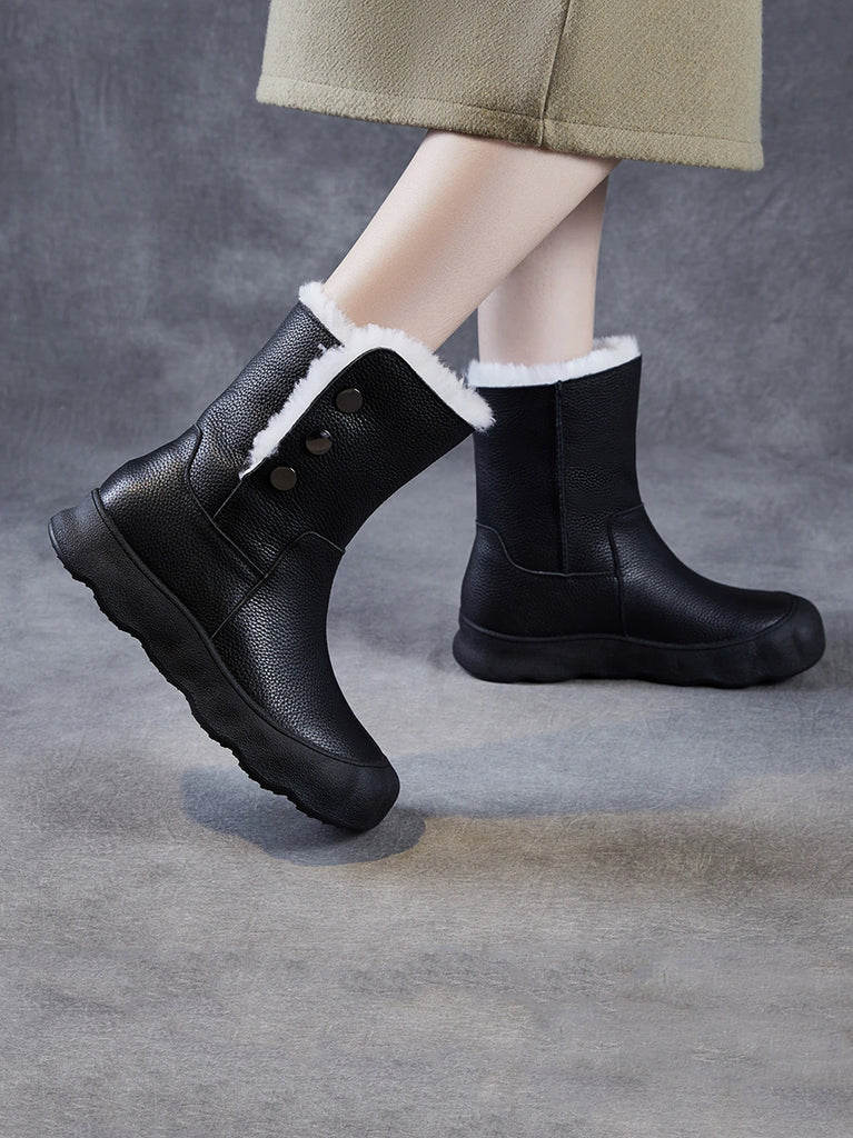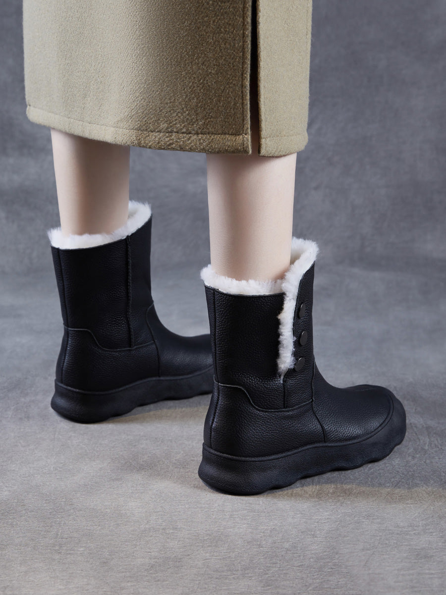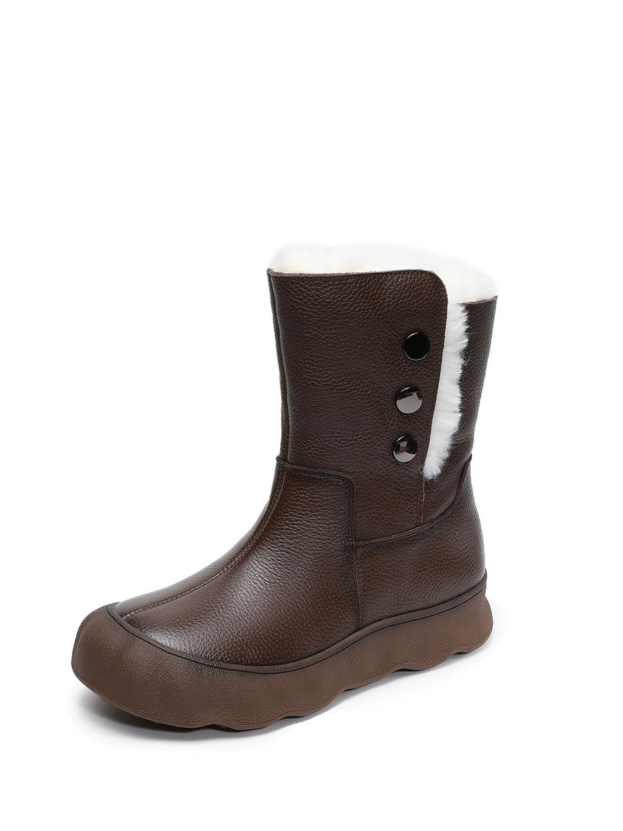 女士冬季真皮羊毛內襯中跟靴