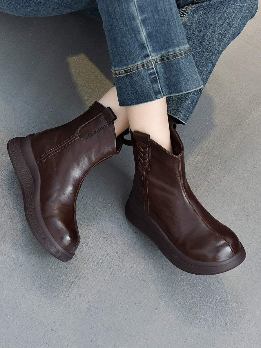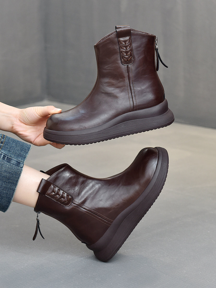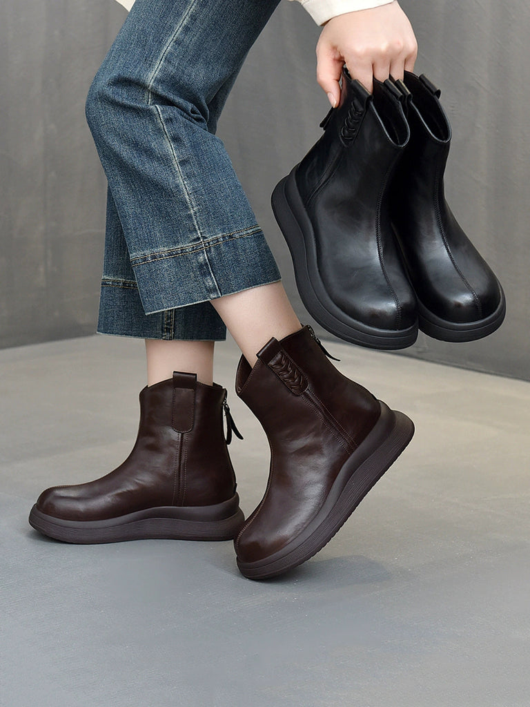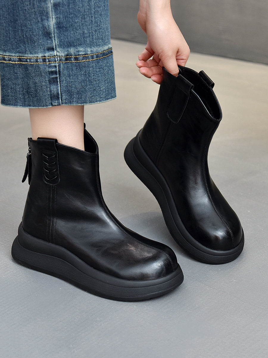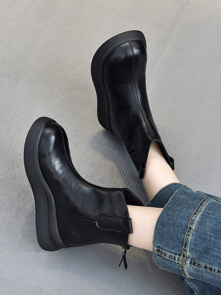 女士冬季真皮厚底靴