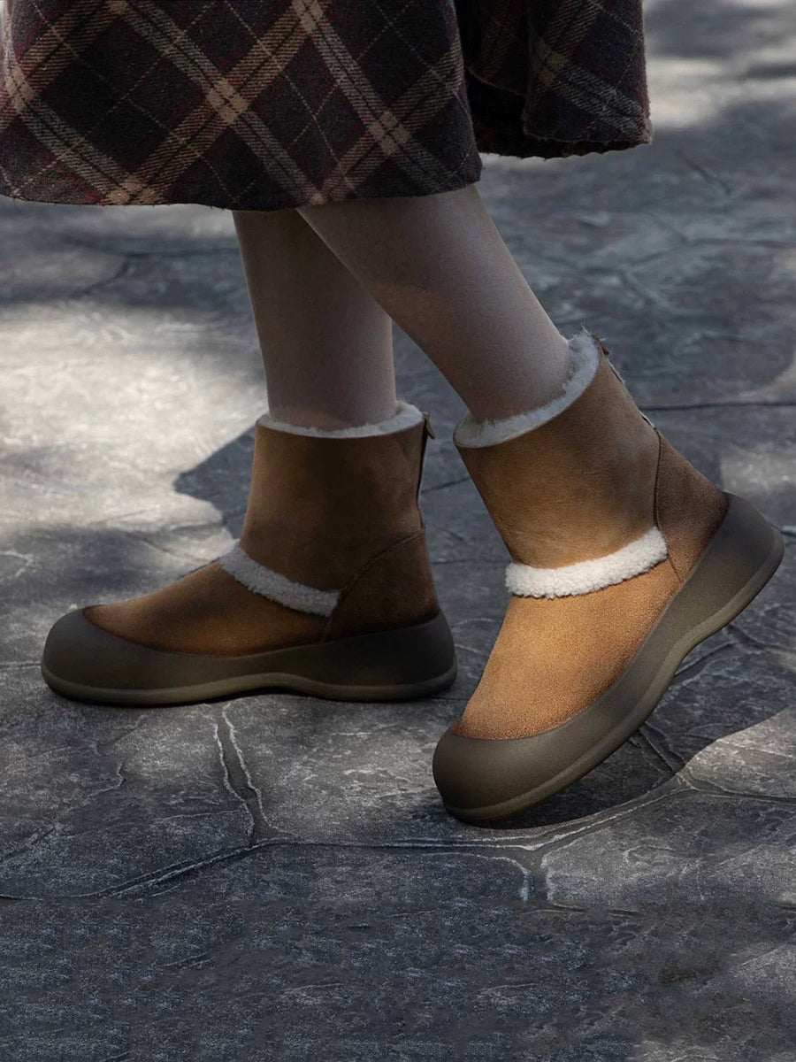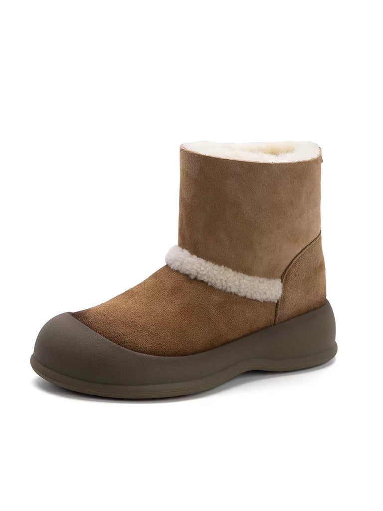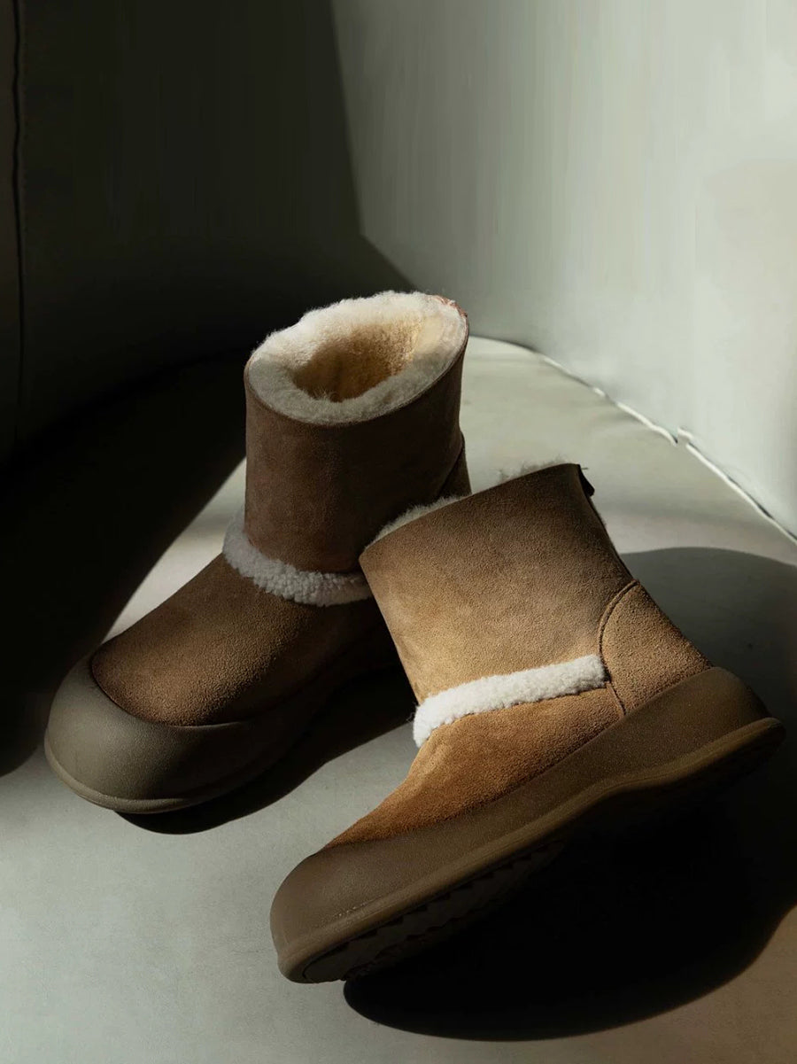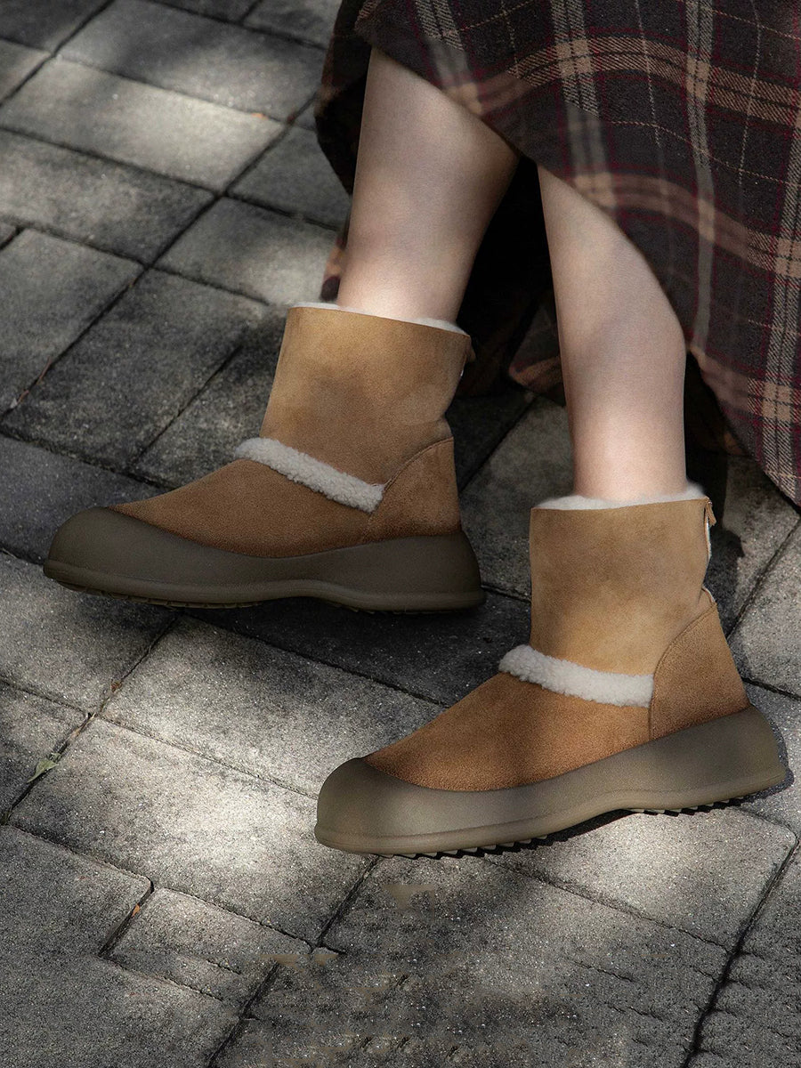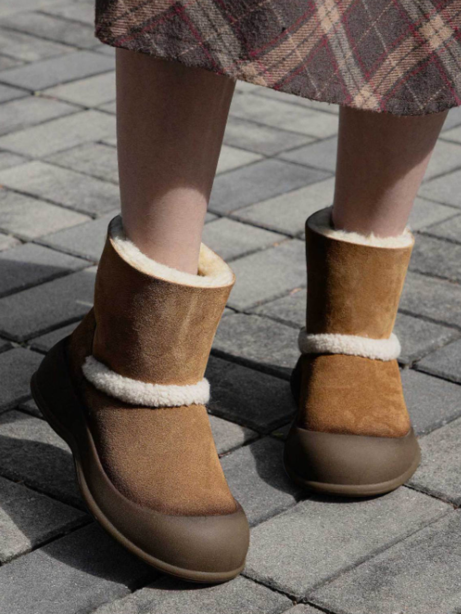 女士冬季絨面革羊毛內襯雪靴