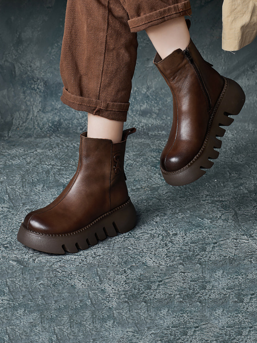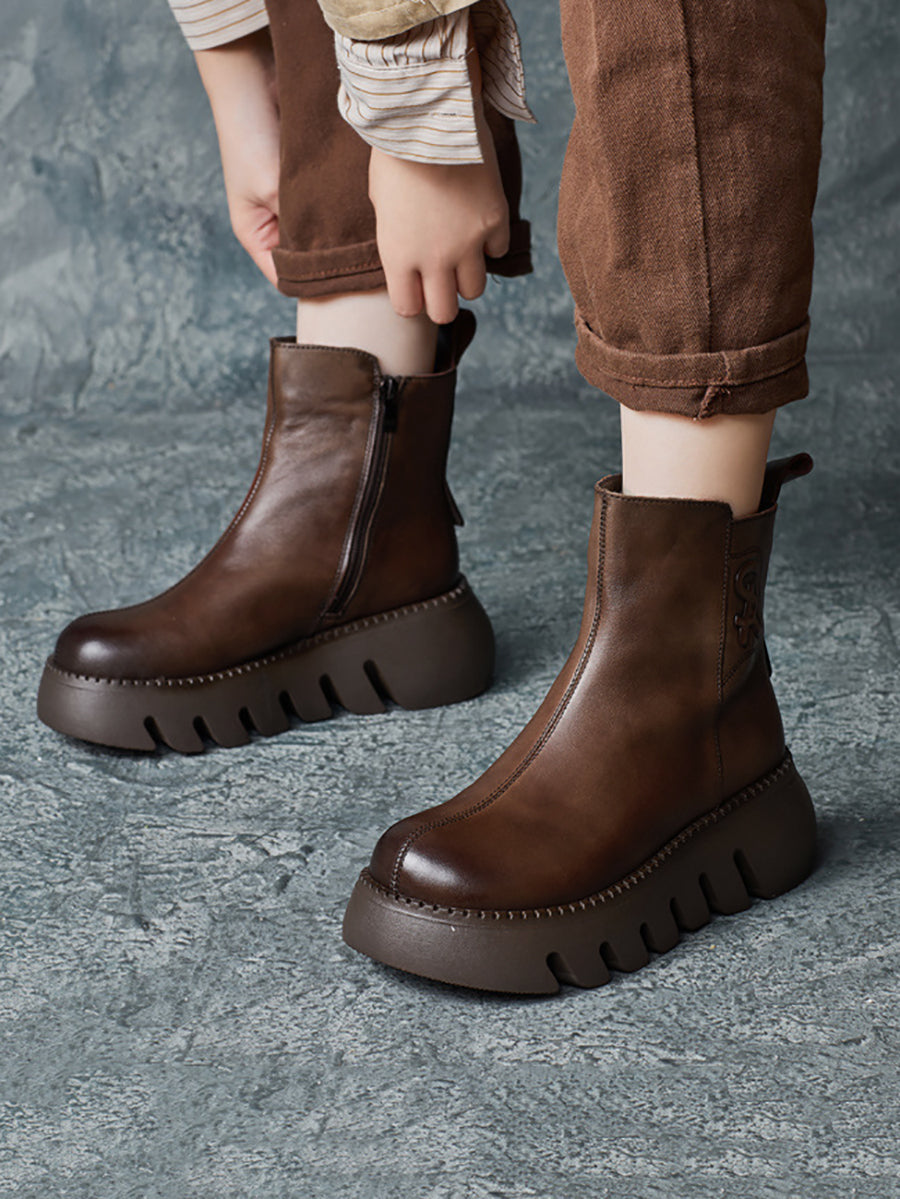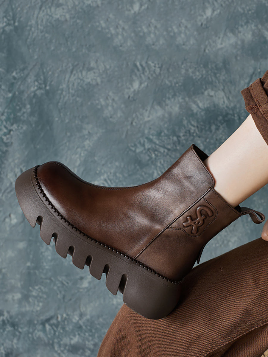 女士復古真皮厚底靴