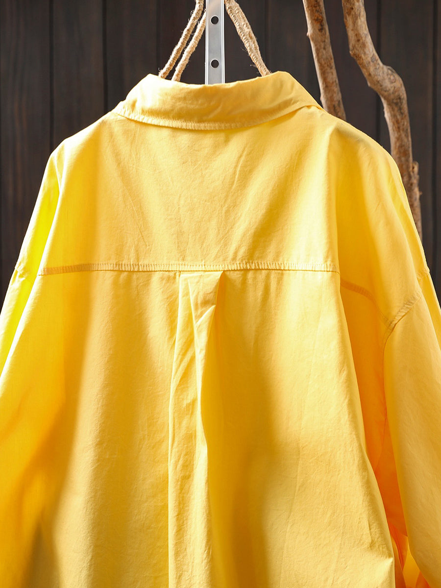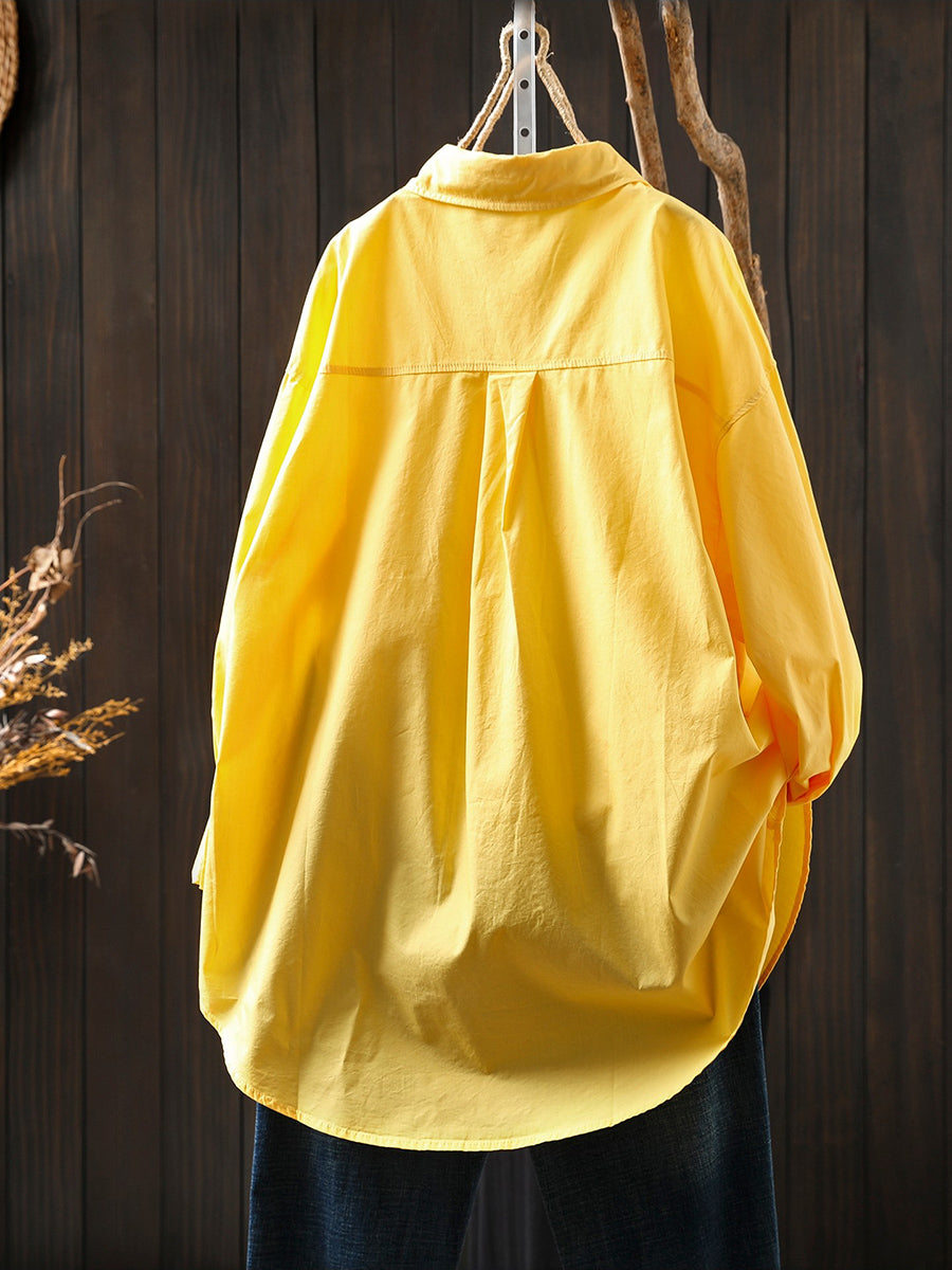 女士春季藝術純色100%純棉襯衫