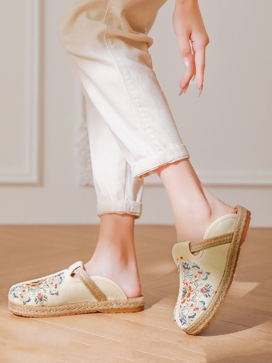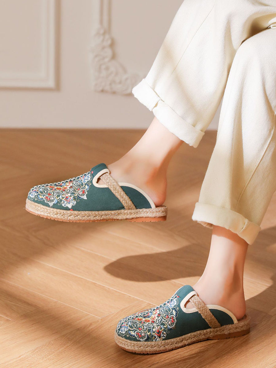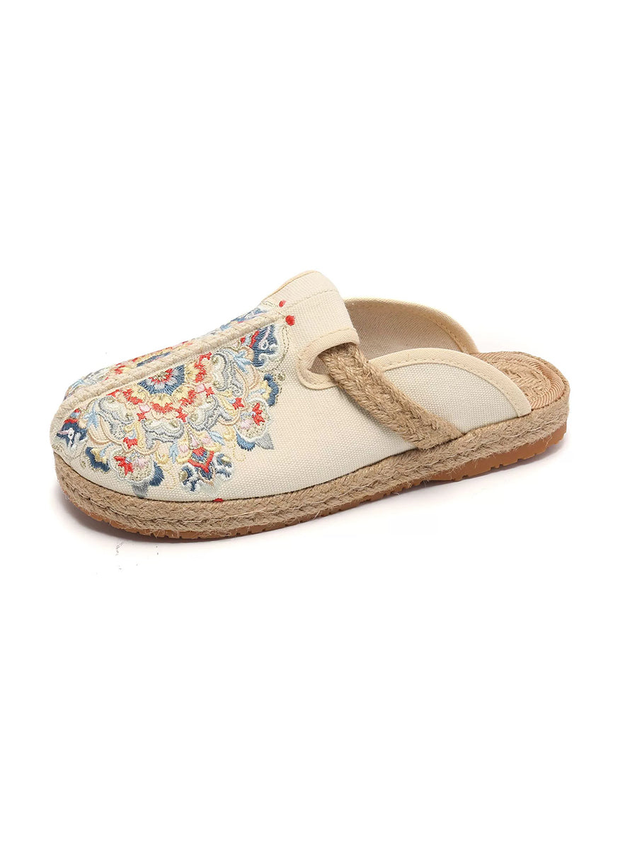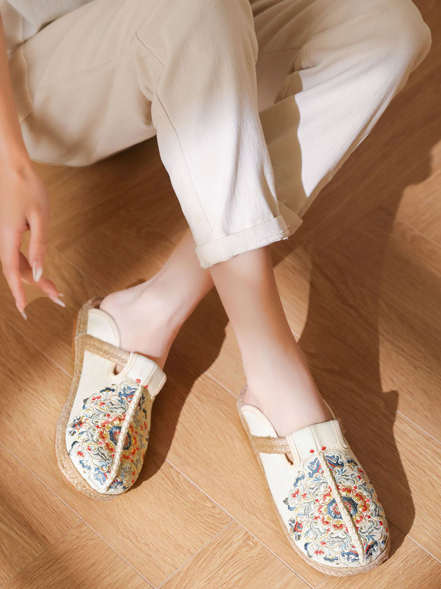 女士夏季刺繡帆布拖鞋