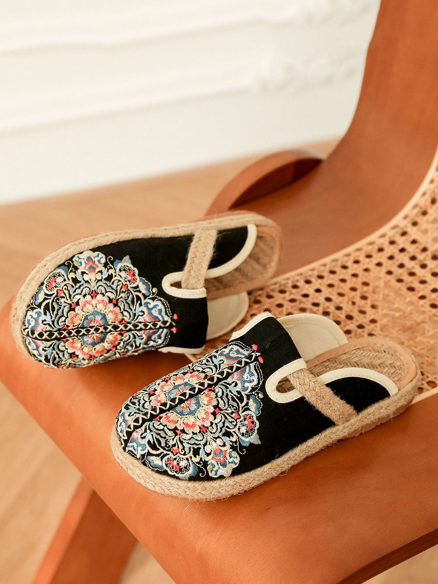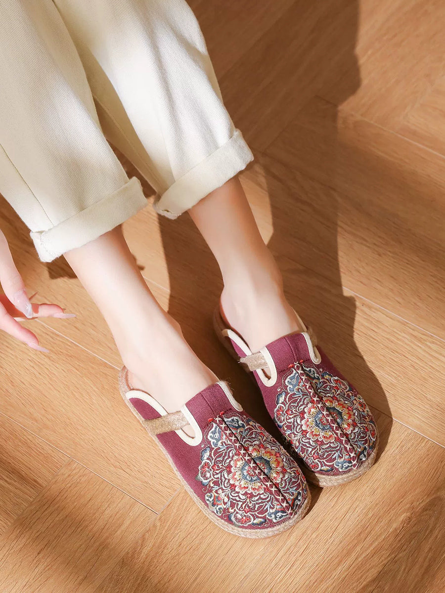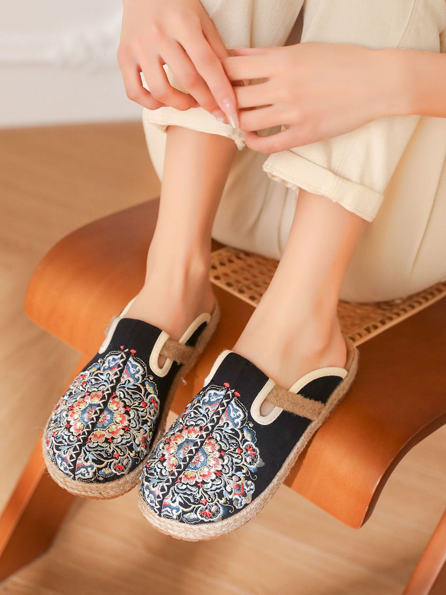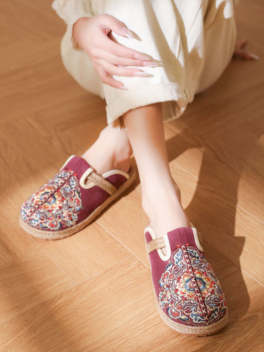 女士夏季刺繡帆布拖鞋