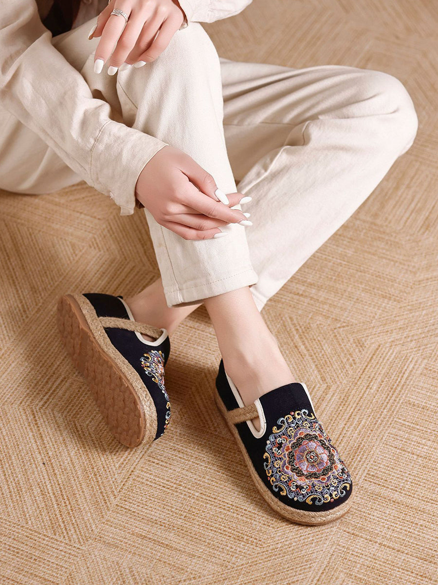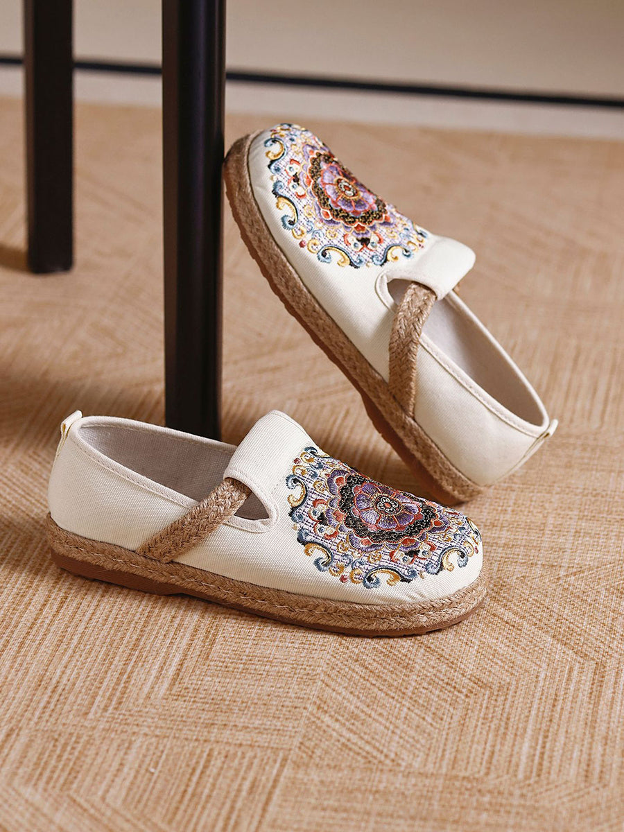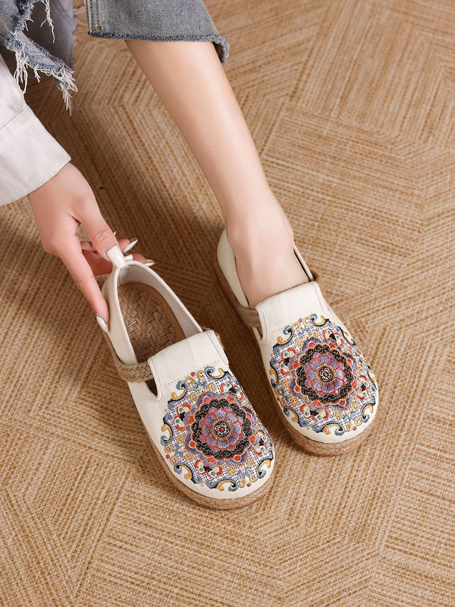 女士夏季民族風花卉刺繡帆布鞋