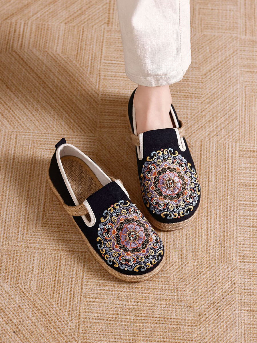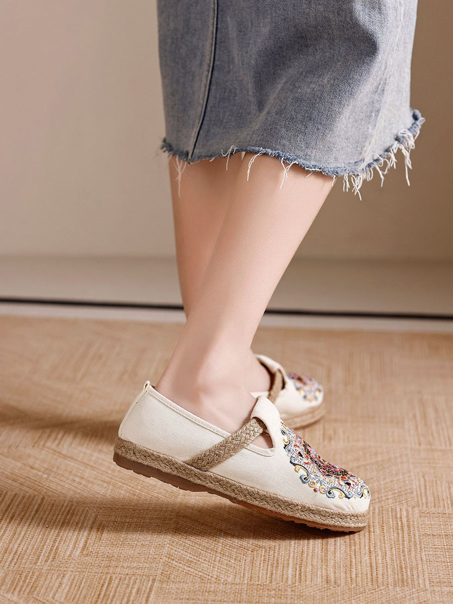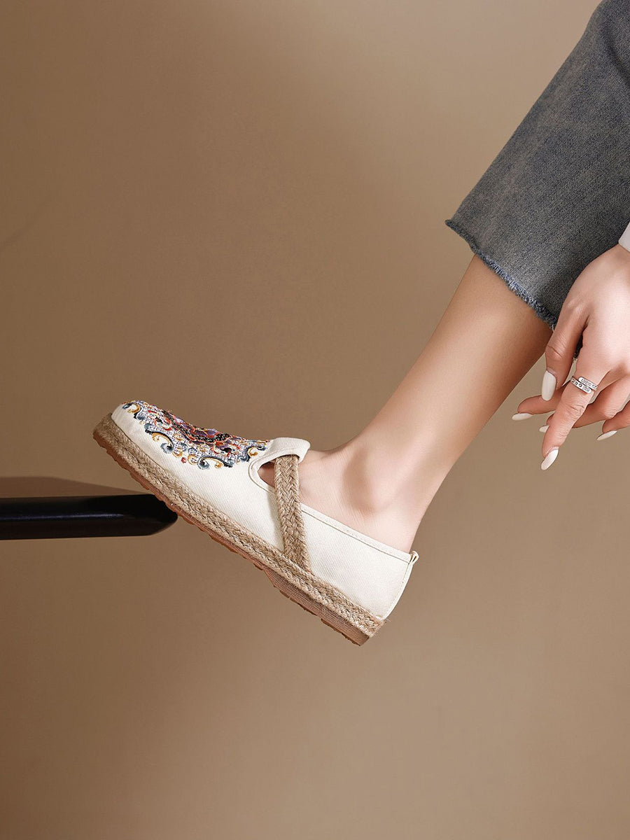 女士夏季民族風花卉刺繡帆布鞋