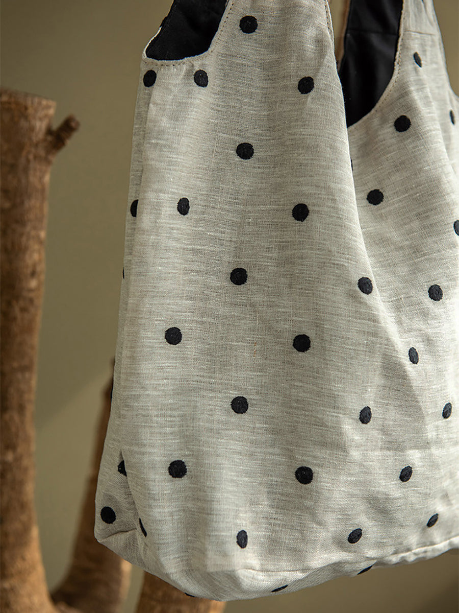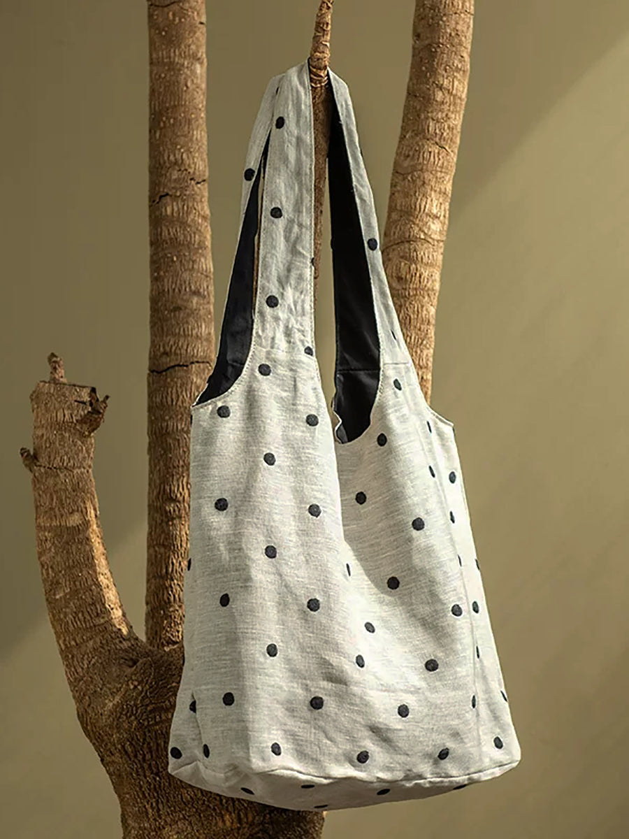 藝術波點亞麻肩包