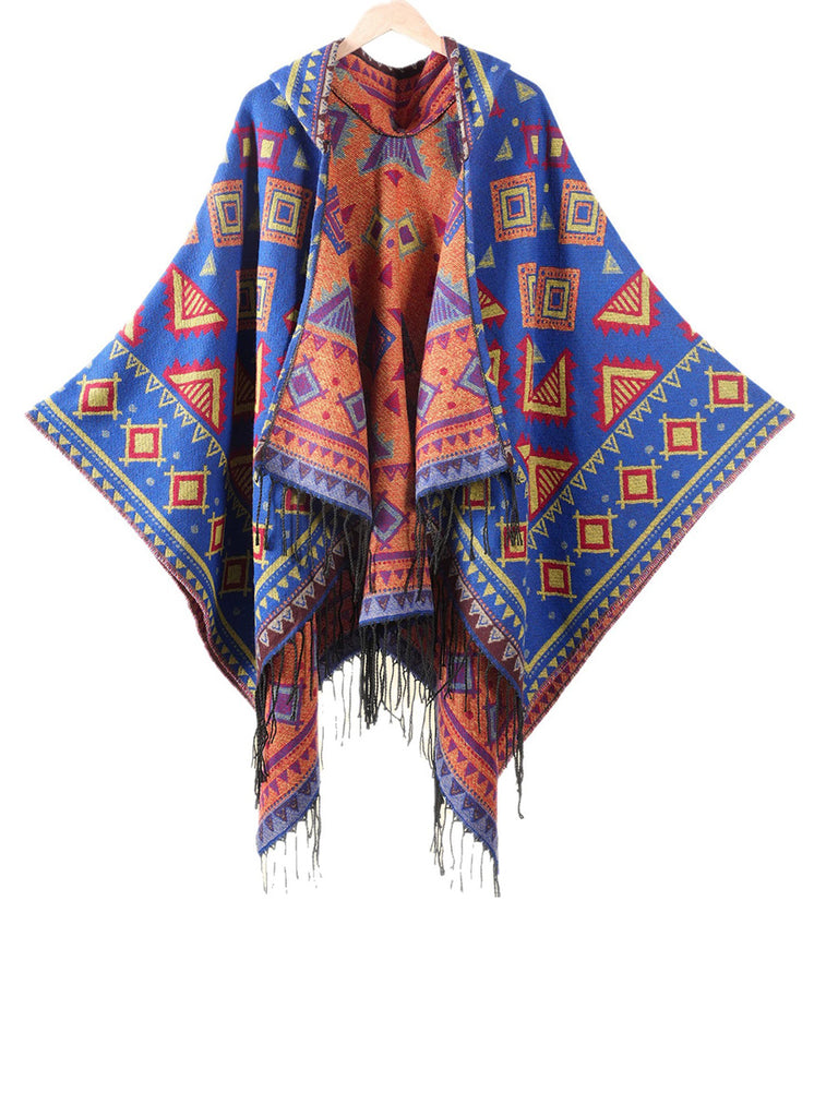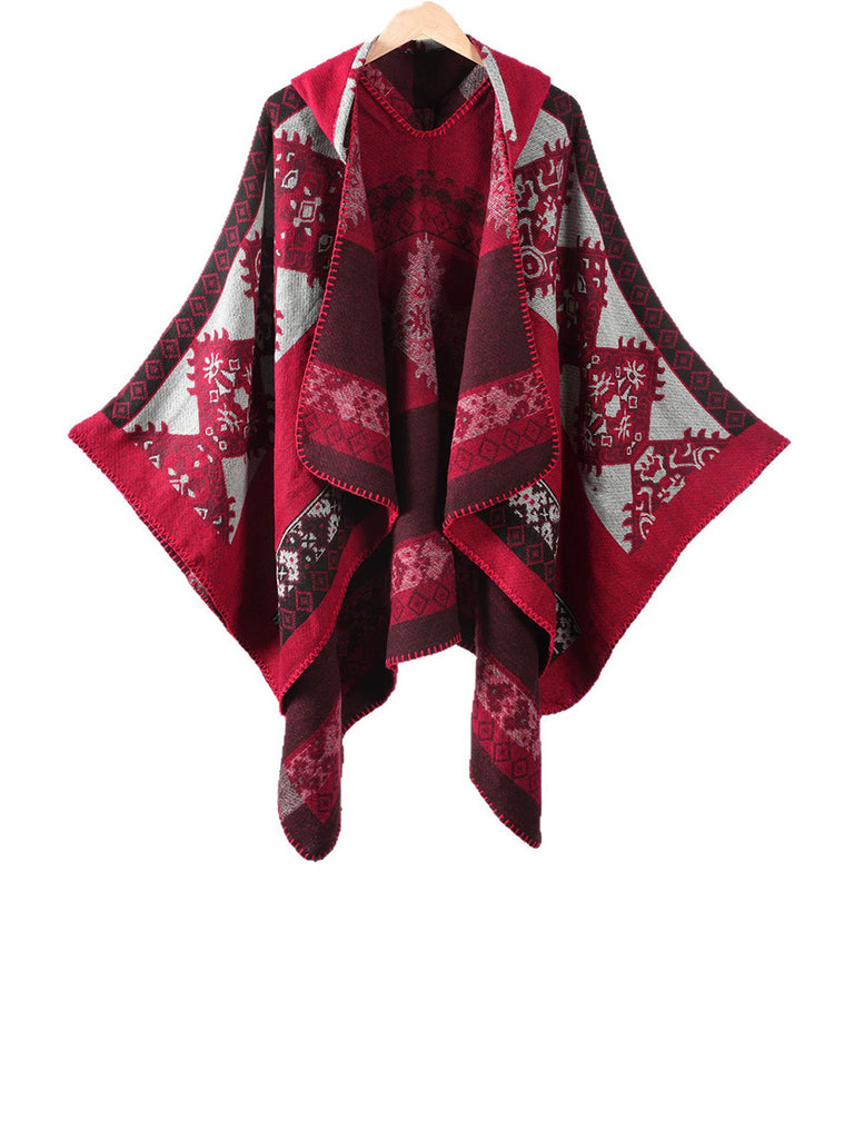 民族幾何冬季保暖連帽披肩