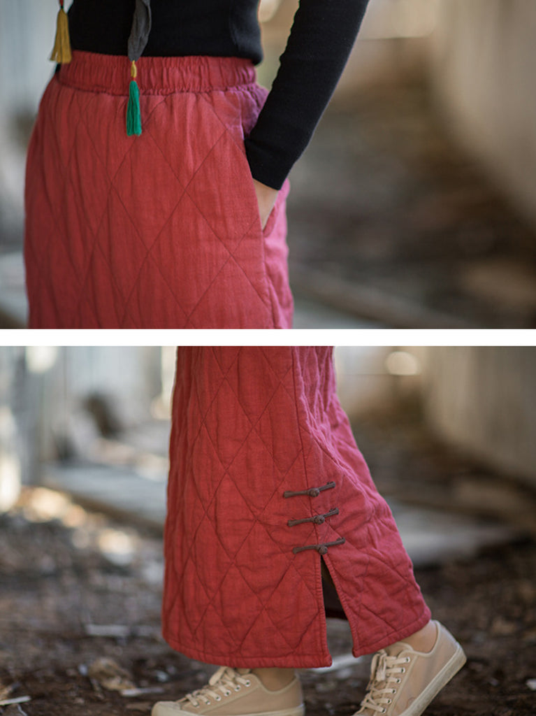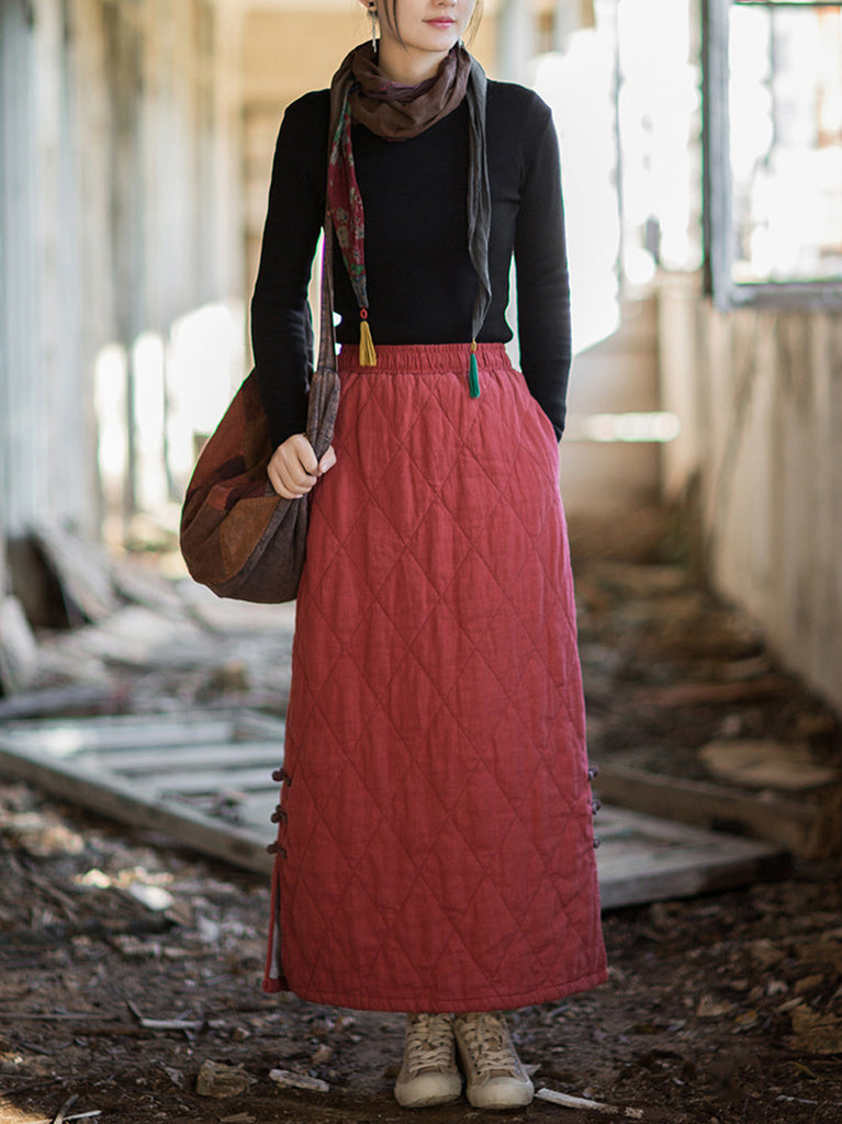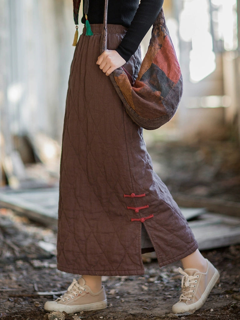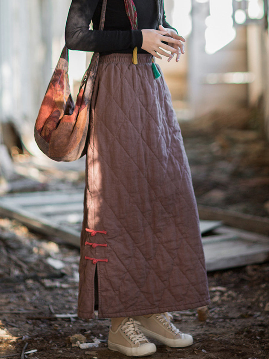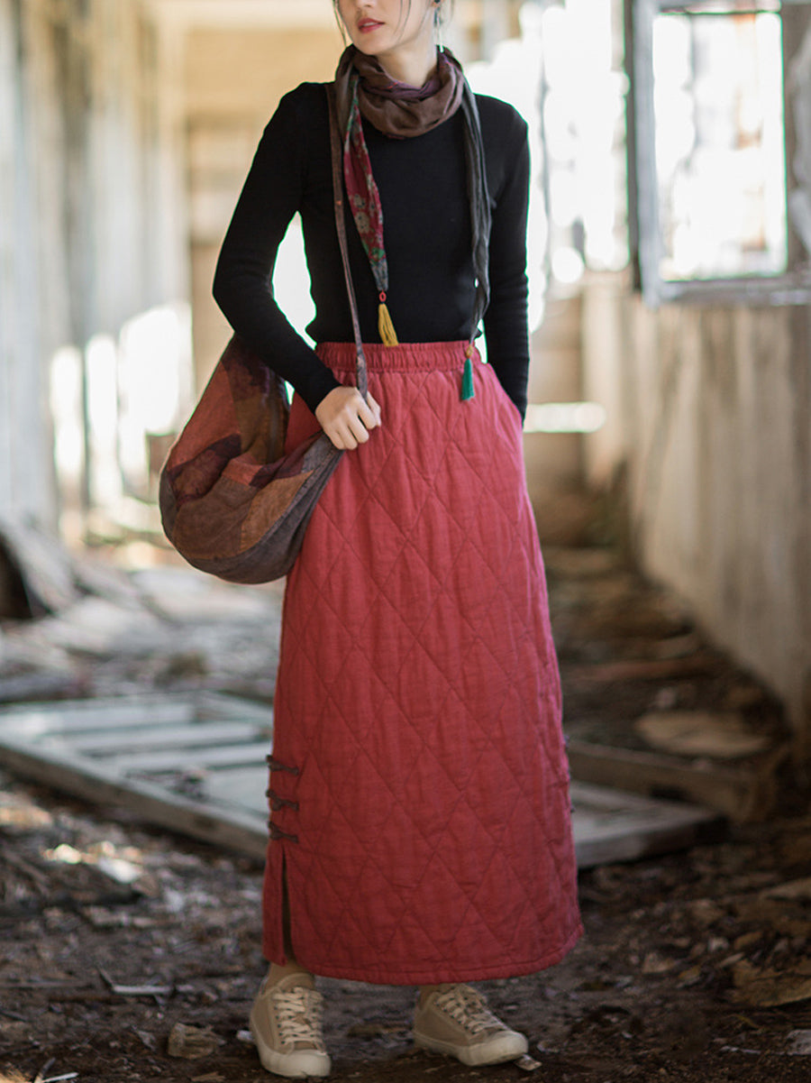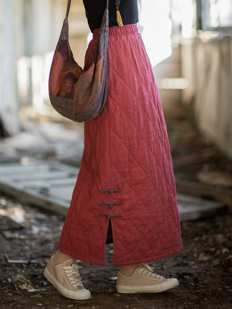 女士秋季民族風純色A字莧麻墊肩半身裙