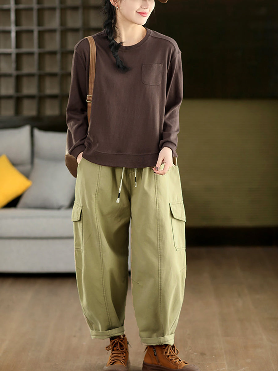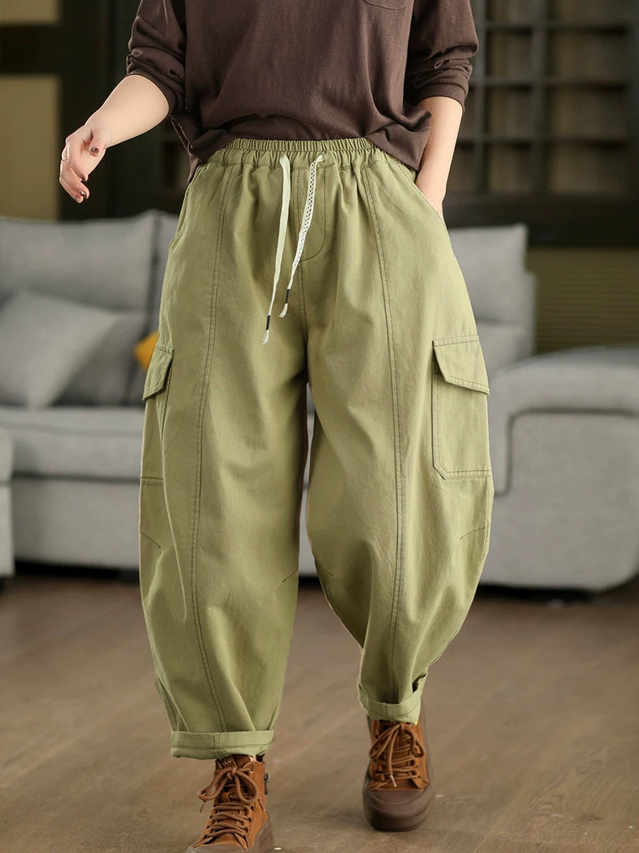 女士春季休閒純色棉質哈倫褲